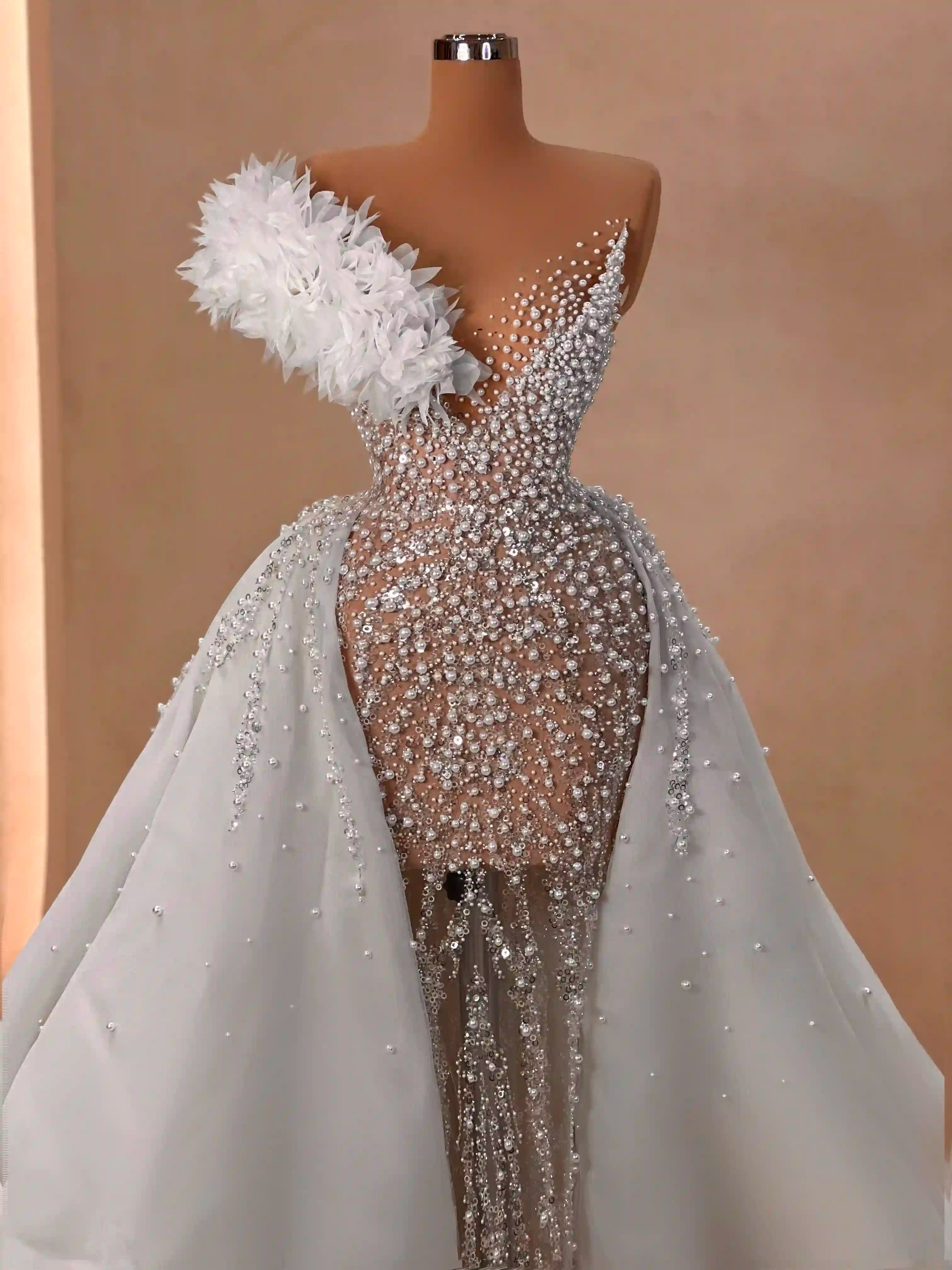 Discover elegance with three expertly crafted bridal gowns from the Bridal - 057 collection. Each gown combines timeless design and premium materials to enhance your silhouette gracefully. Perfect for the discerning bride, these gowns offer a refined fit and exquisite detailing to make your wedding day unforgettable.