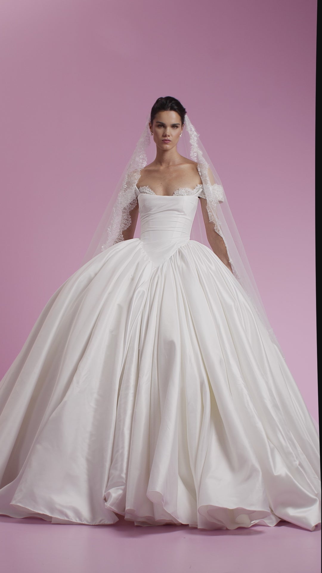 Off-The-Shoulder White Silk Ball Gown with Lace Detail