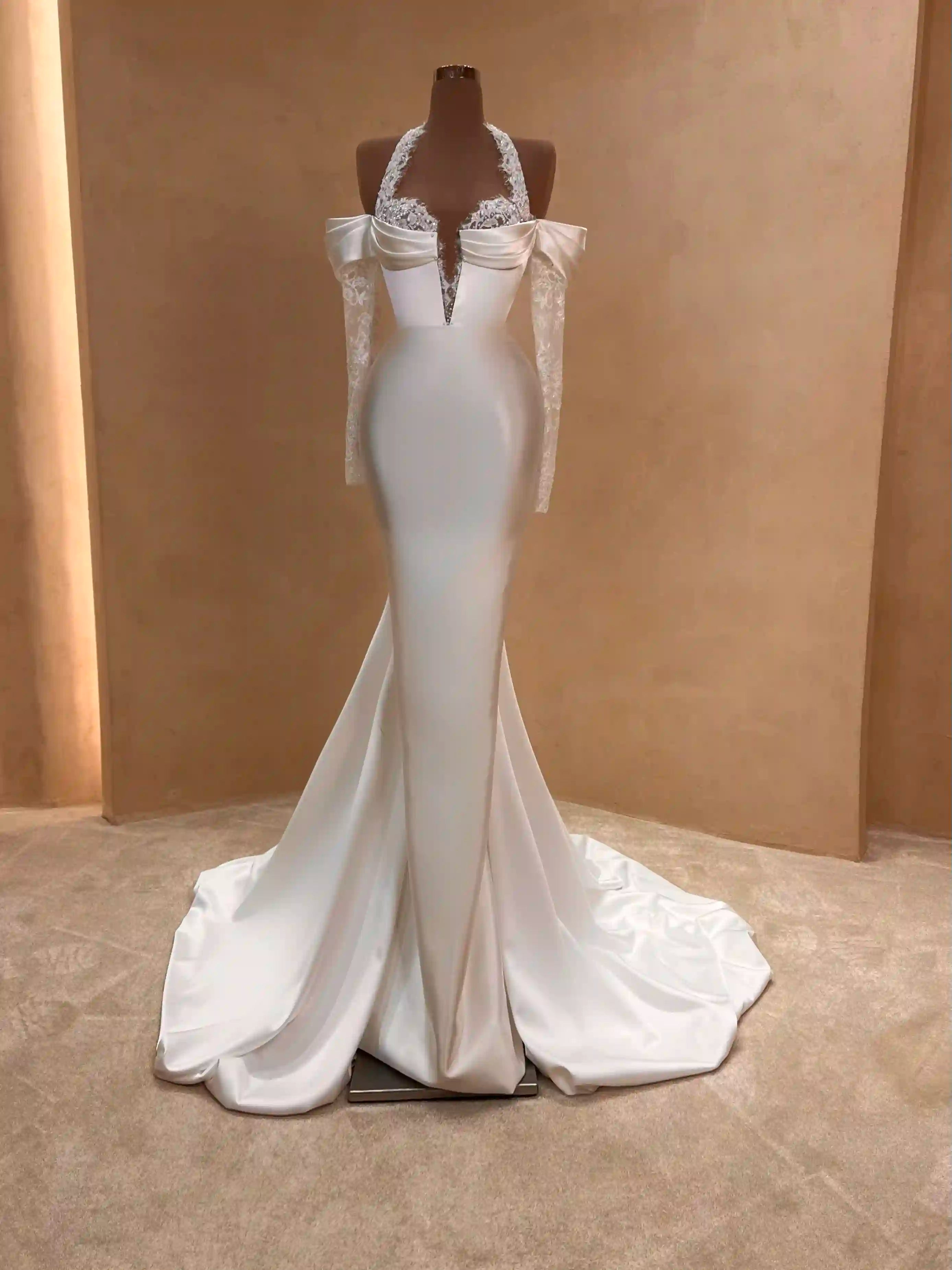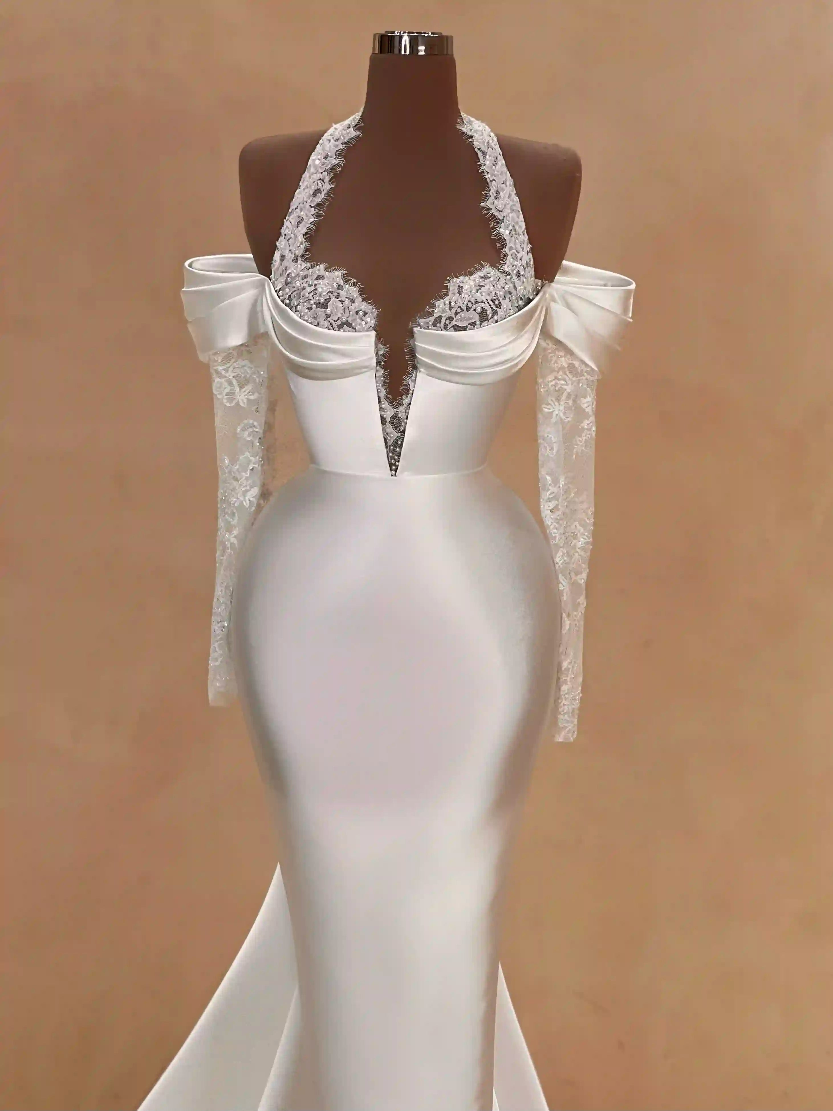 - Illusion lace halter neckline