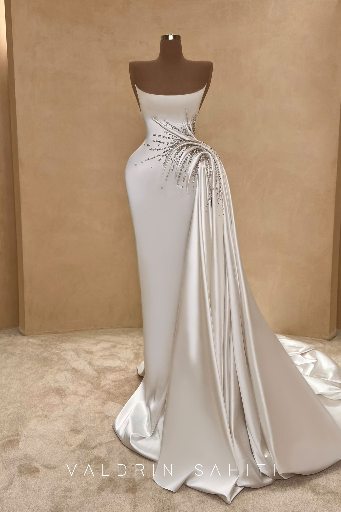 A vision of divine elegance, this bridal gown by Valdrin Sahiti is the essence of romance and modern couture.