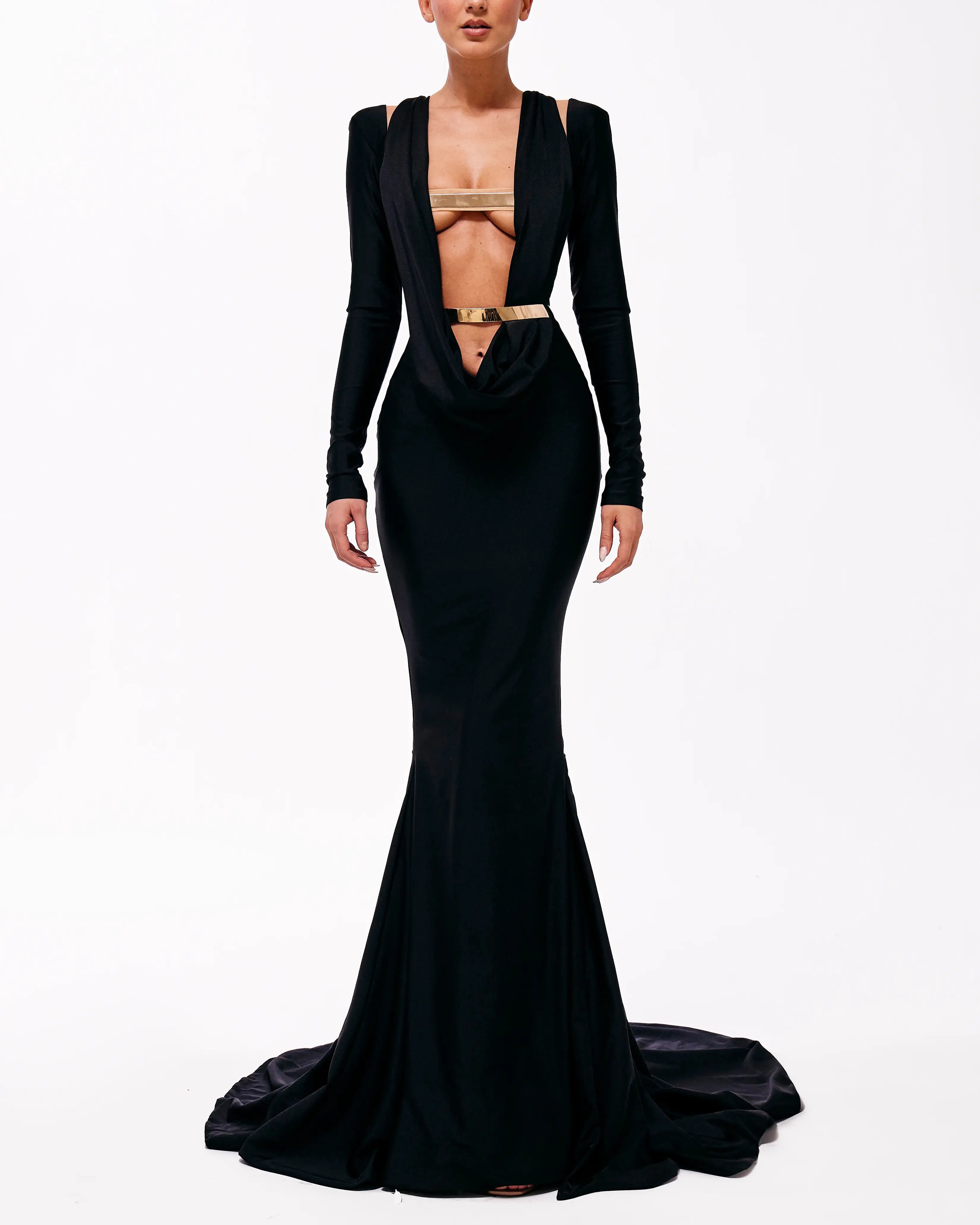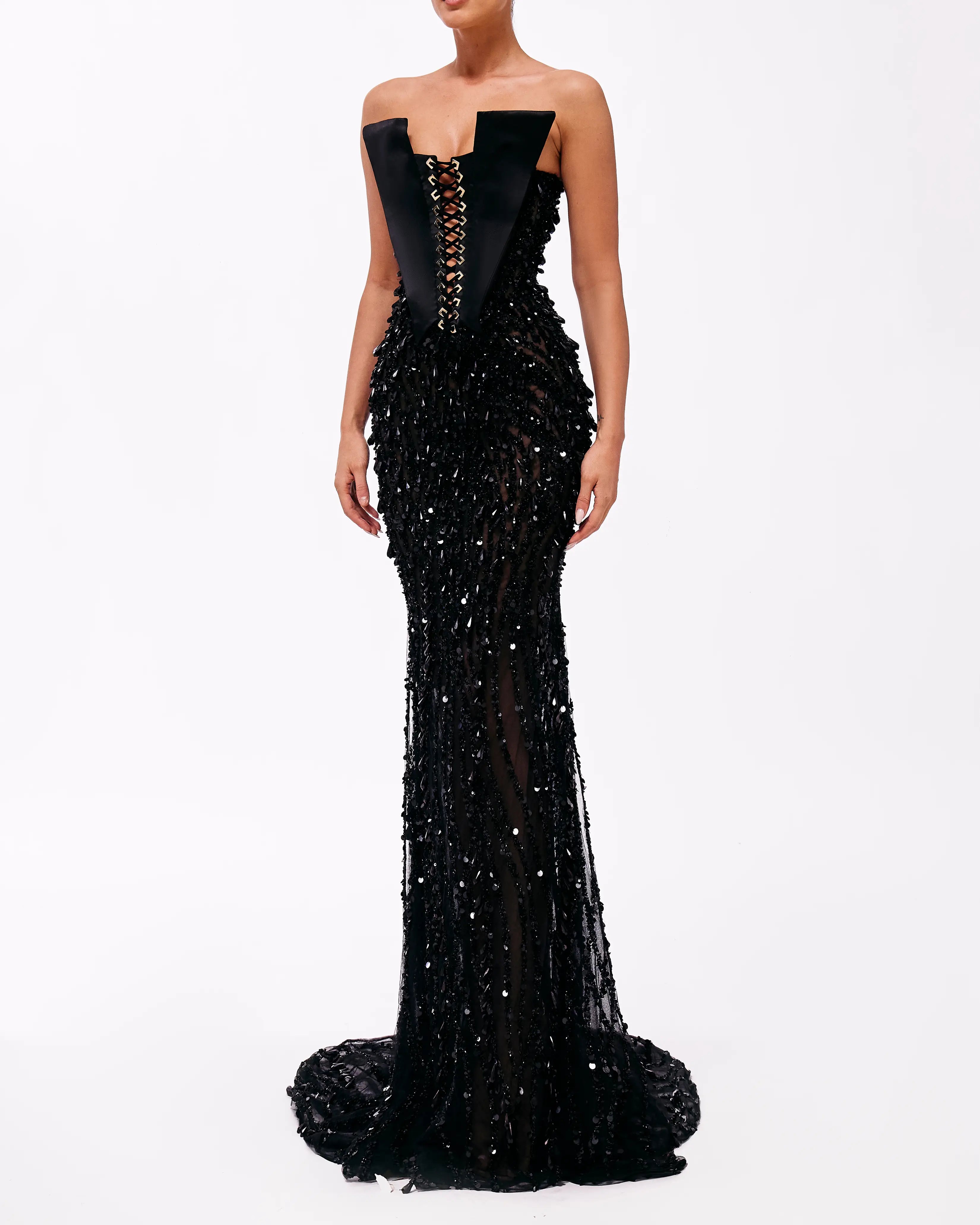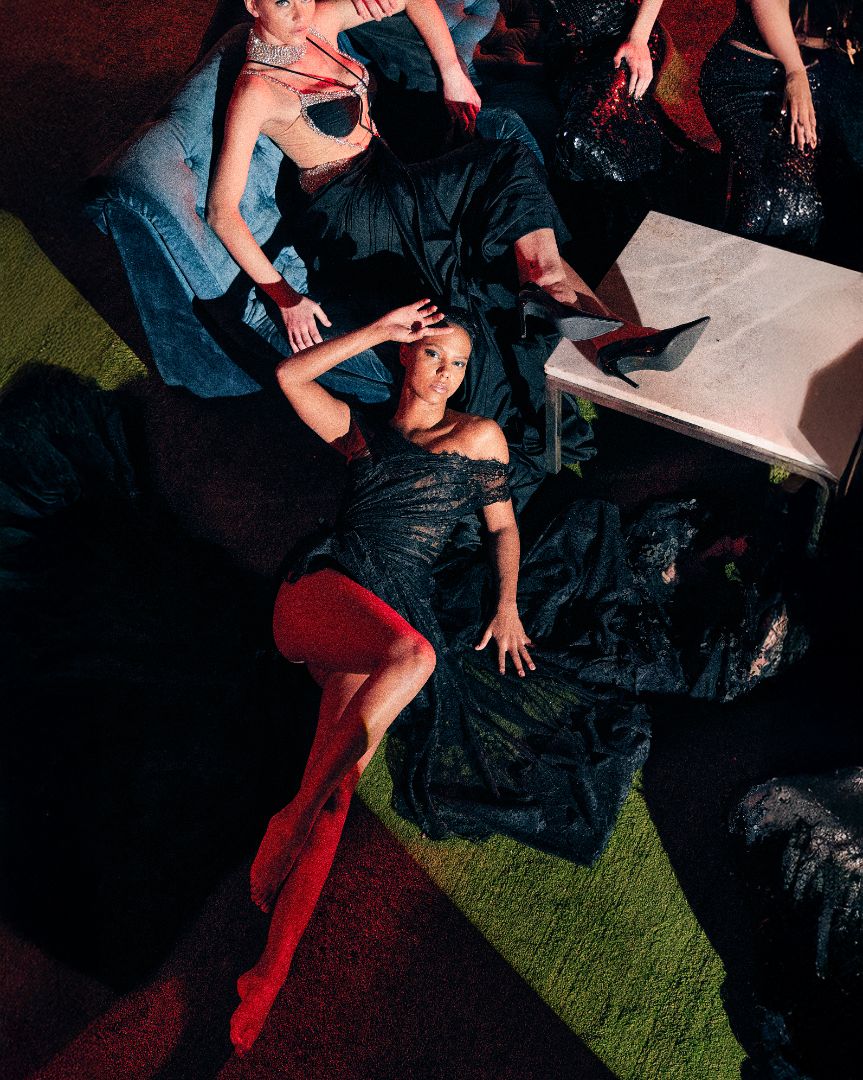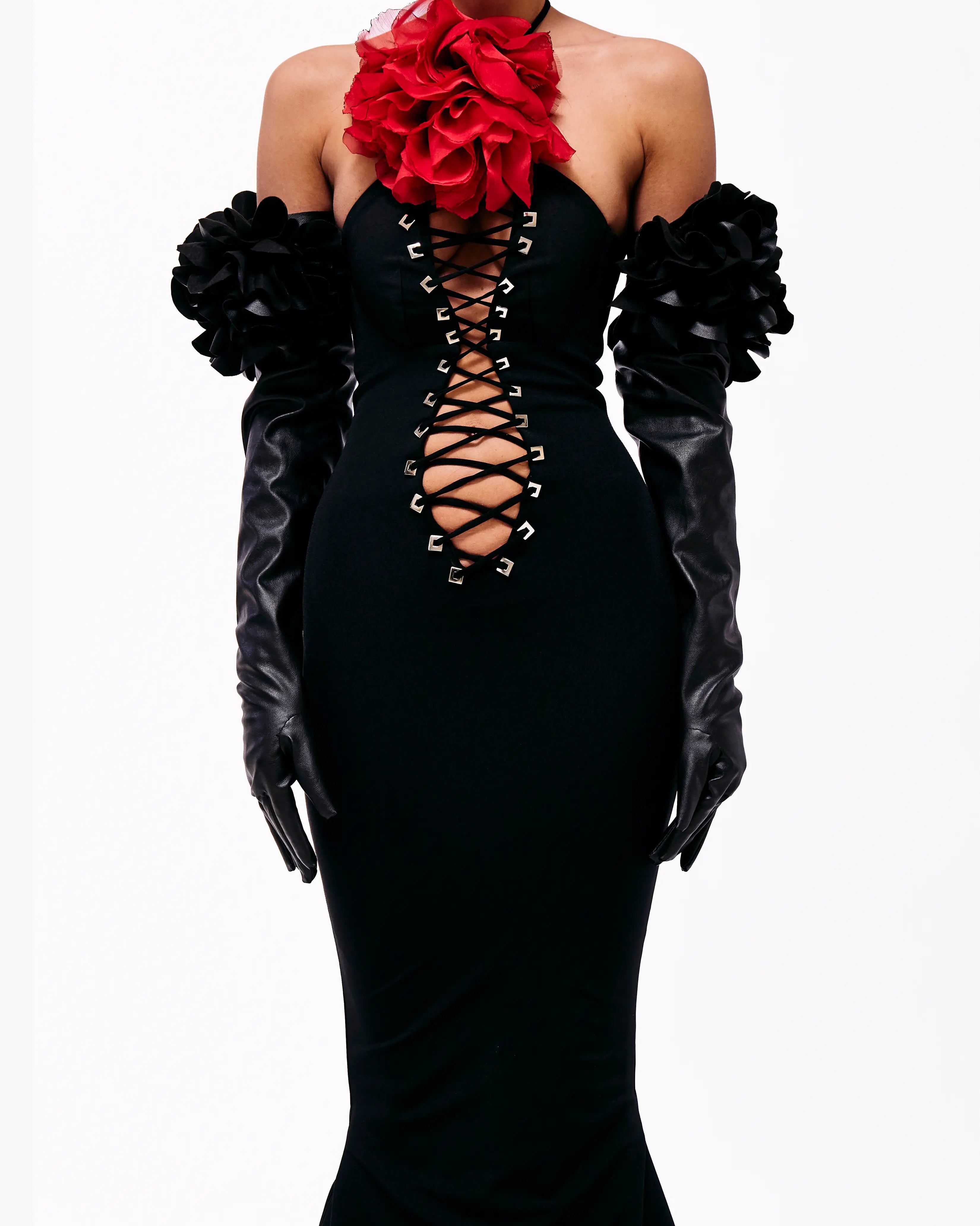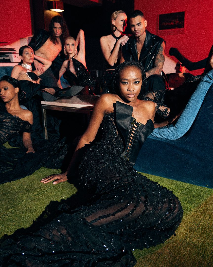 One color, many selections. Black Euphoria demonstrates the power of a traditional shade in the hands of Valdrin Sahiti. Playing with a variety of fabrics from leather to lace, this collection makes a statement through one shade. Elevate your events with a touch of sophistication. Feel euphoric through the timelessly chic nuance.