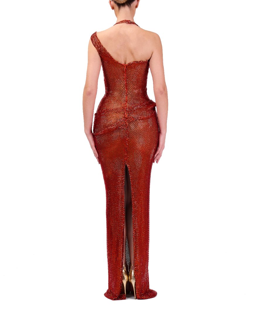 This elegant long dress features a sophisticated halter neck and sleeveless design, ideal for highlighting the shoulders and arms. Its carefully draped waist enhances the silhouette, providing a flattering and refined look suitable for formal occasions. Crafted to combine style and comfort, this dress effortlessly elevates your evening wardrobe.