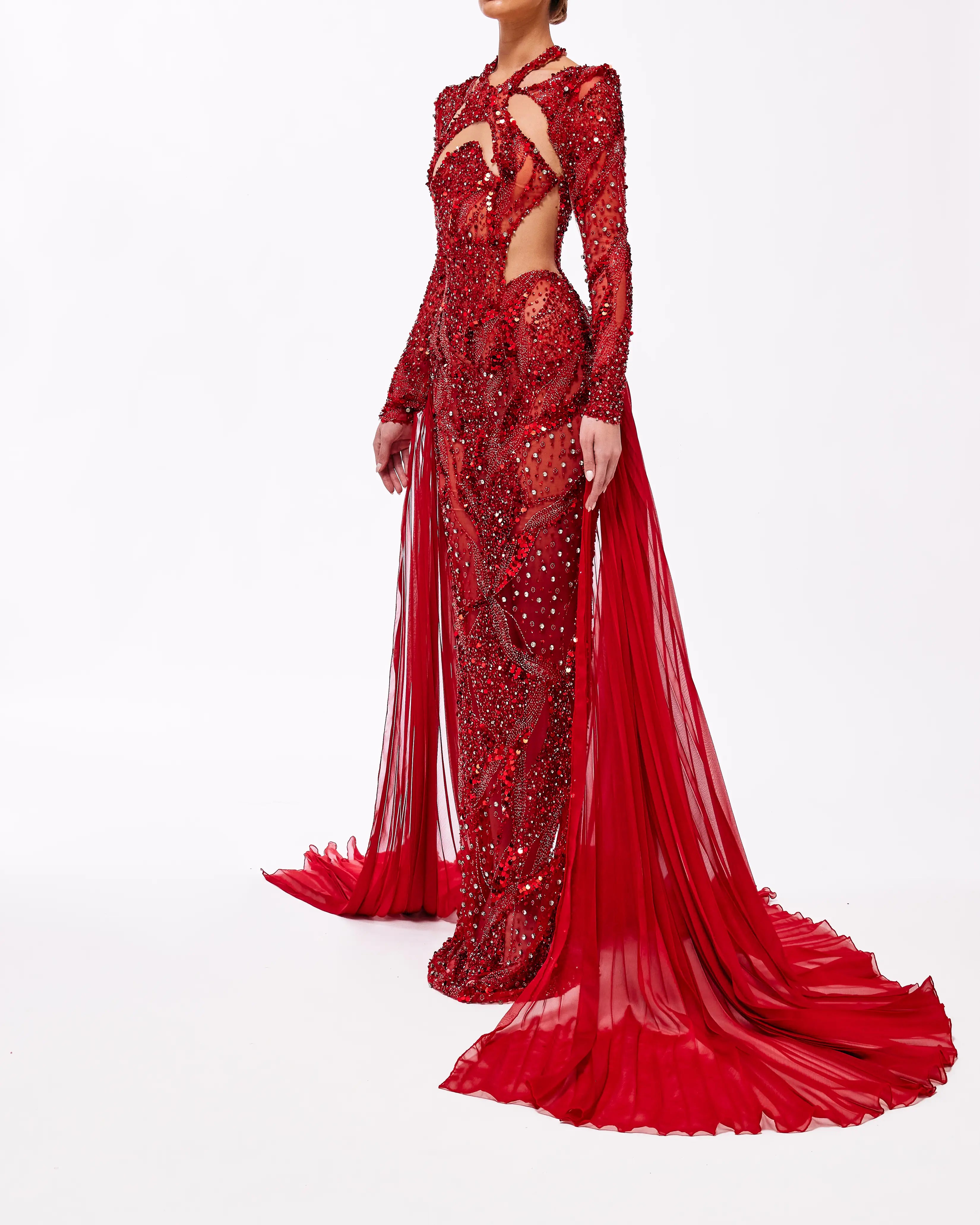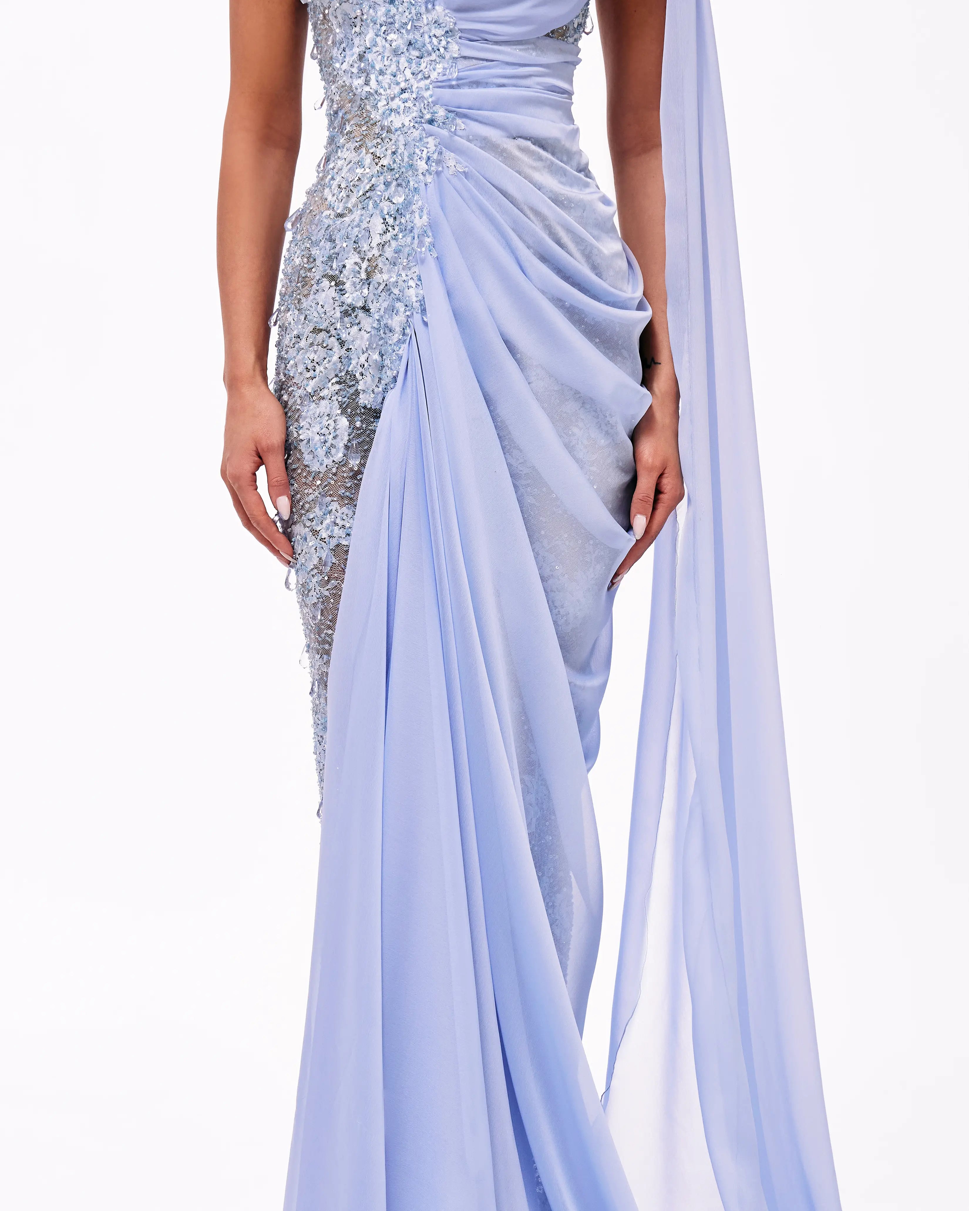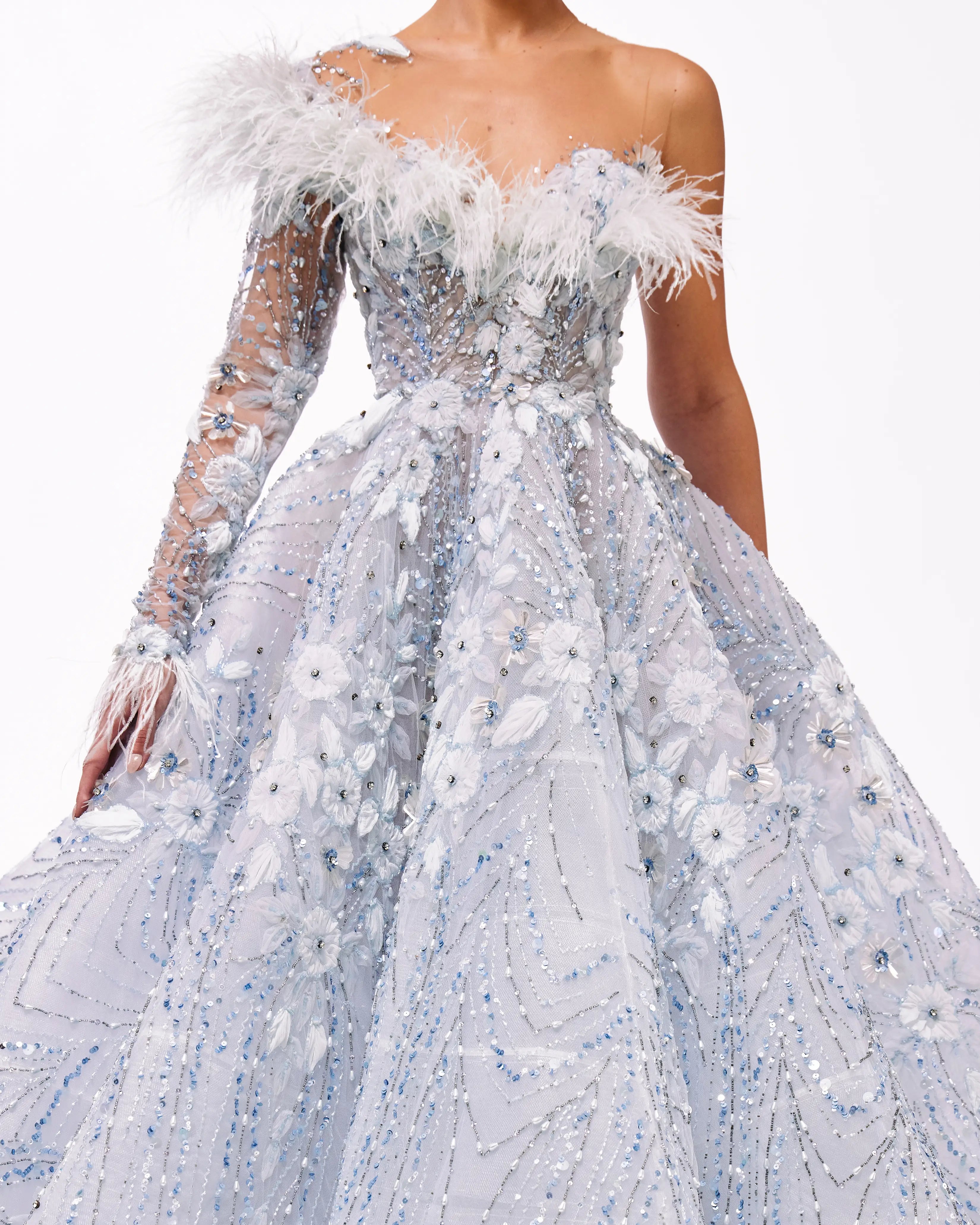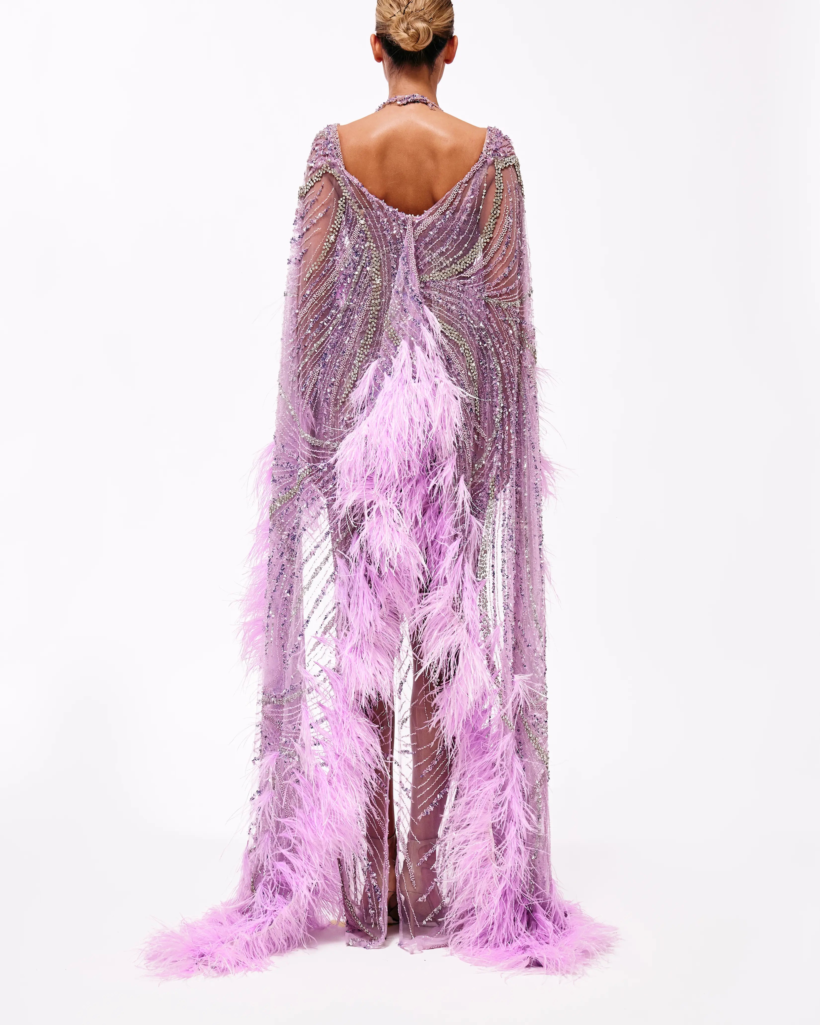 A collection full of life, Haute Allure brings your imagination to reality. With a vast selection in hues, these gowns provide ample options for extravagant events. This collection is elegantly maximalistic, with the floral lace material, cape aspect, and other unique features. Enter a world of colorful drama through Valdrin Sahiti.