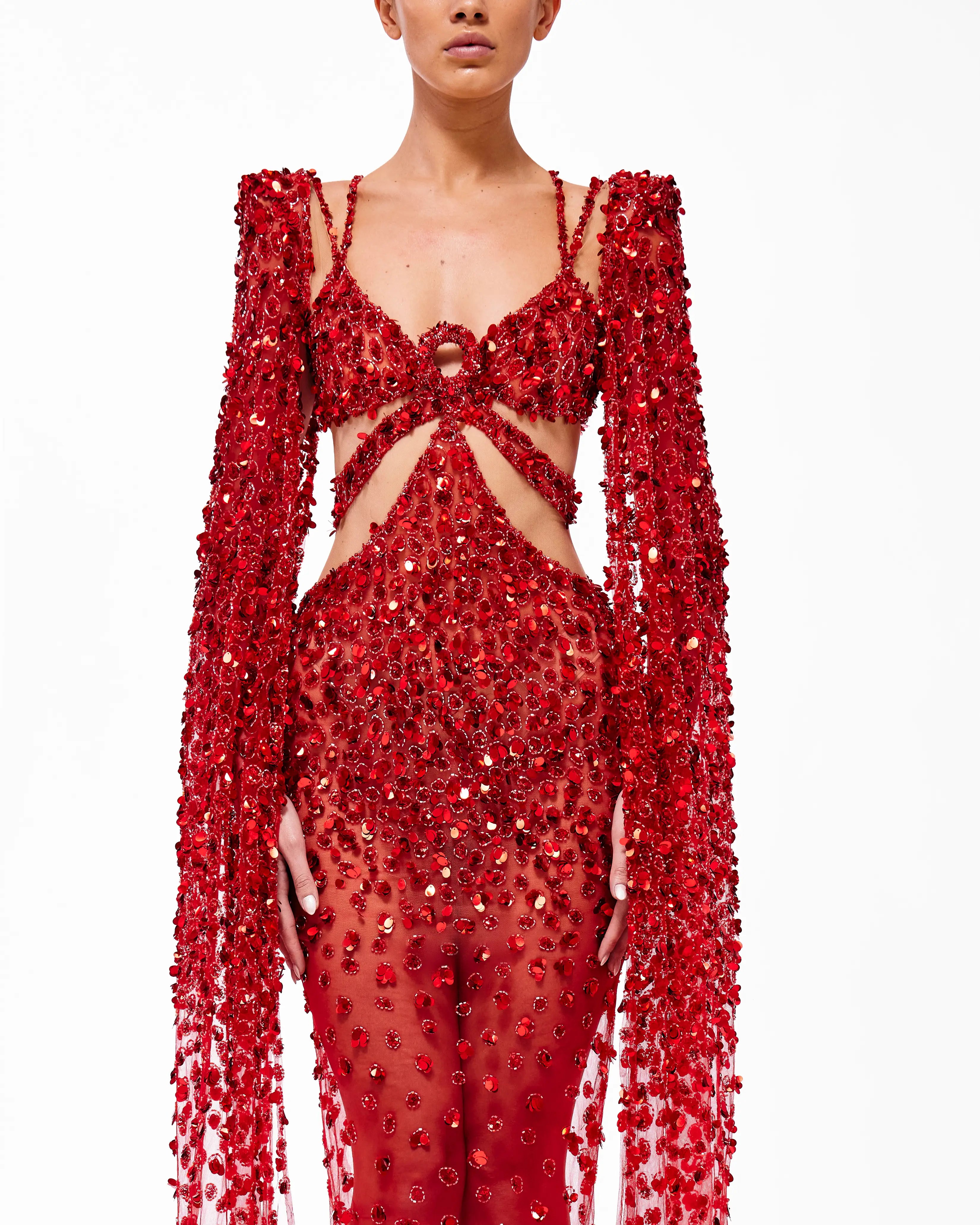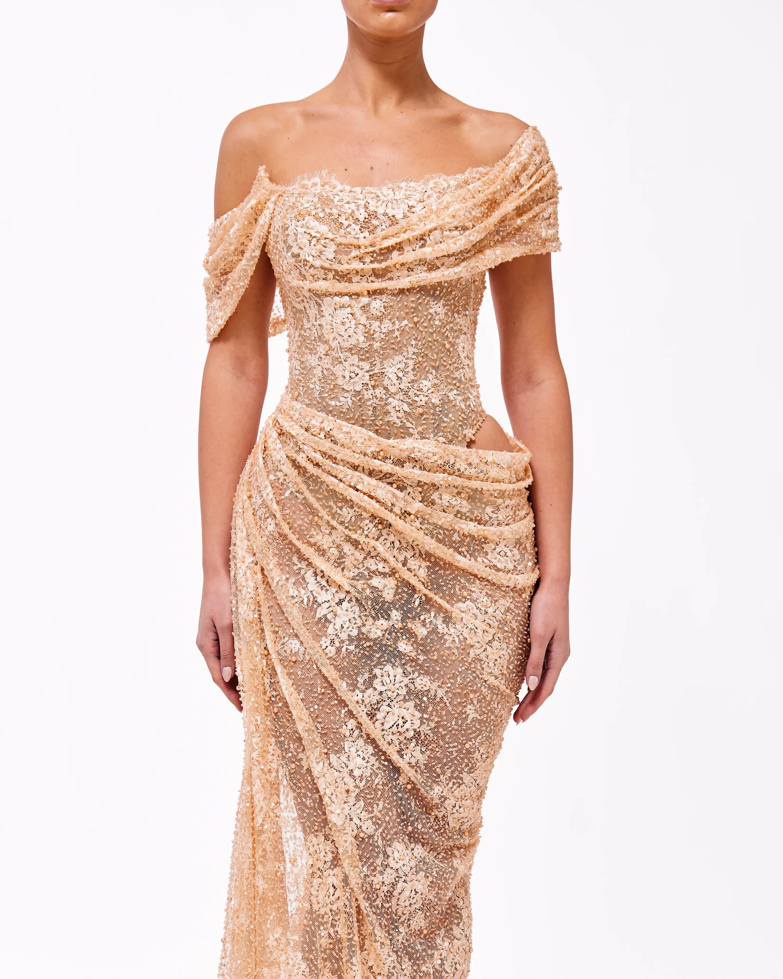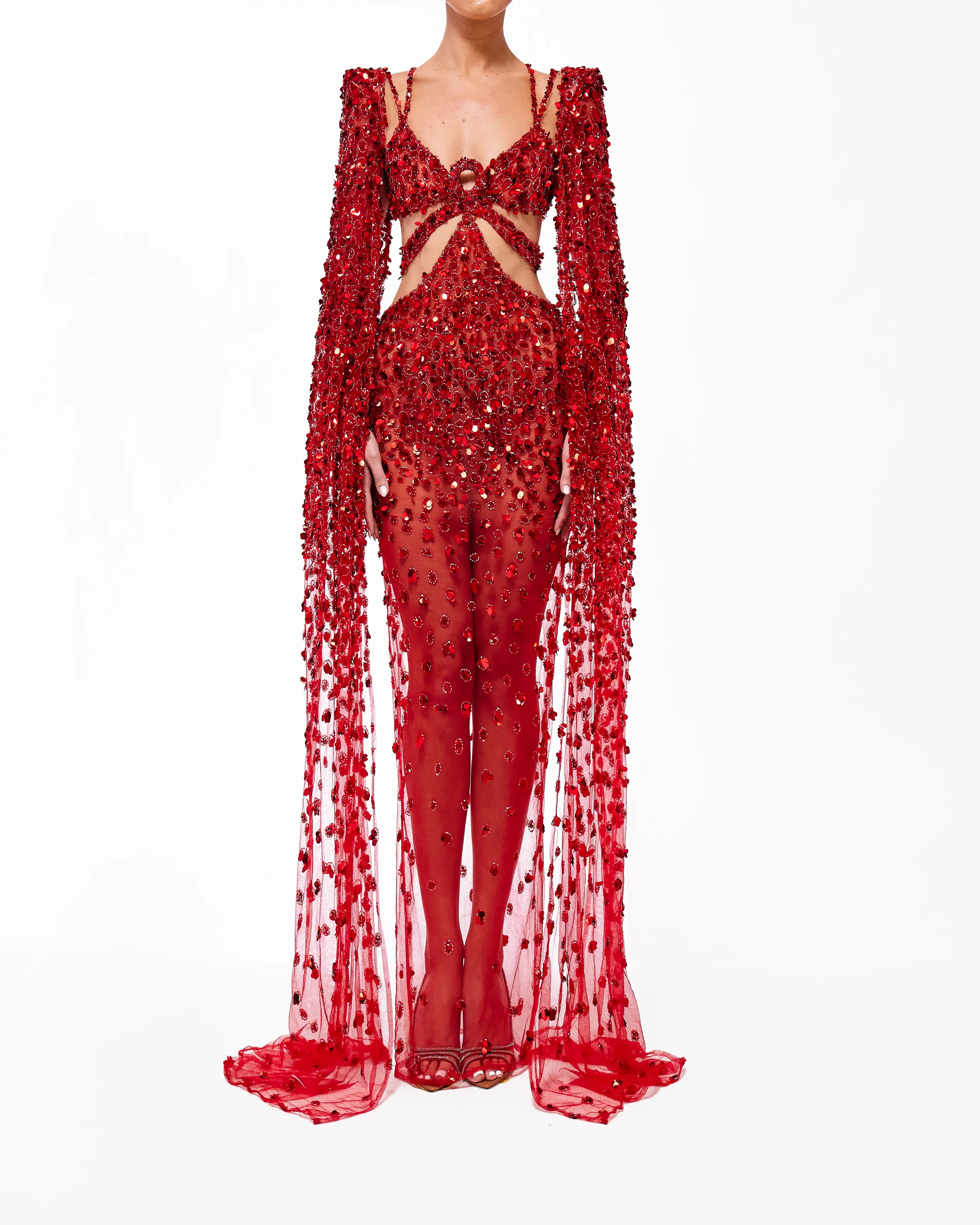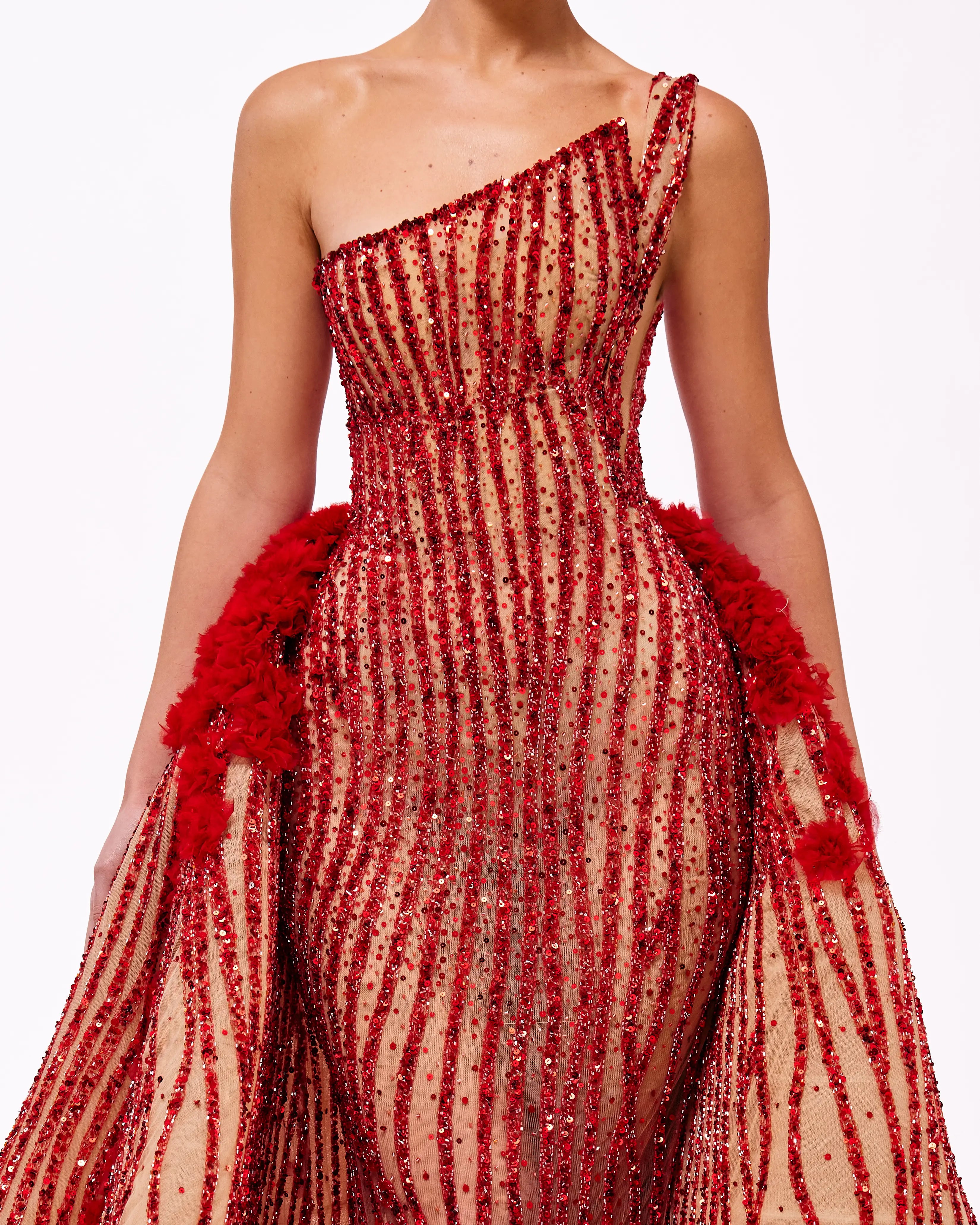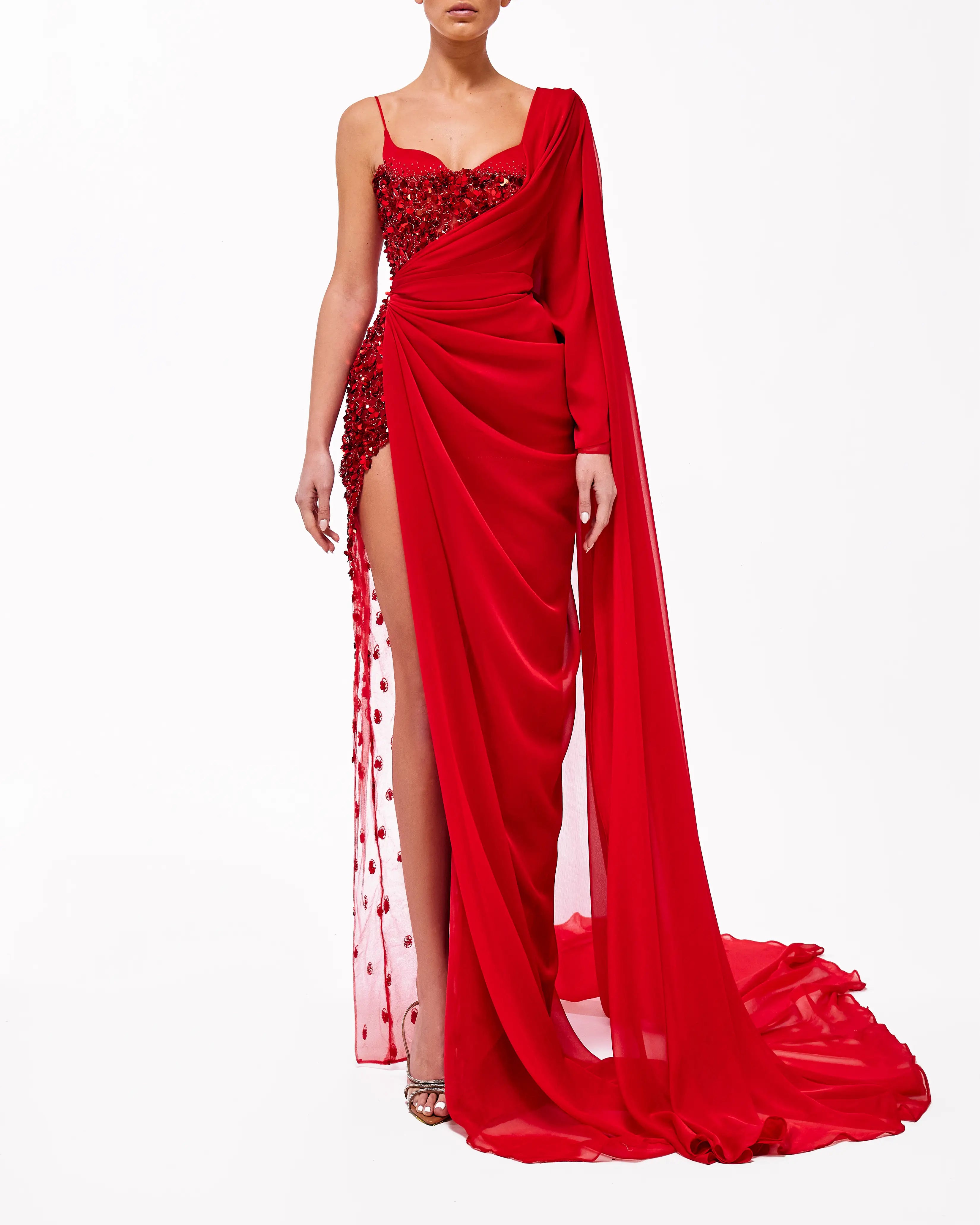 A collection full of life, Haute Allure brings your imagination to reality. With a vast selection in hues, these gowns provide ample options for extravagant events. This collection is elegantly maximalistic, with the floral lace material, cape aspect, and other unique features. Enter a world of colorful drama through Valdrin Sahiti.