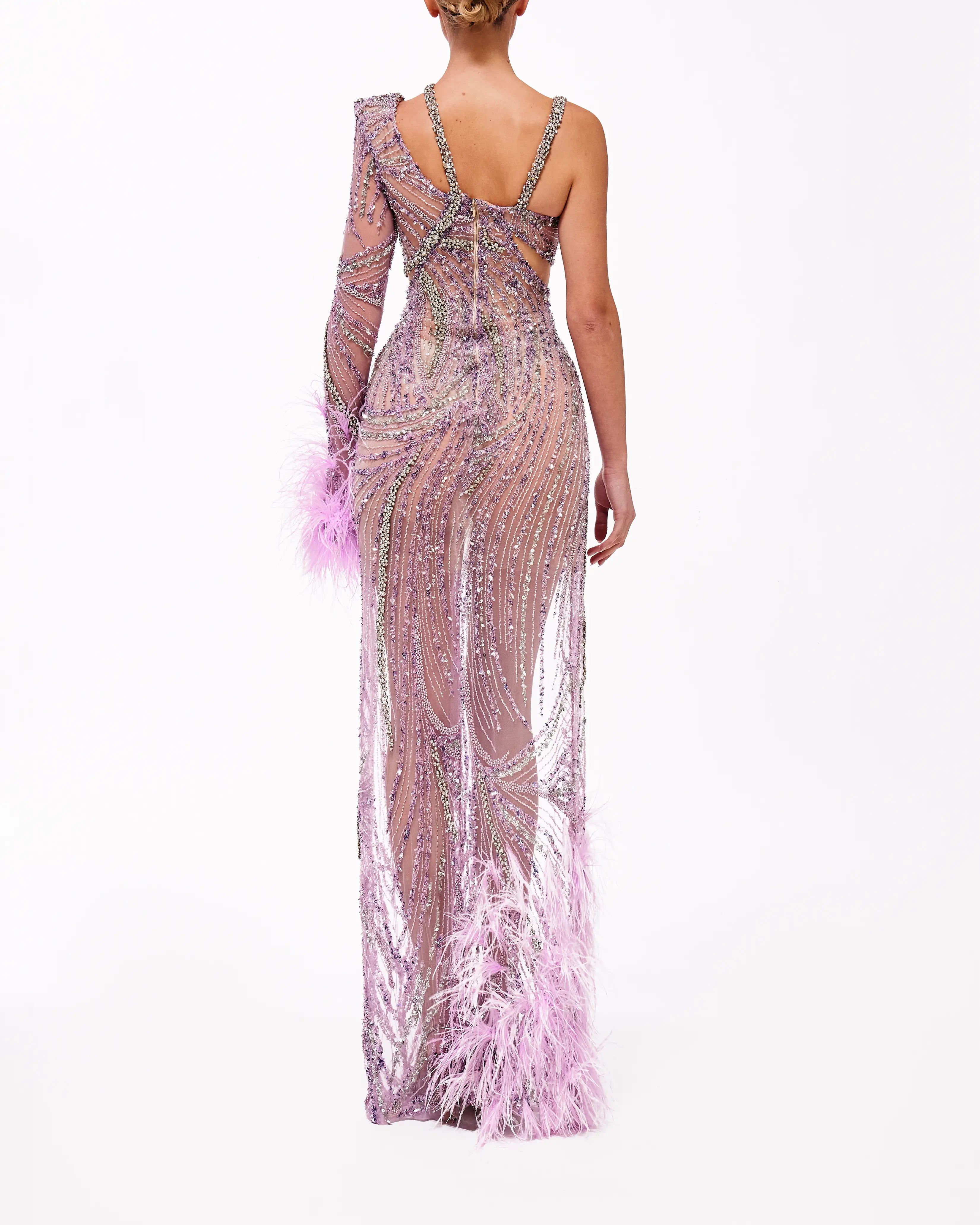 long fitted gown with asymmetrical cutouts!