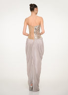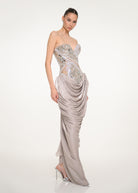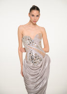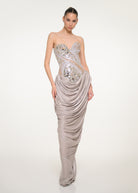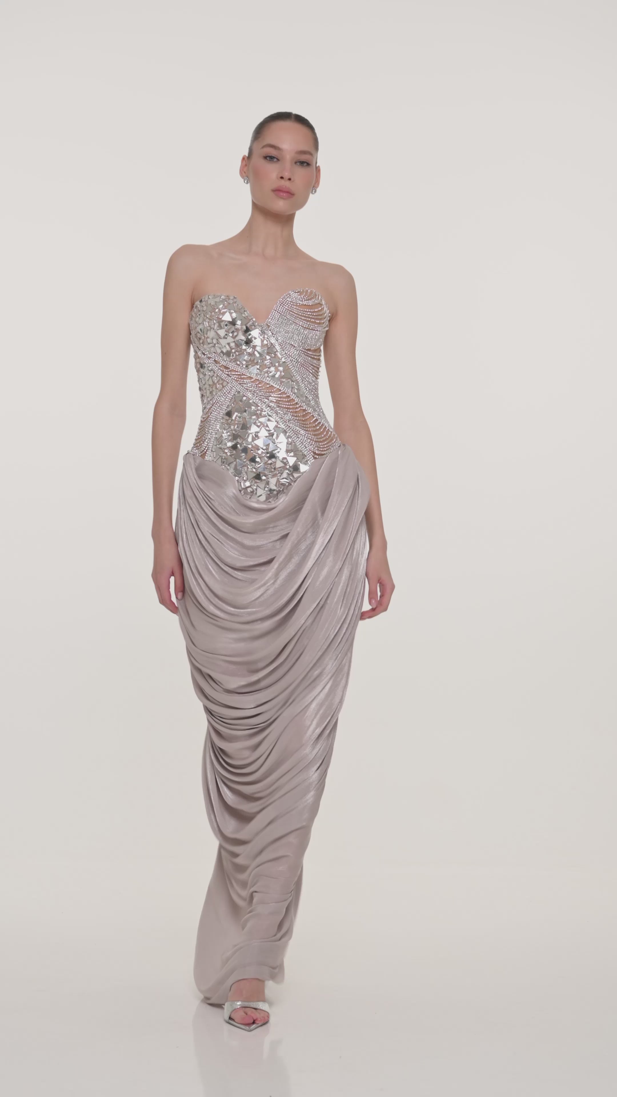 Silver shards cascade into molten silk, where armor softens into surrender.