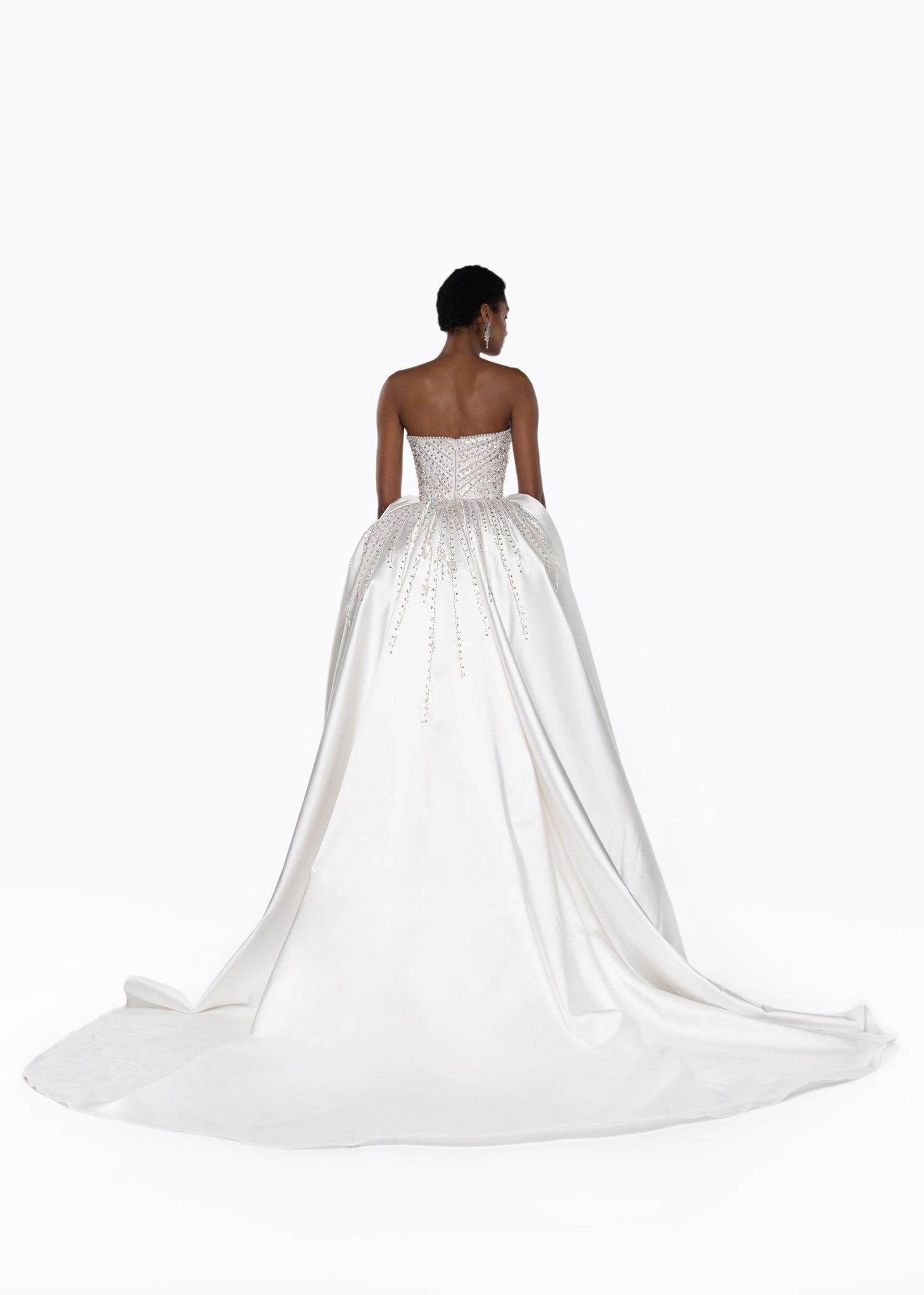 - Draped overskirt panels at hips