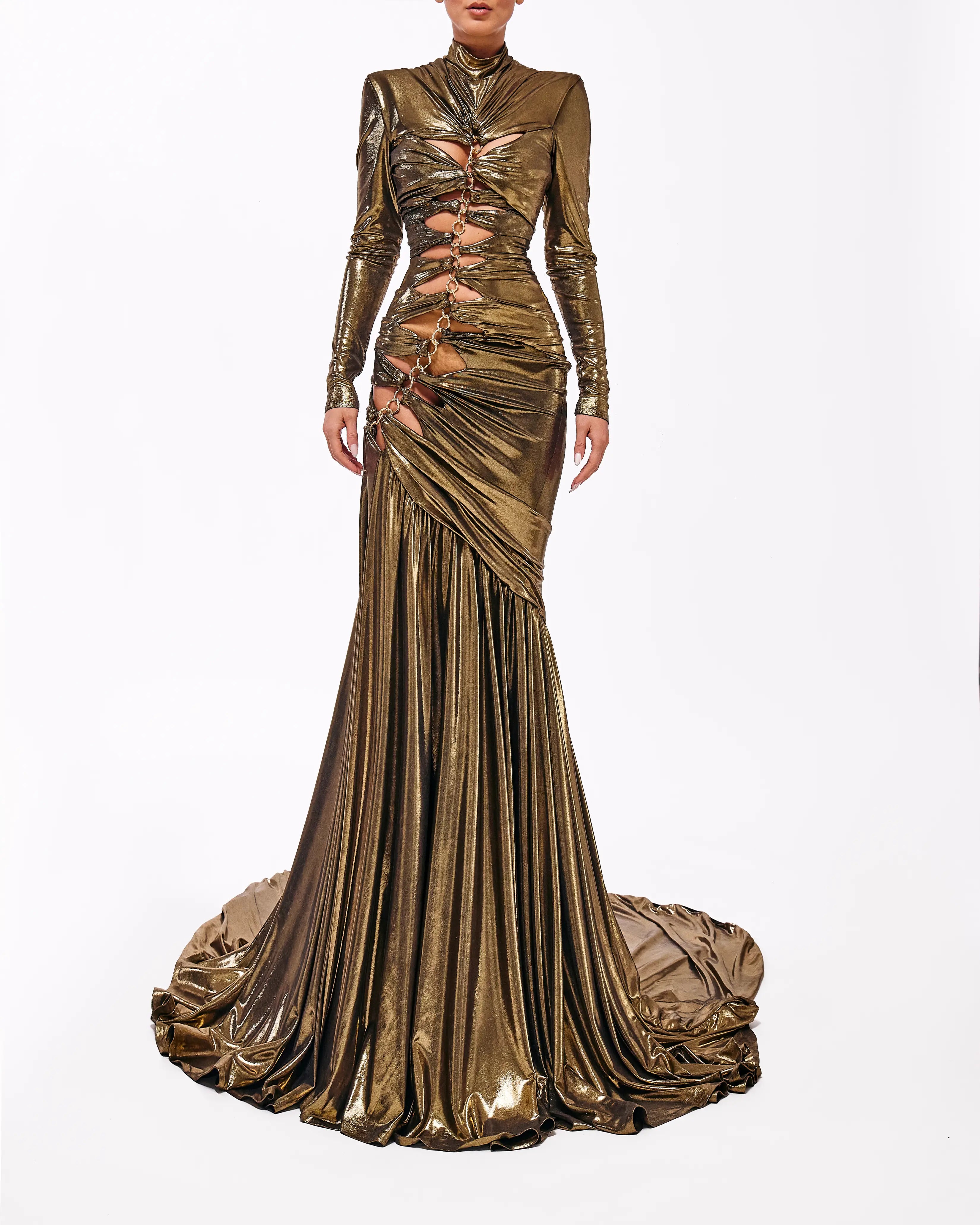 - Metallic green gown