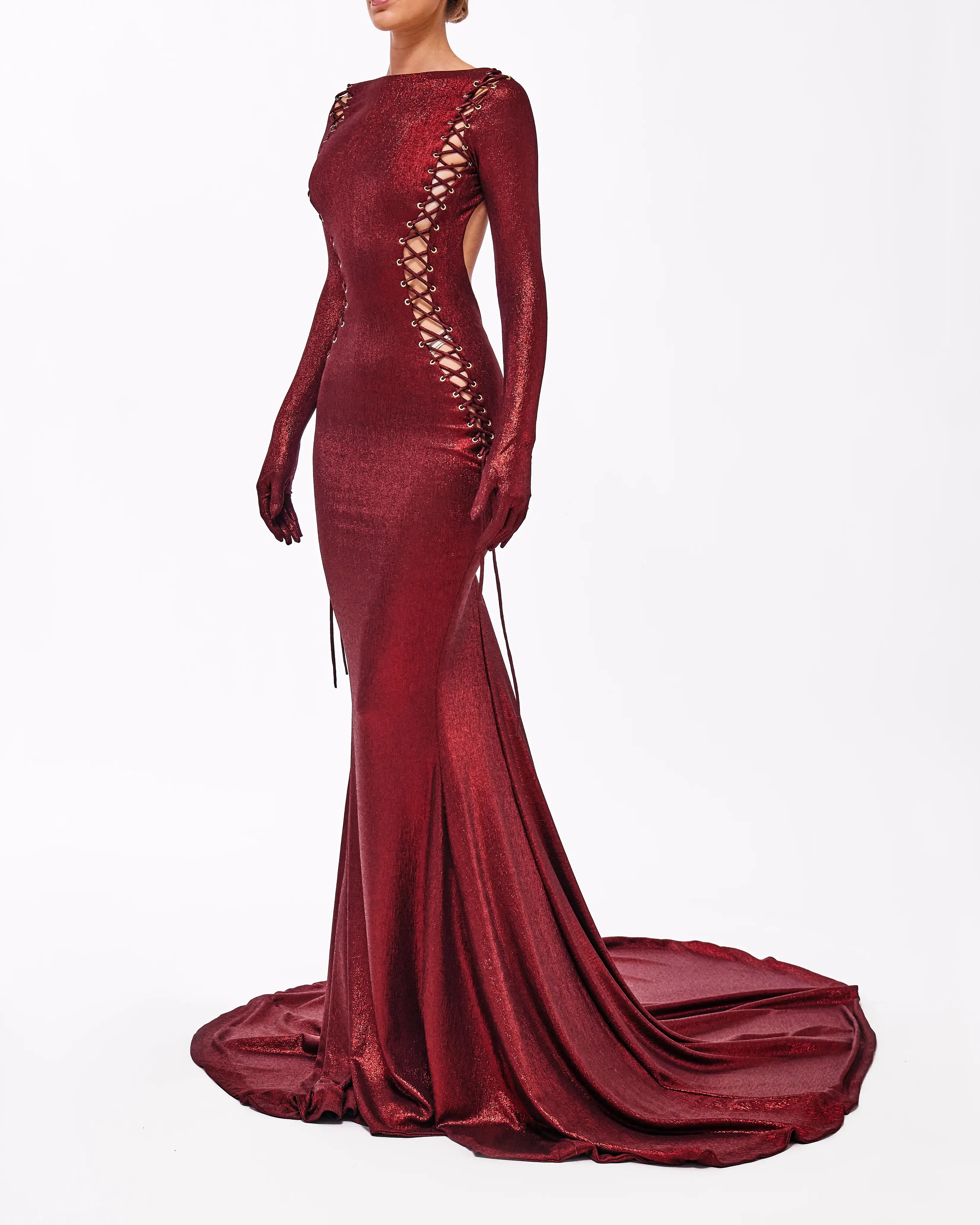 - Metallic red dress