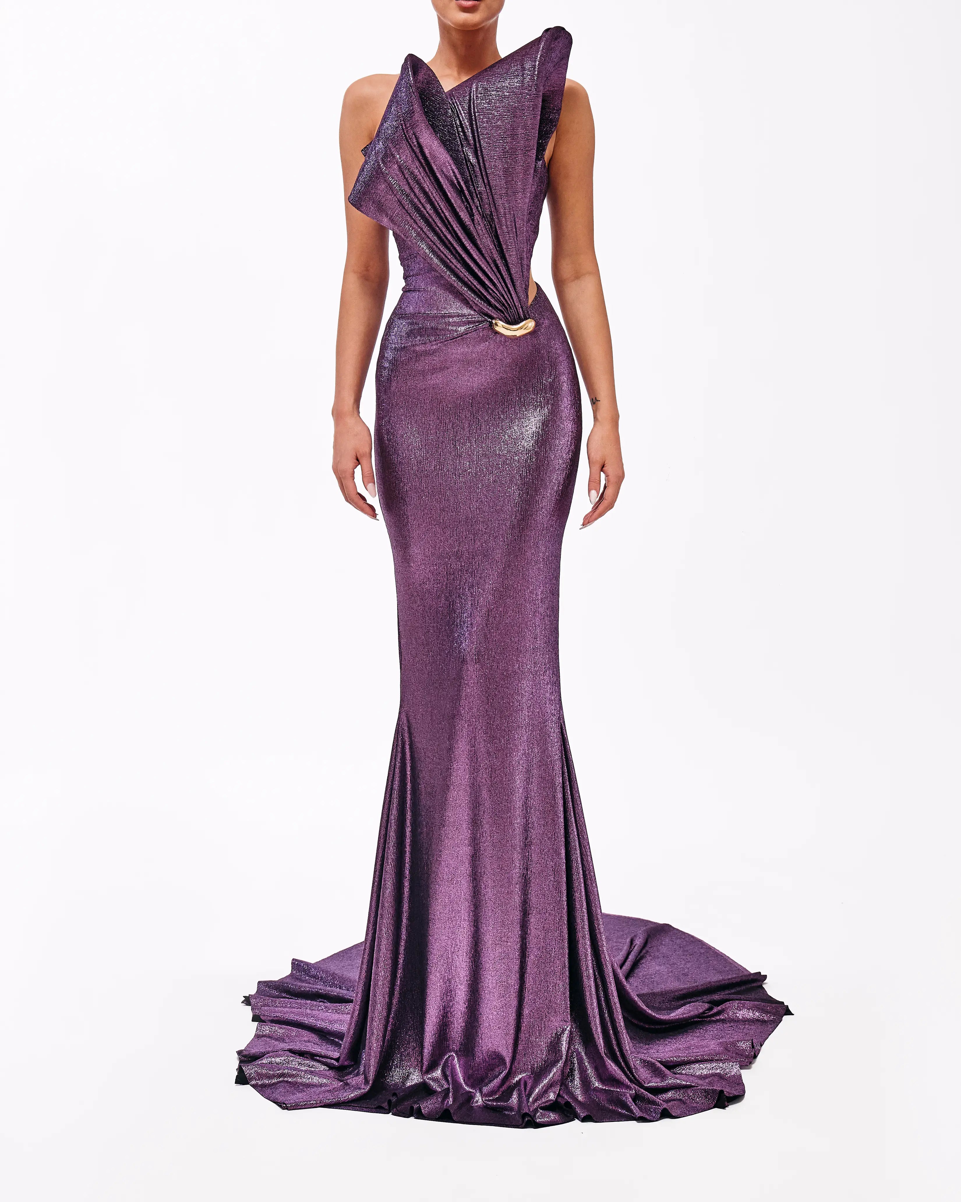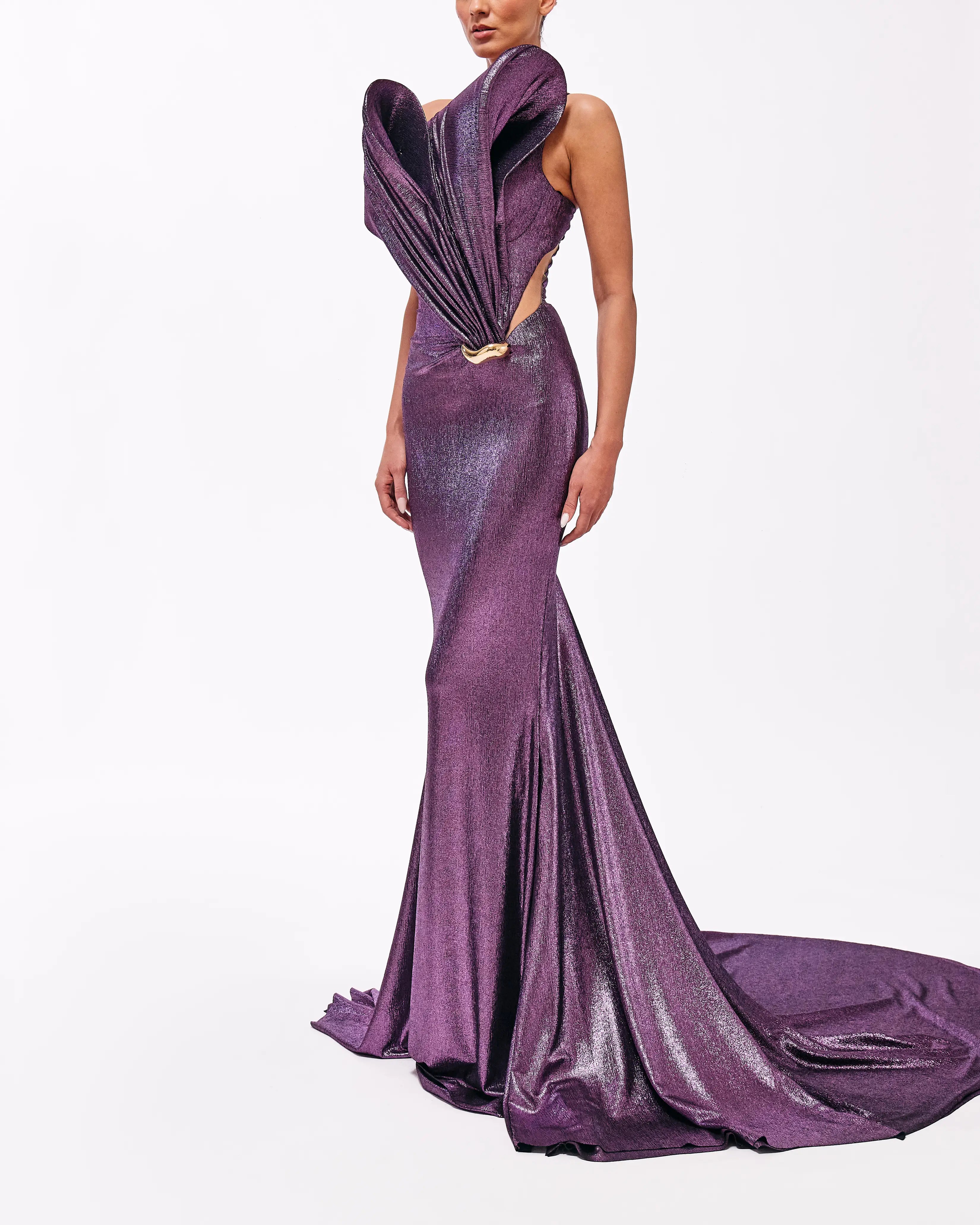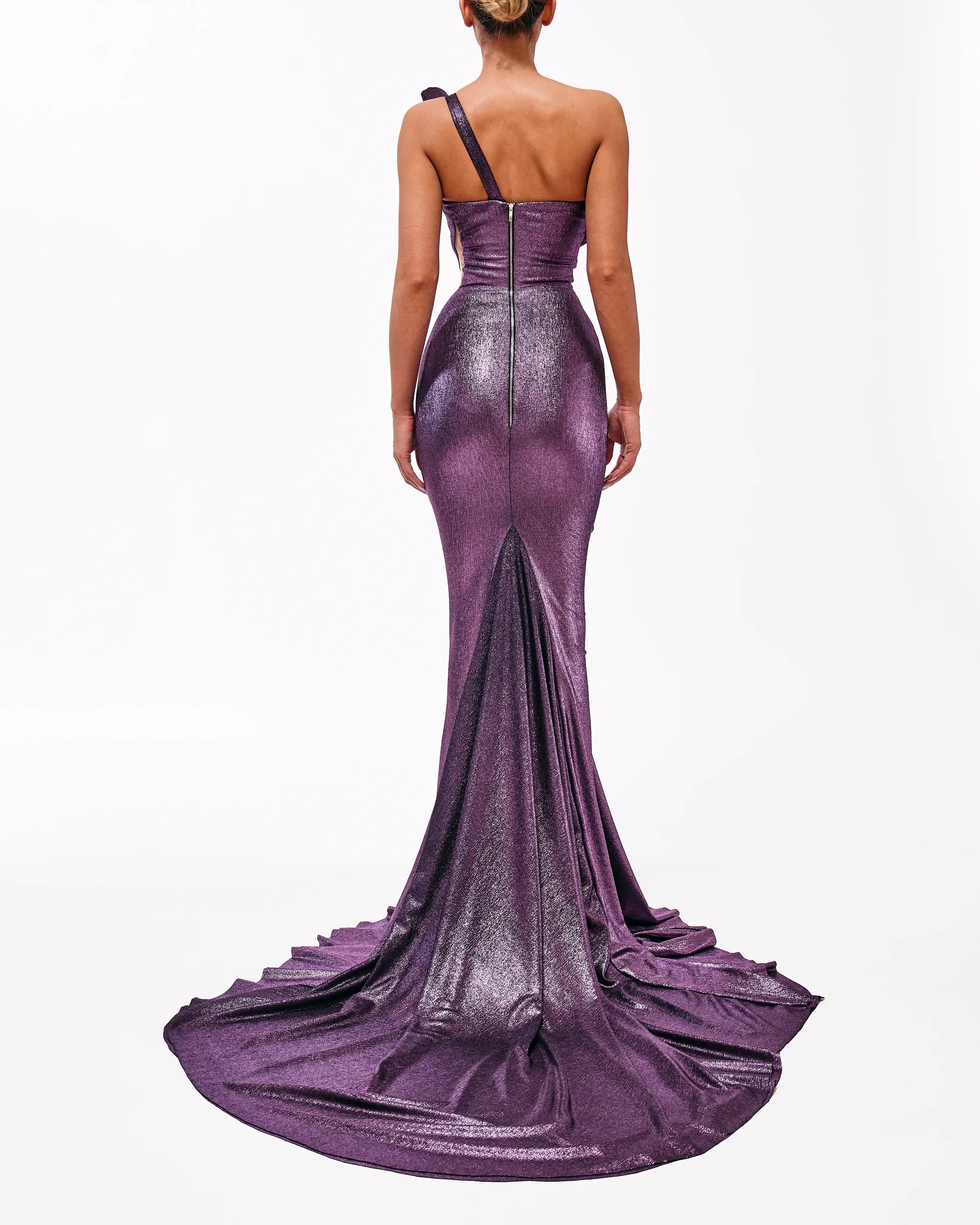 - Shimmering purple metallic gown