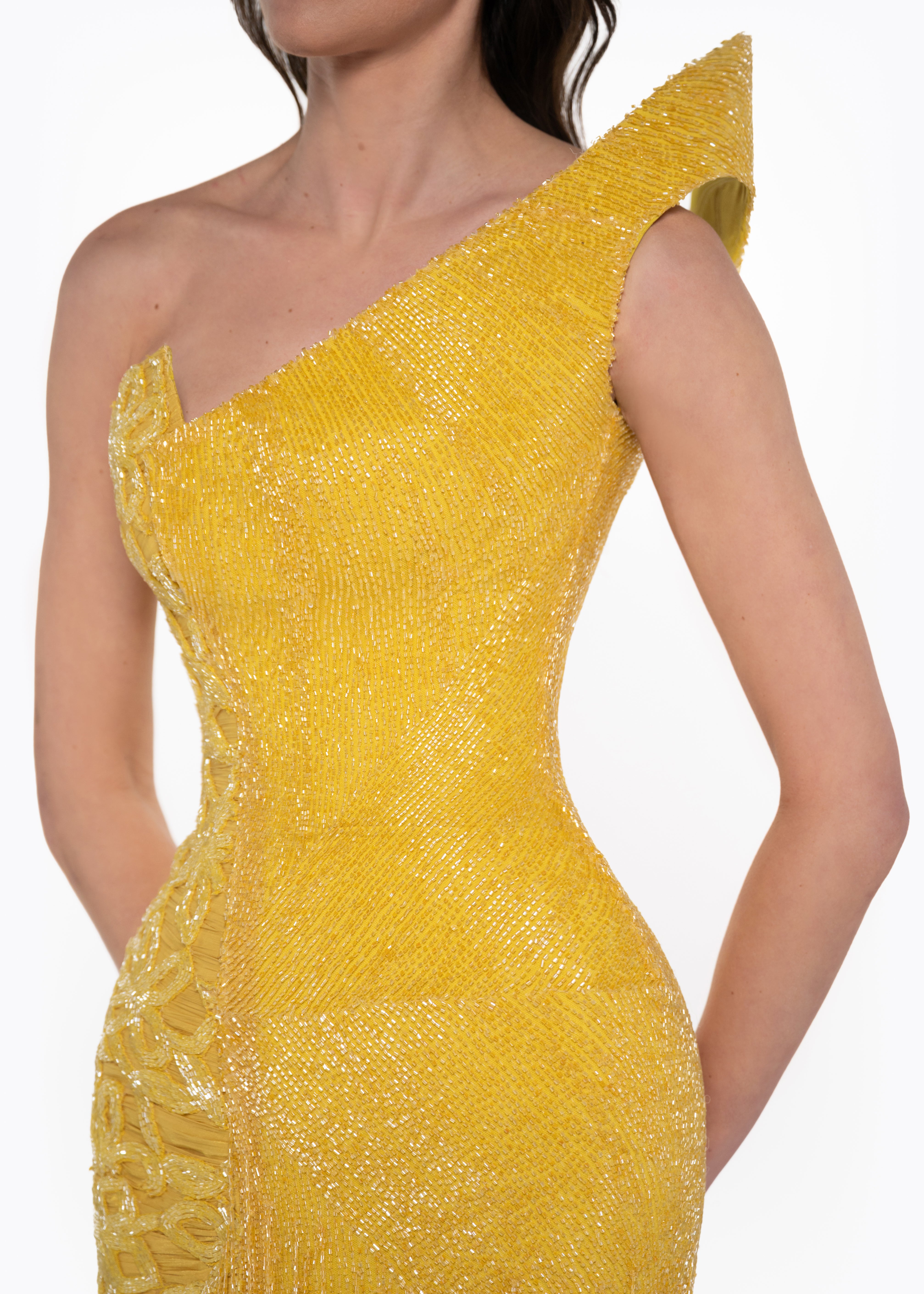 • Asymmetric one shoulder neckline