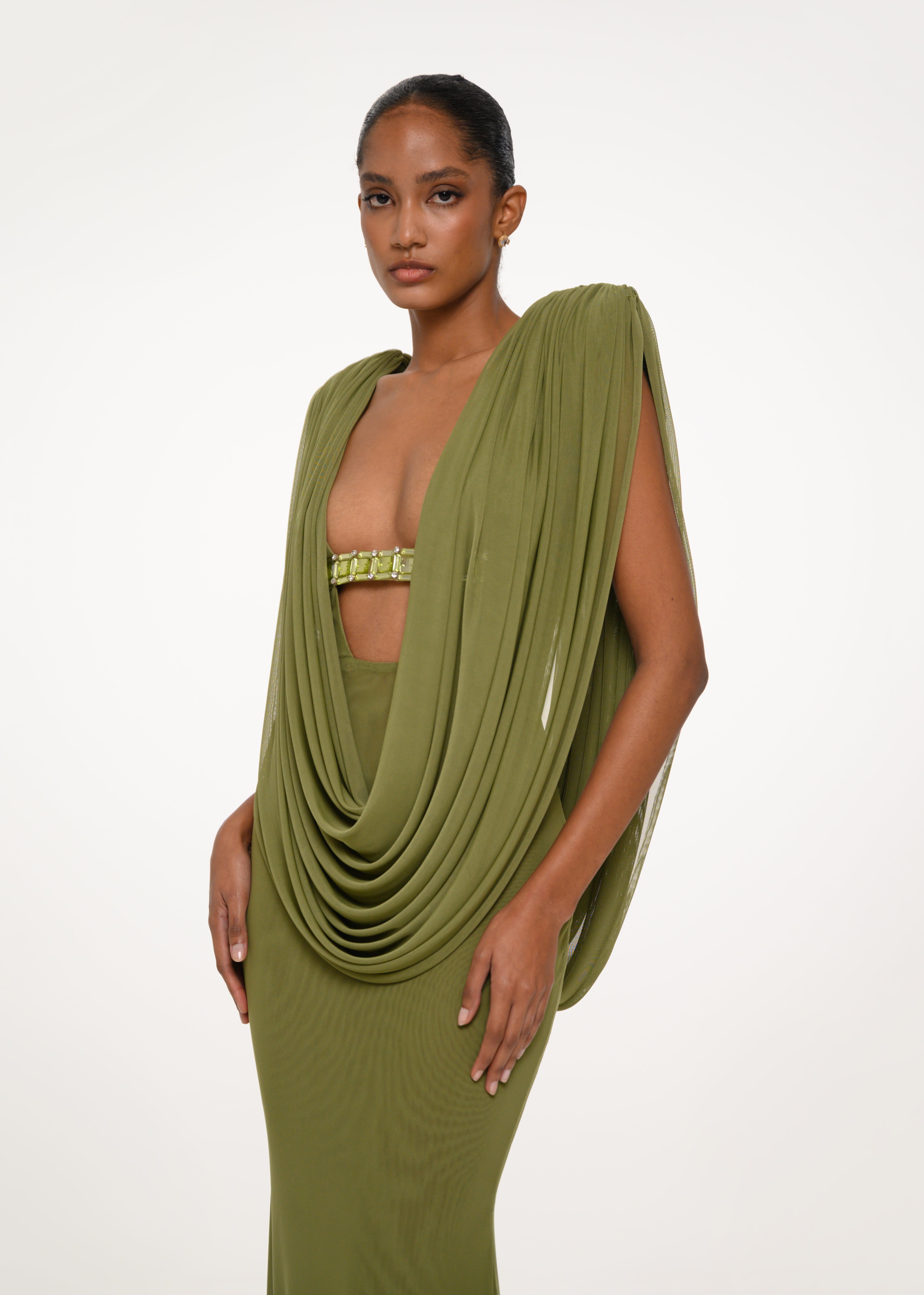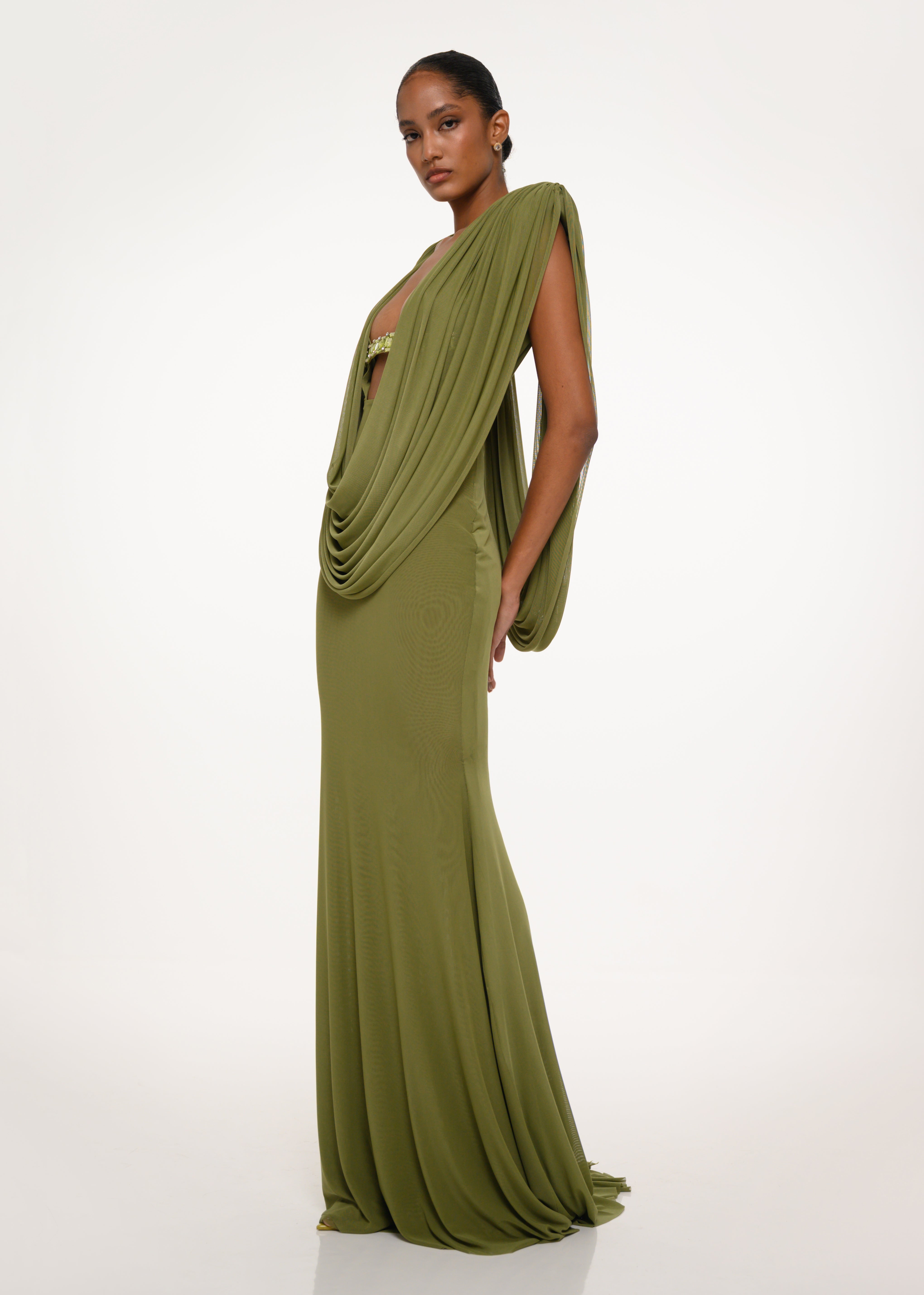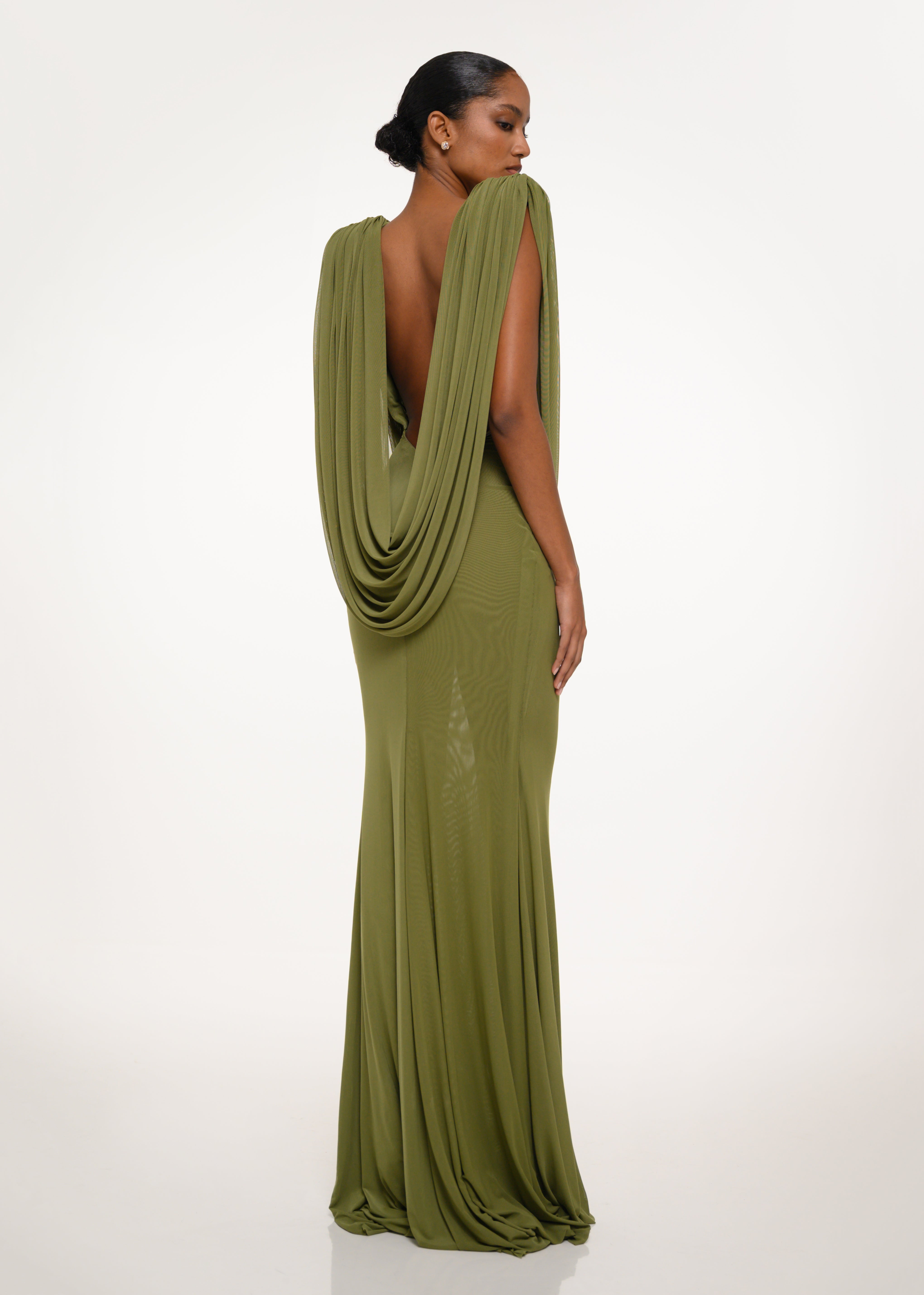 Olive Drape Gown