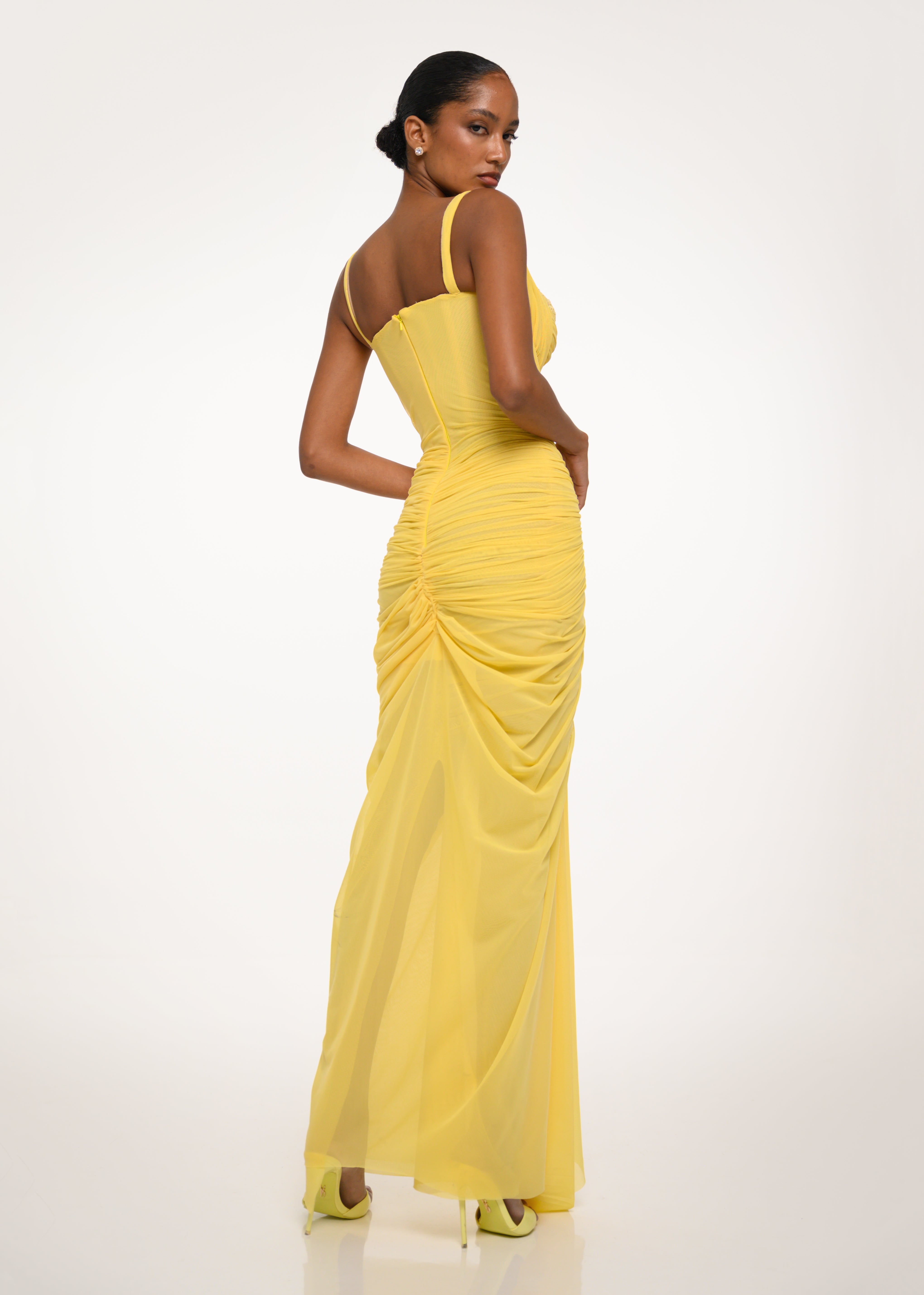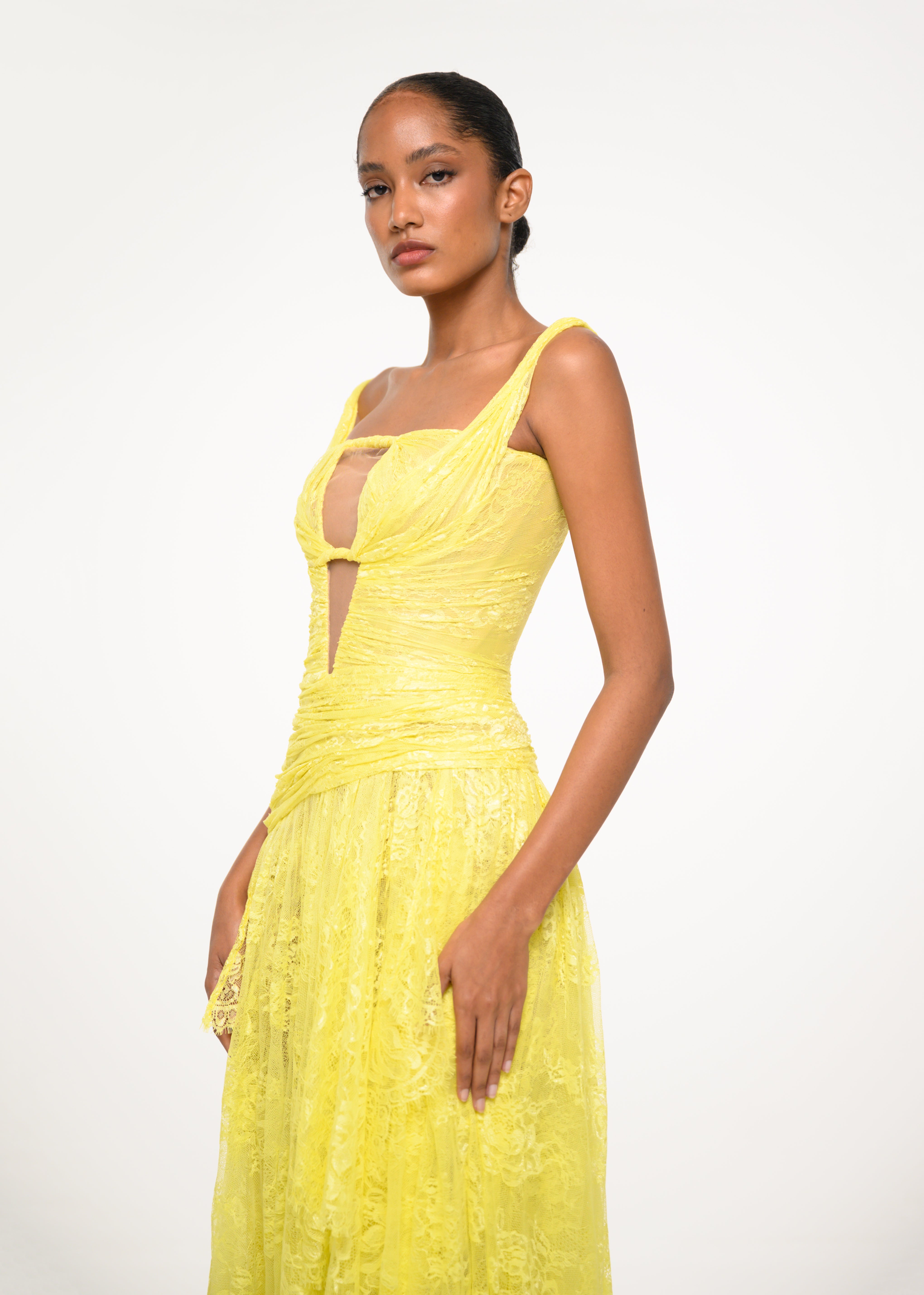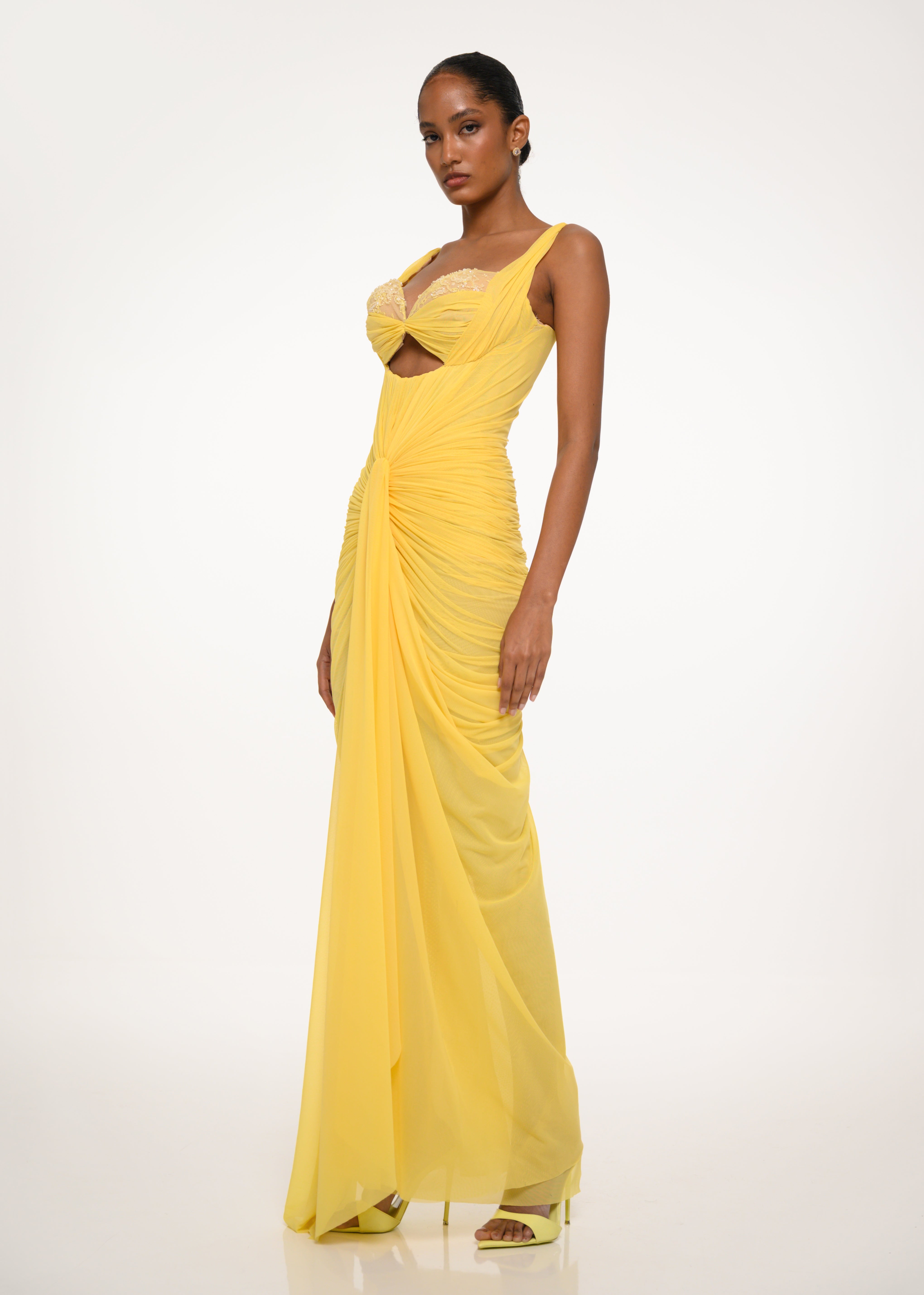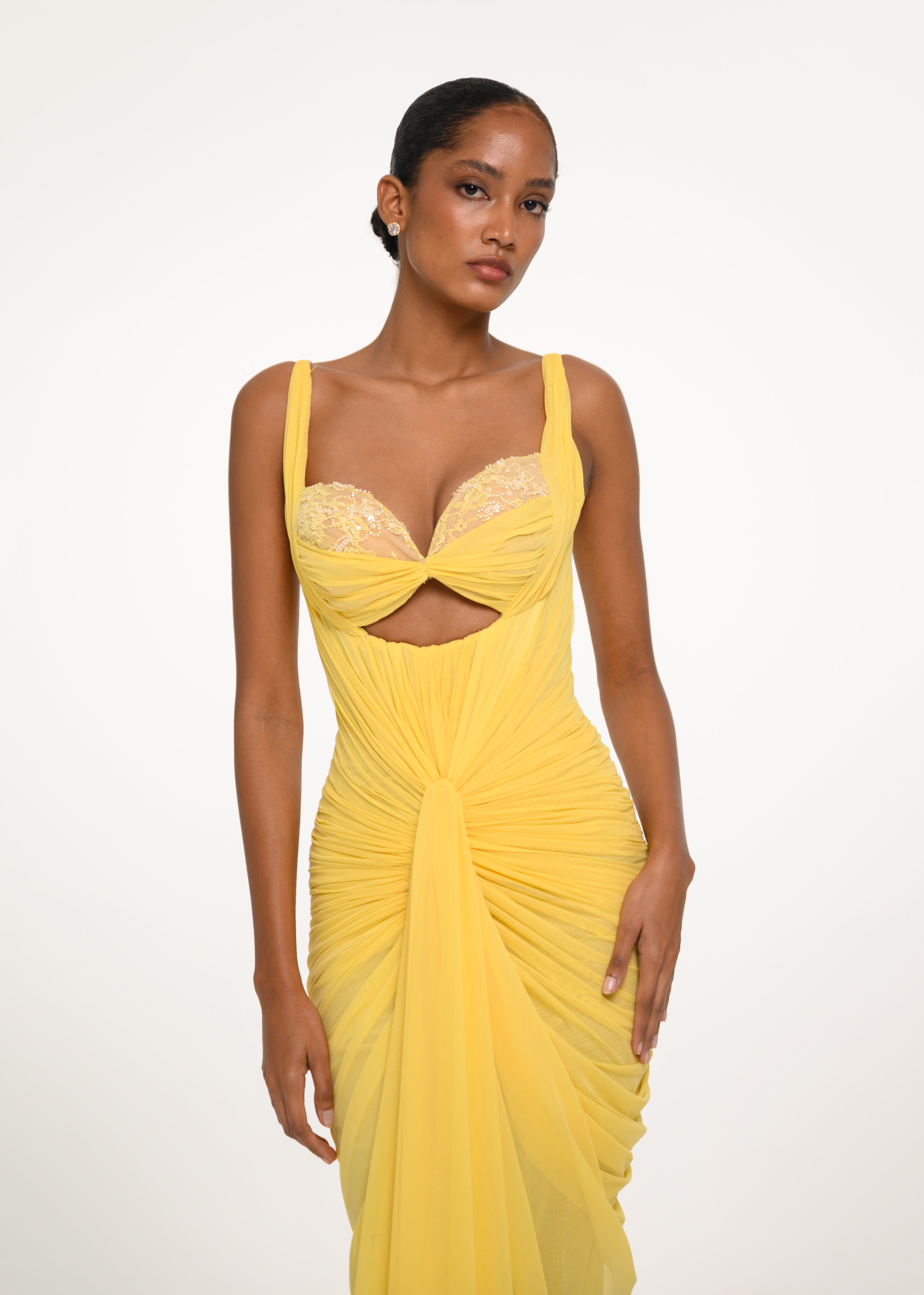 Yellow Draped Cutout Dress