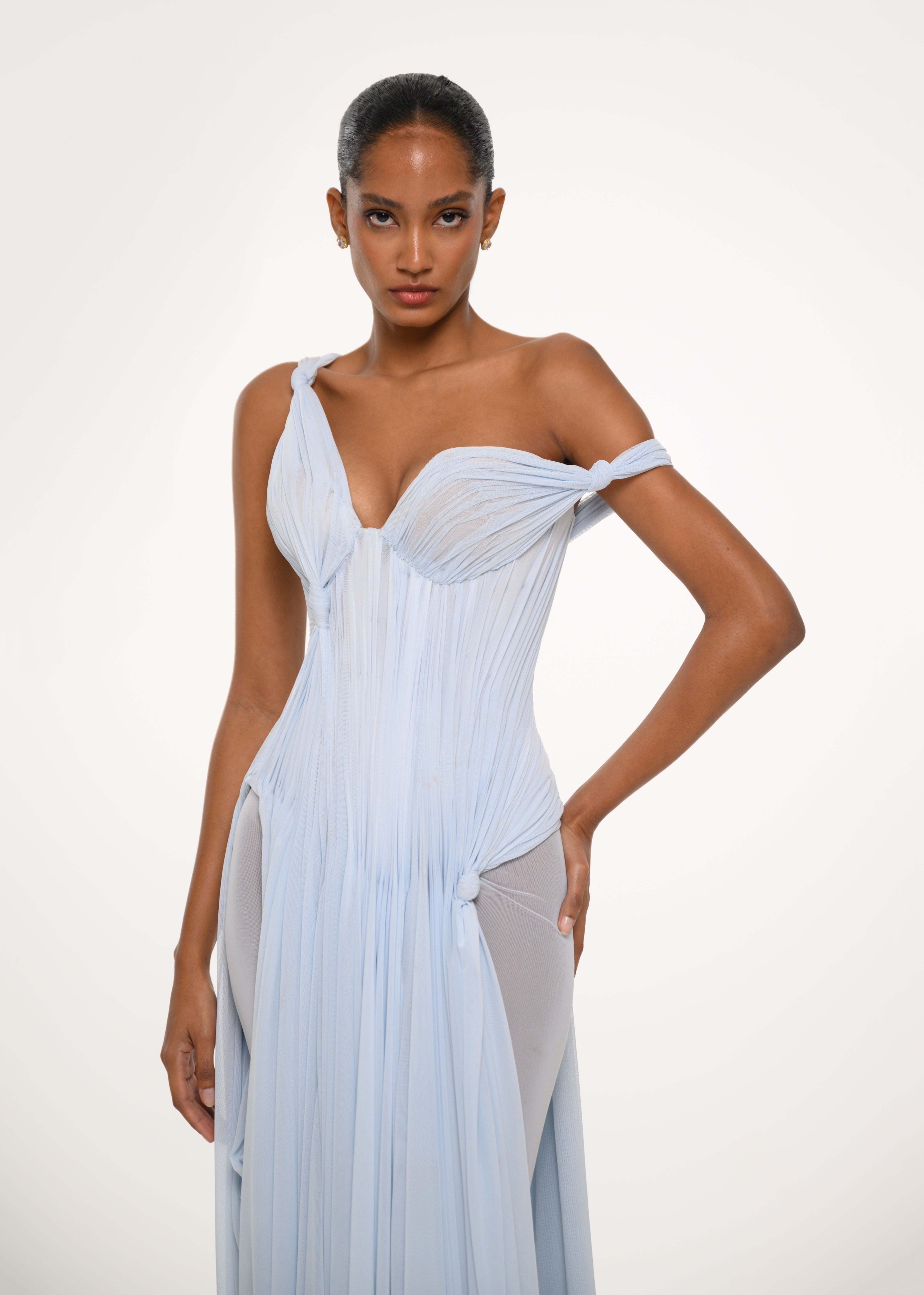 Ice Blue Draped Corset Gown