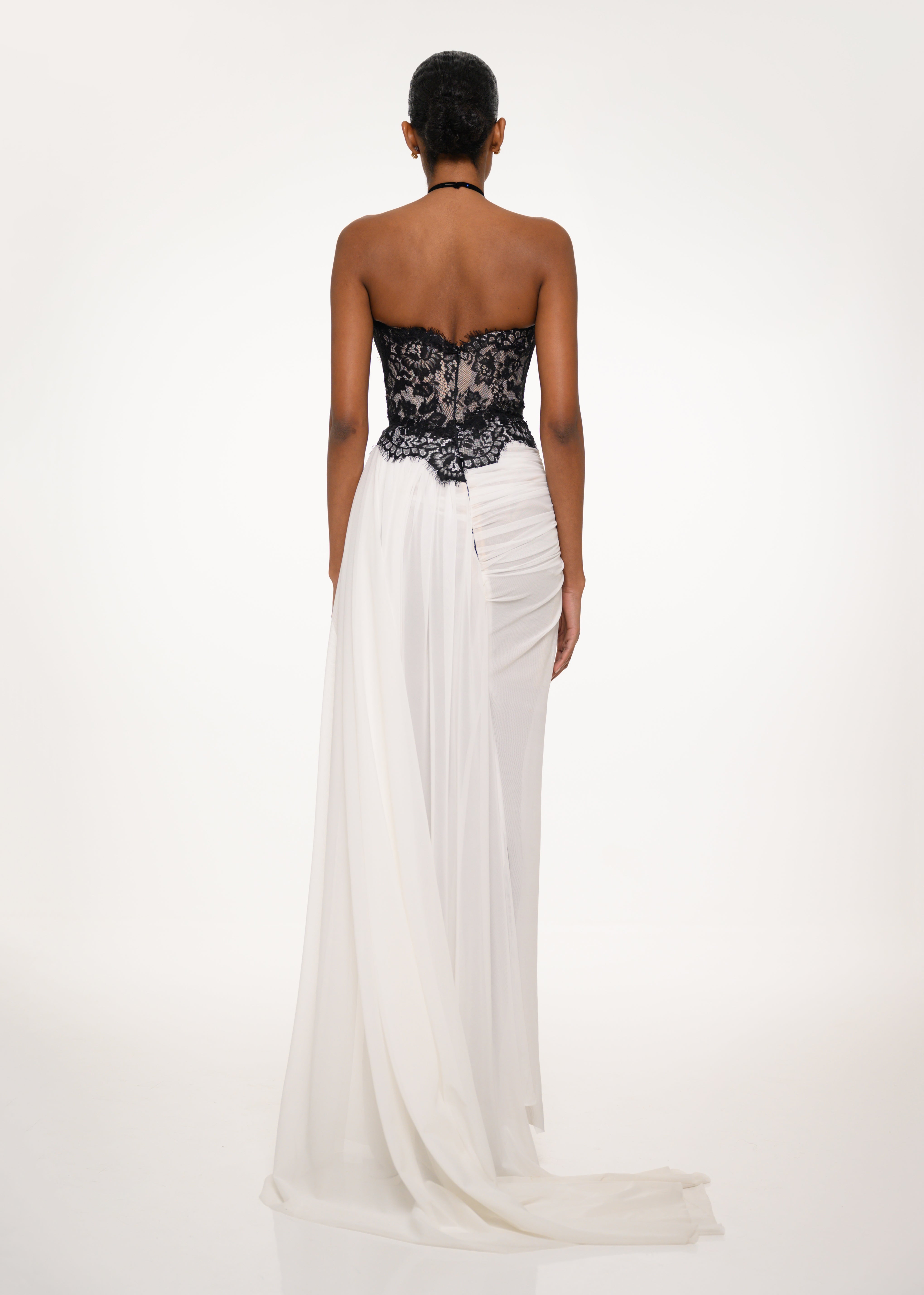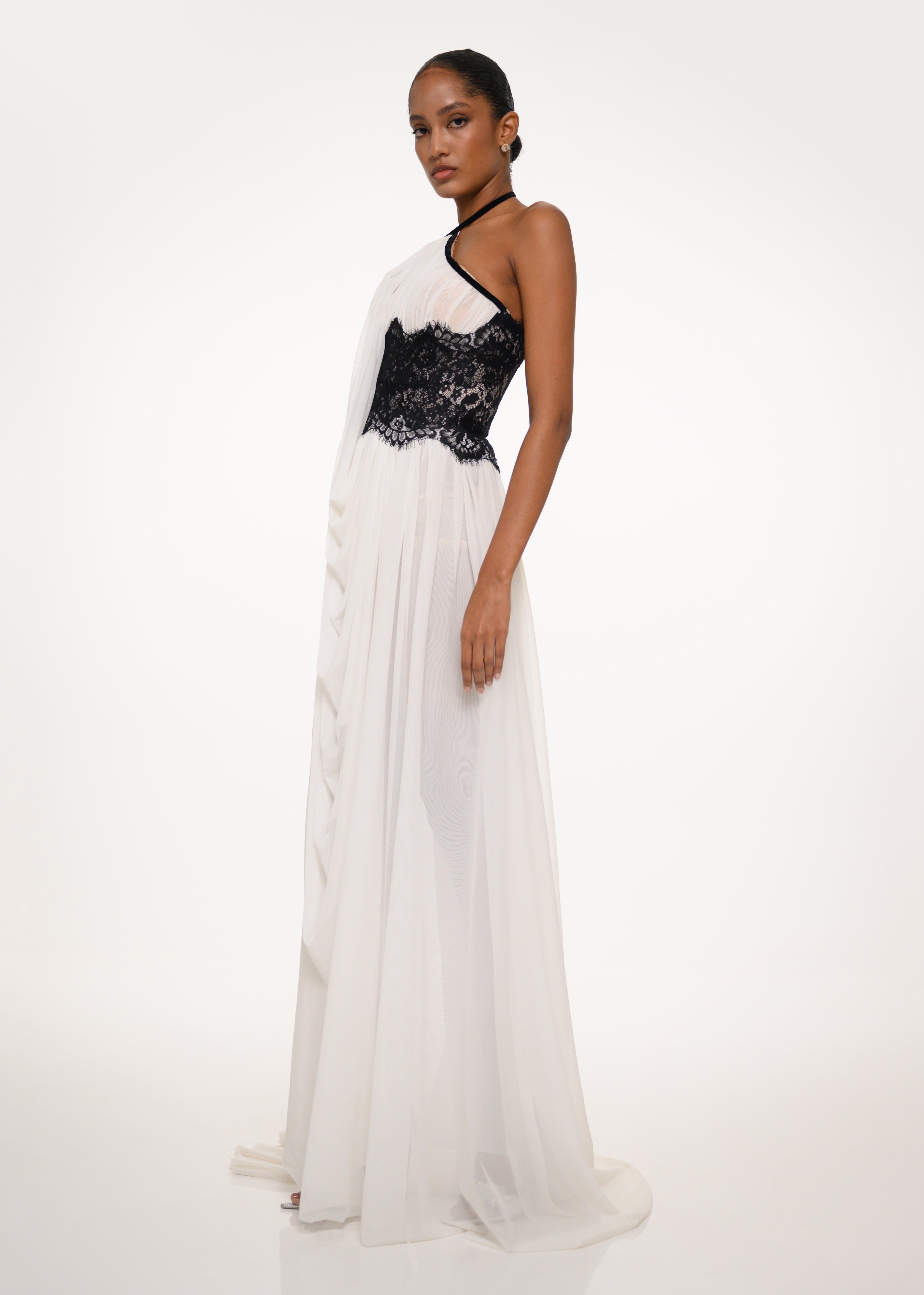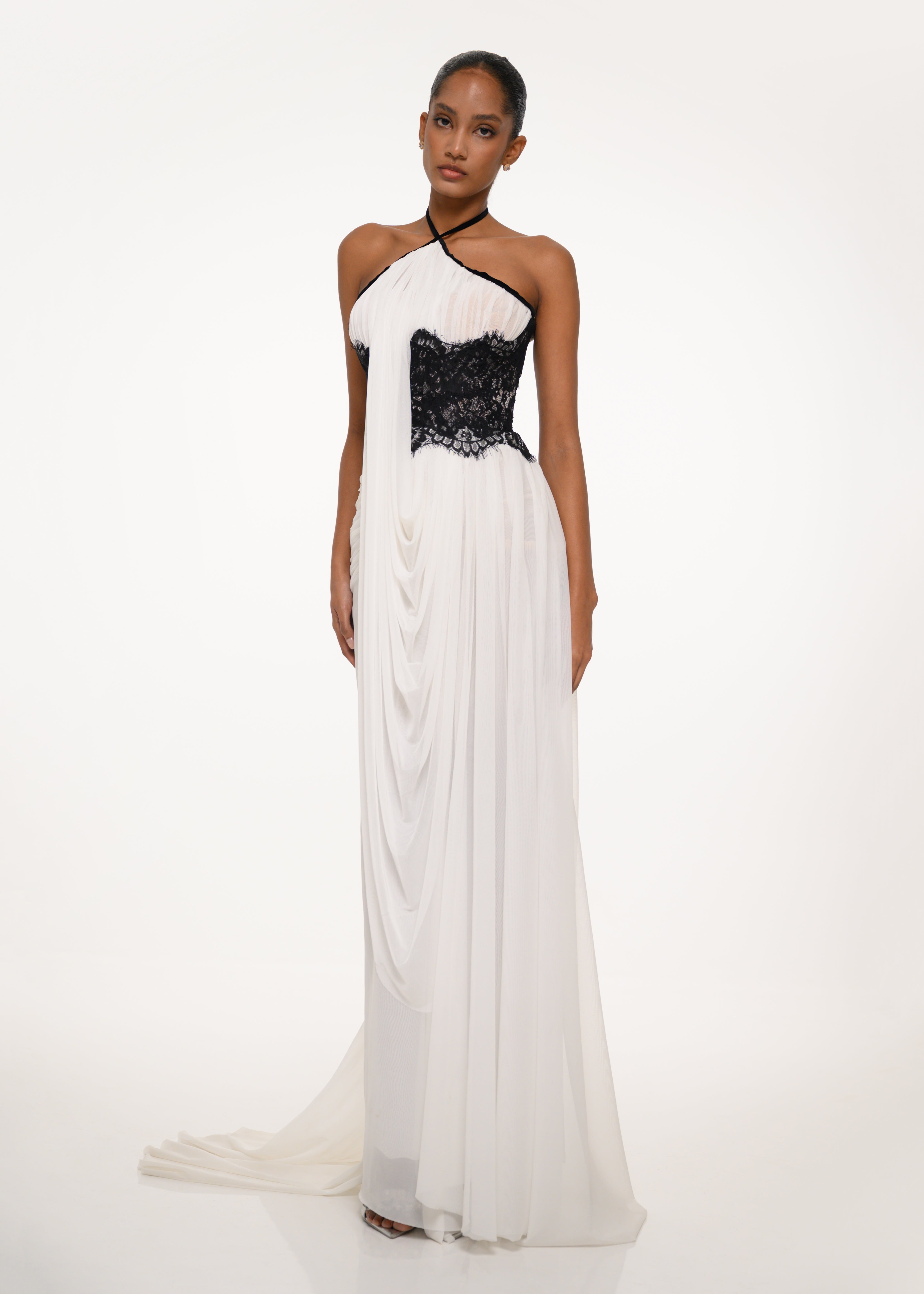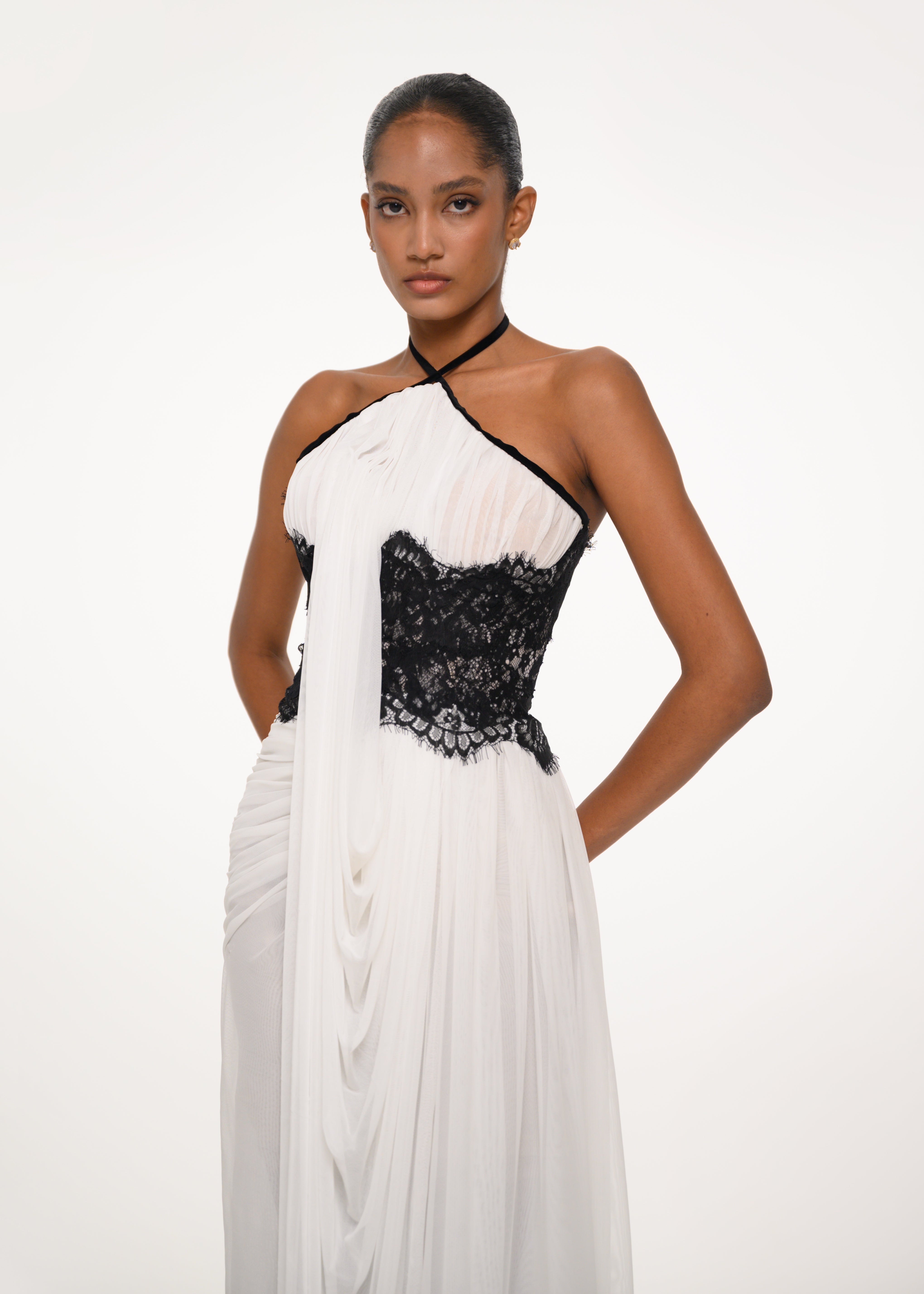White and Black Draped Dress
