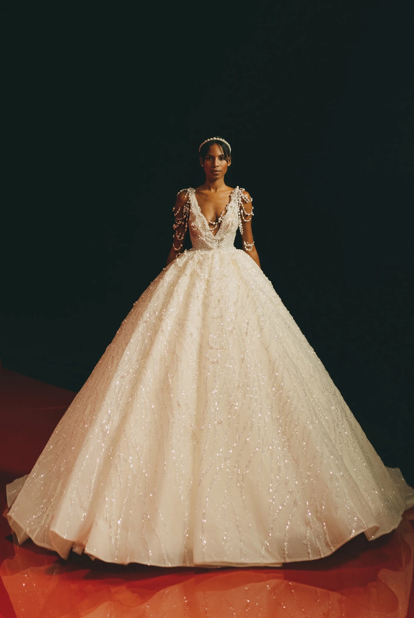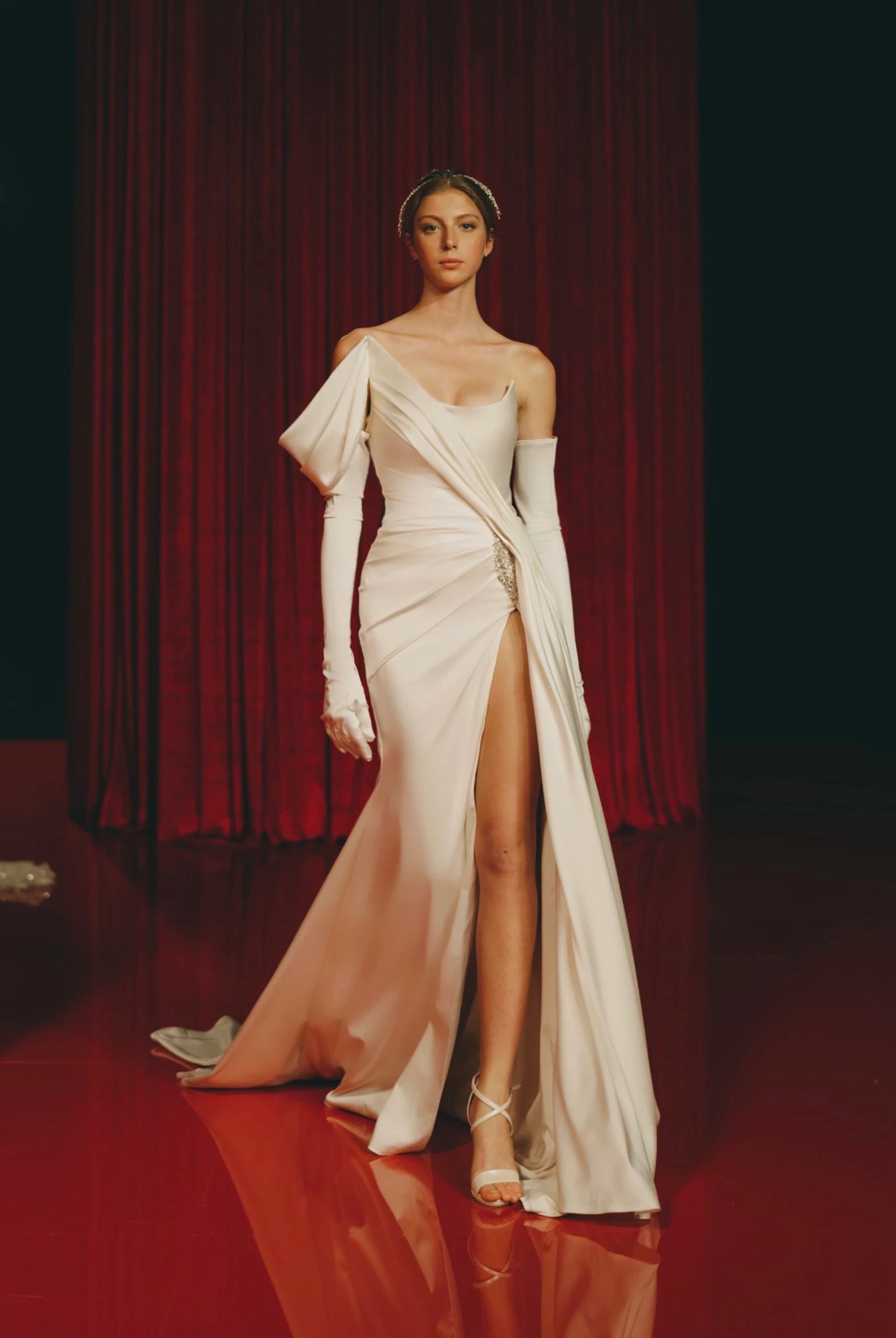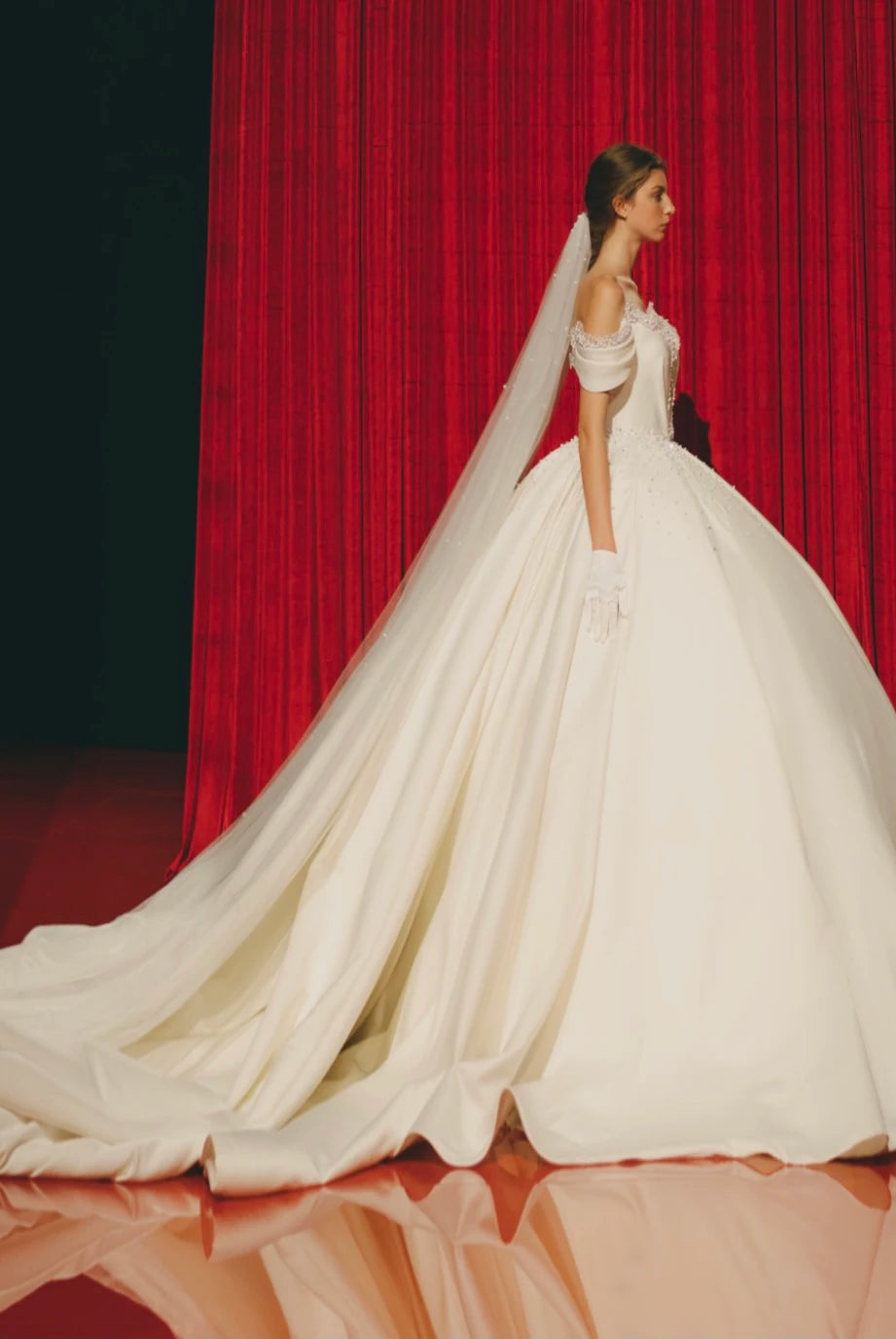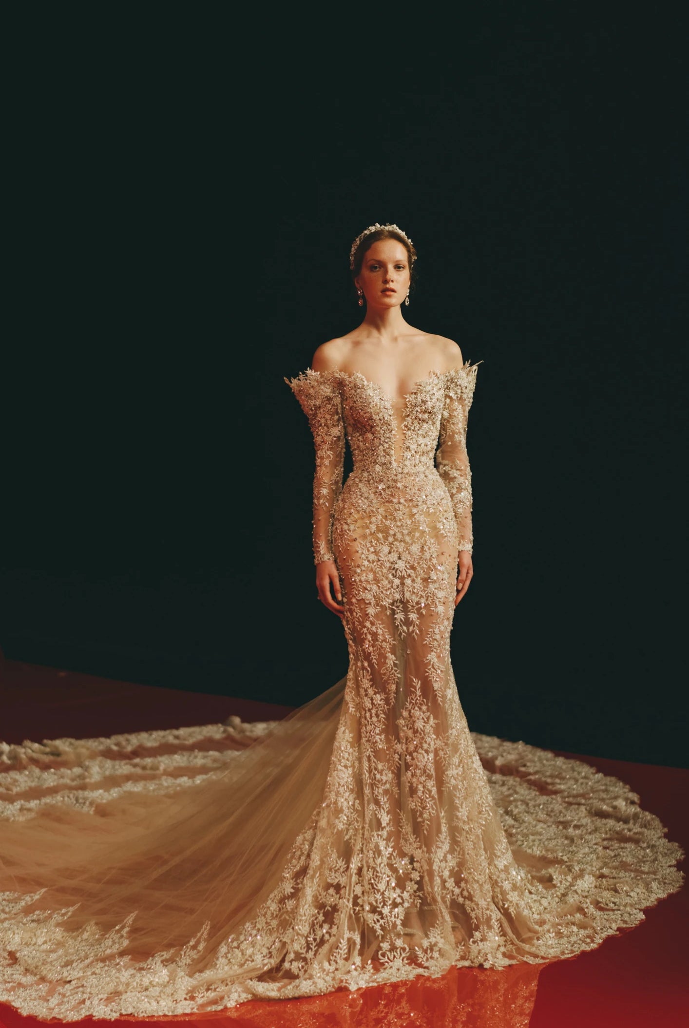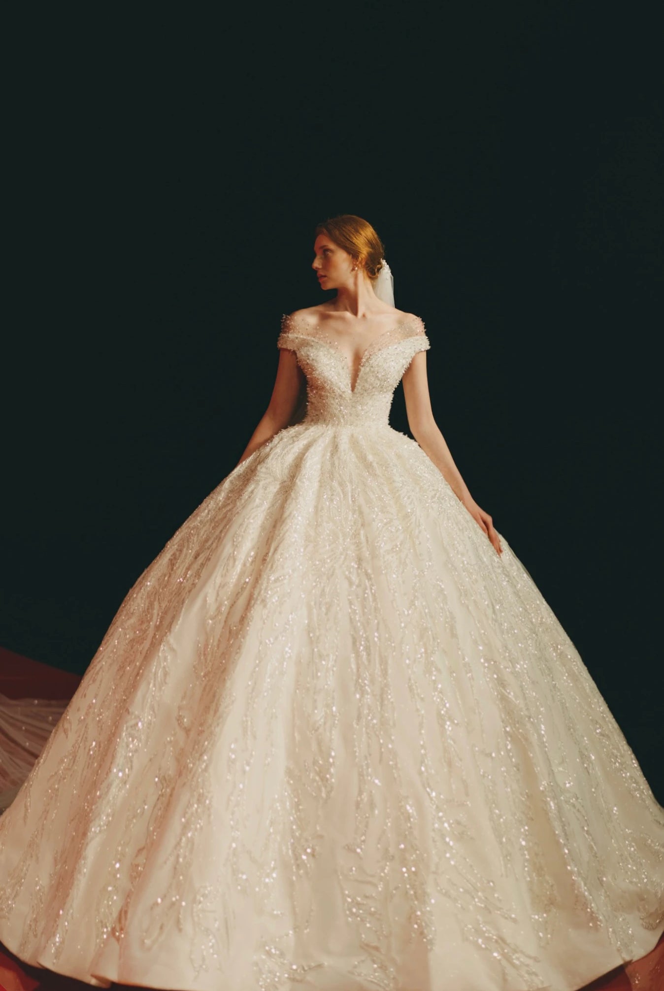 Experience the epitome of bridal elegance with our exclusive collection by Valdrin Sahiti, where every detail is crafted to perfection. Embrace timeless sophistication with off-the-shoulder designs that gracefully accentuate the neckline, or opt for long sleeve dresses that exude refinement and grace. Discover your perfect bridal ensemble and celebrate your wedding day in luxurious style.