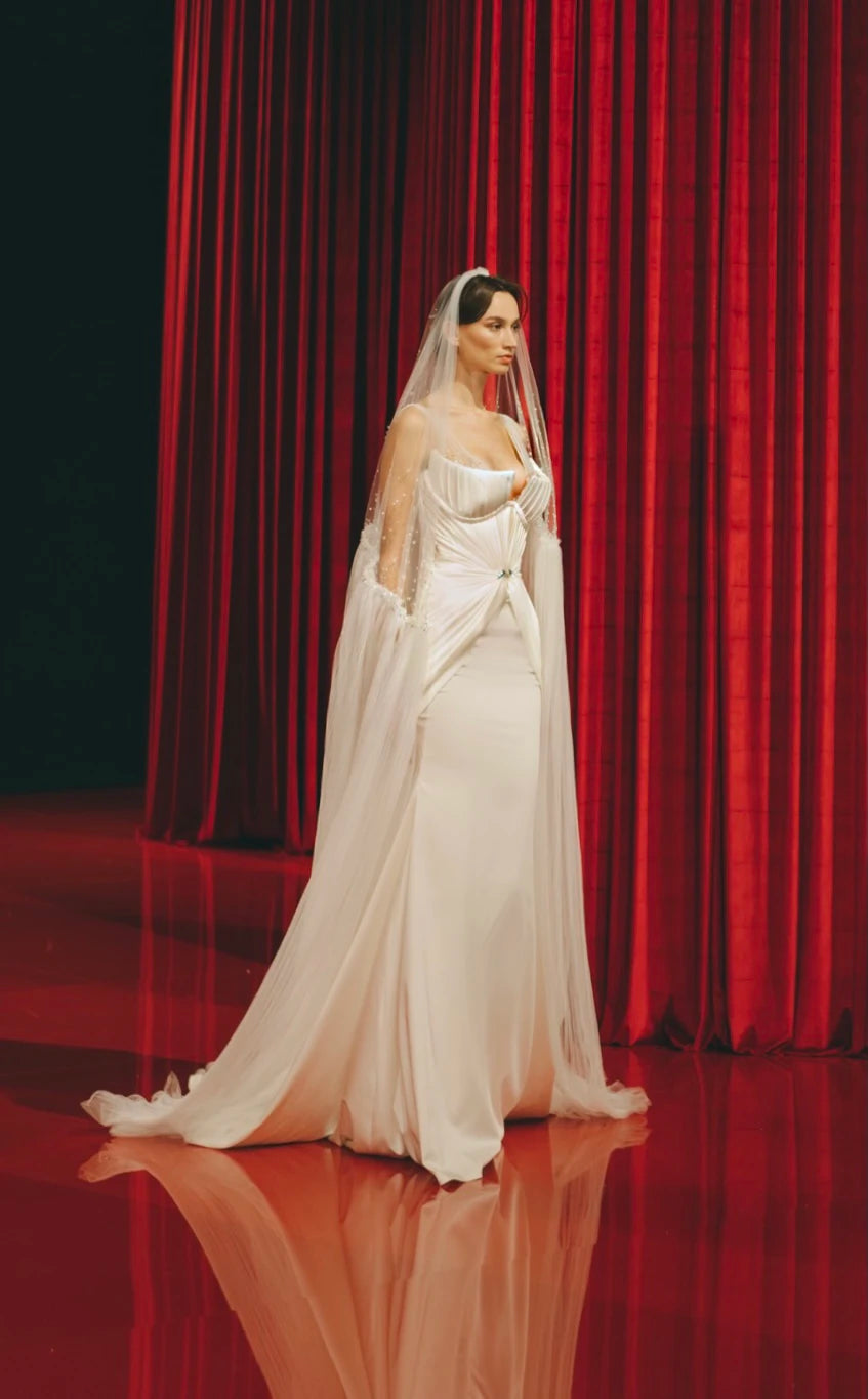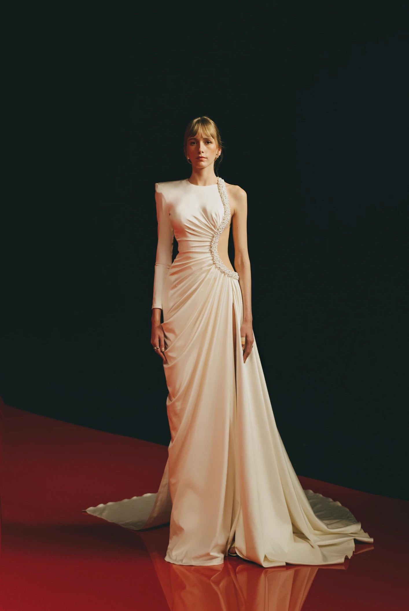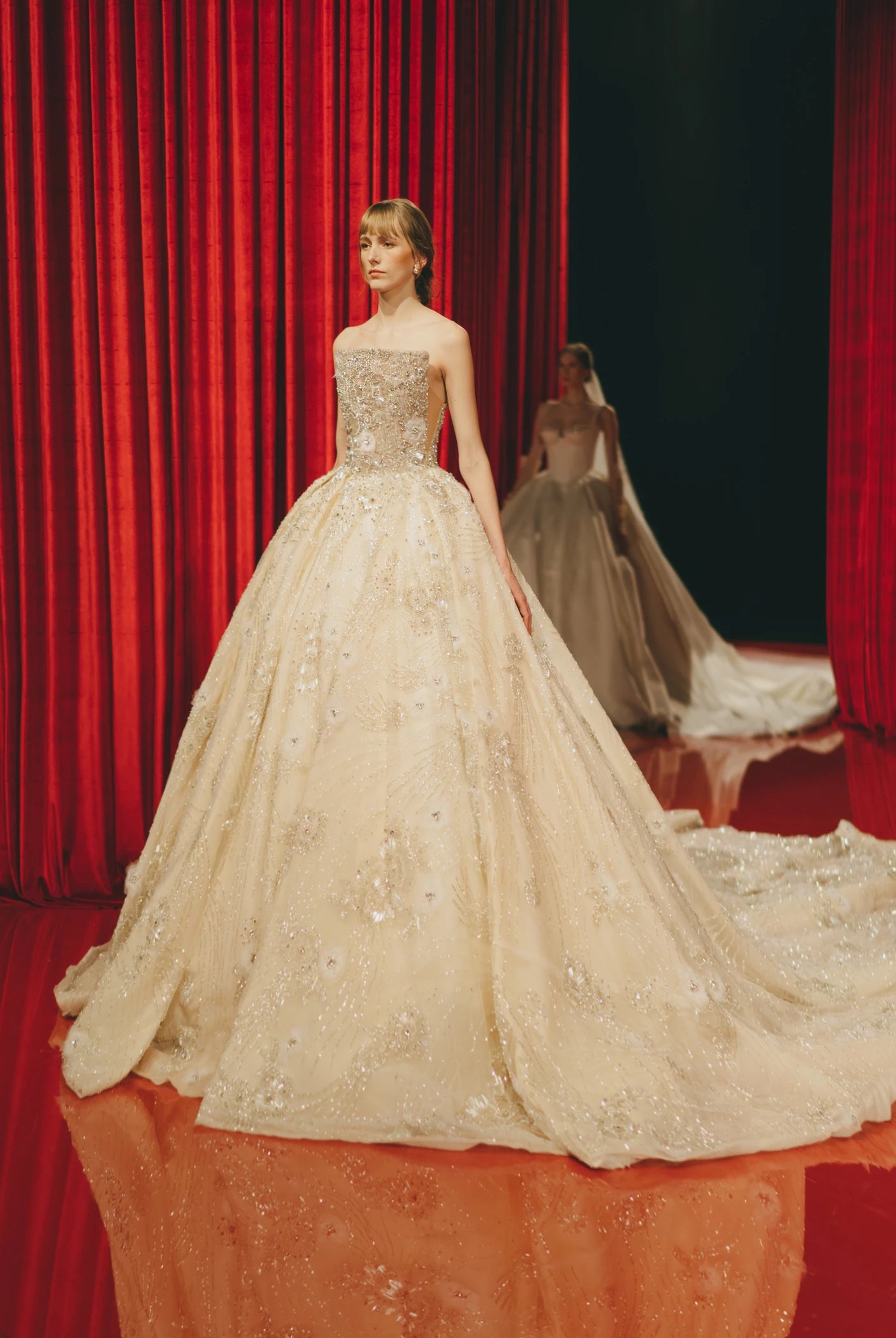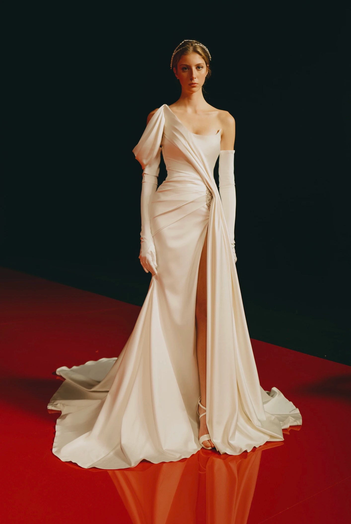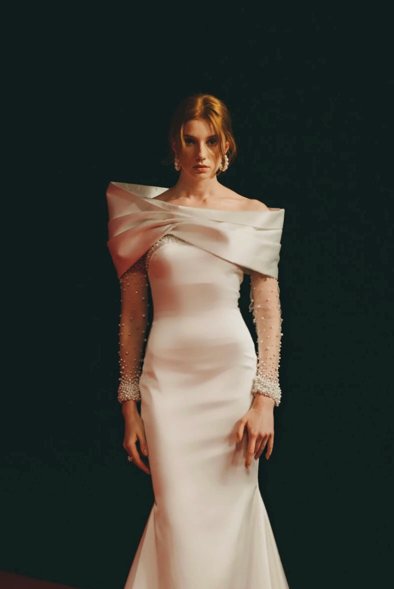 Experience the epitome of bridal elegance with our exclusive collection by Valdrin Sahiti, where every detail is crafted to perfection. Embrace timeless sophistication with off-the-shoulder designs that gracefully accentuate the neckline, or opt for long sleeve dresses that exude refinement and grace. Discover your perfect bridal ensemble and celebrate your wedding day in luxurious style.