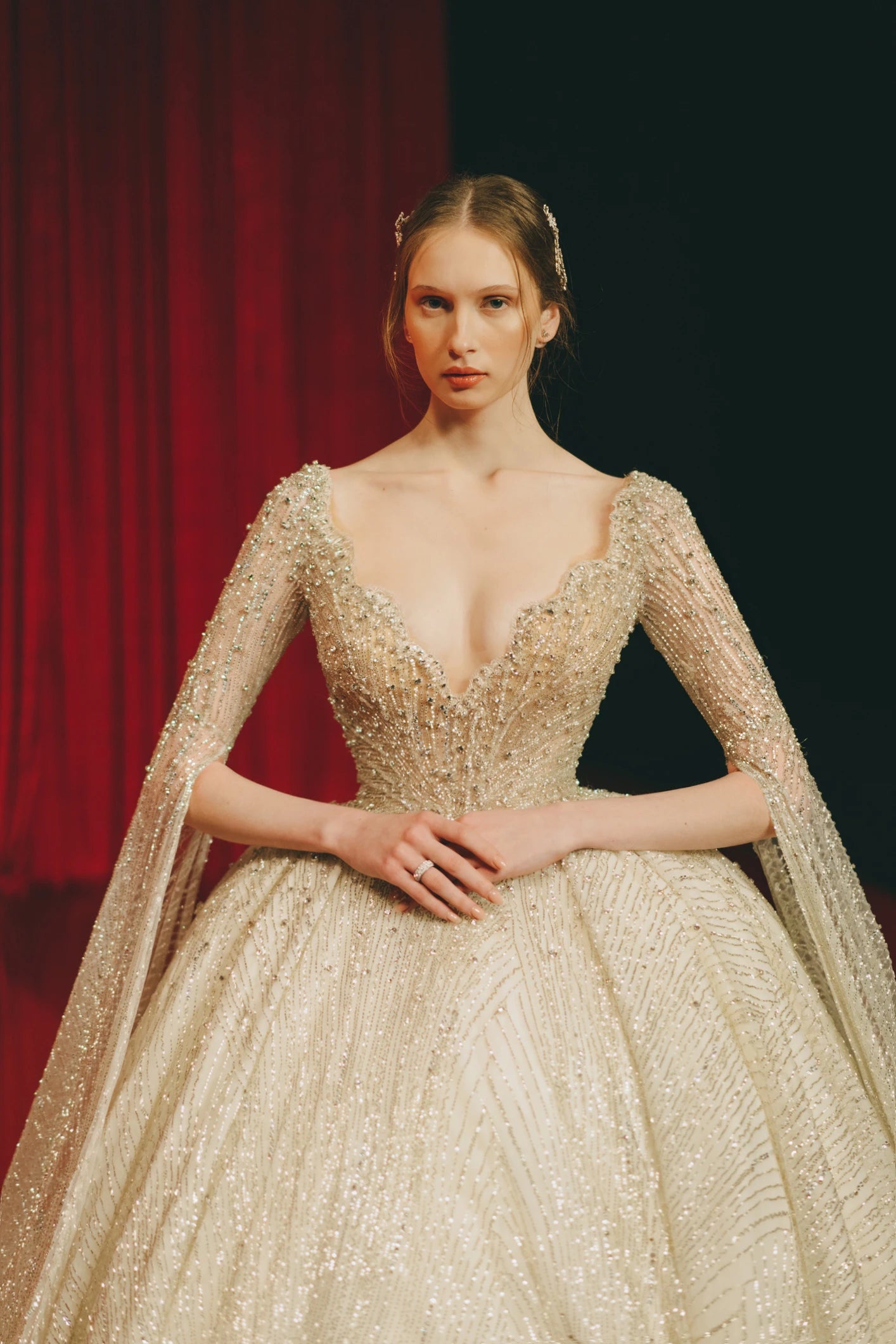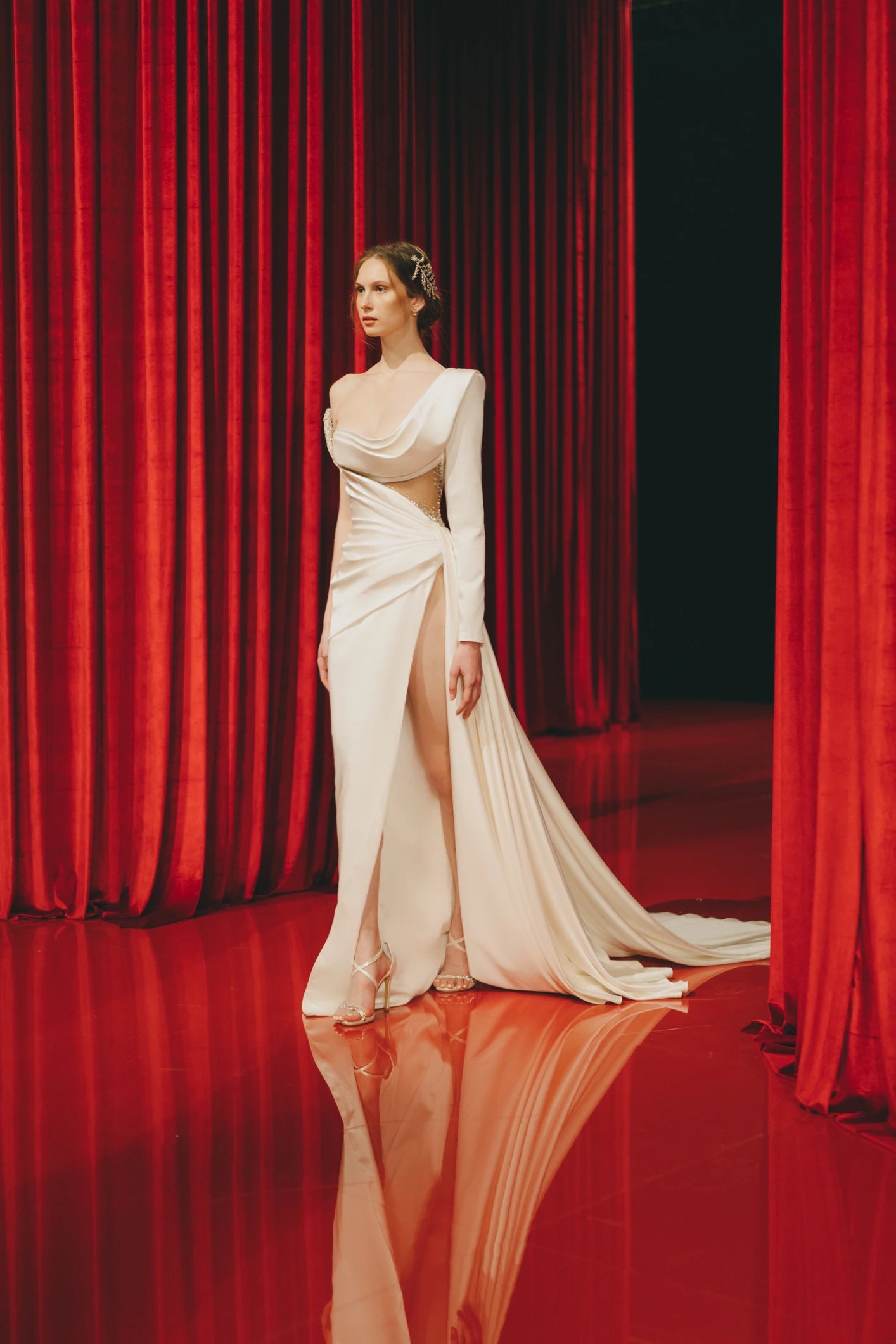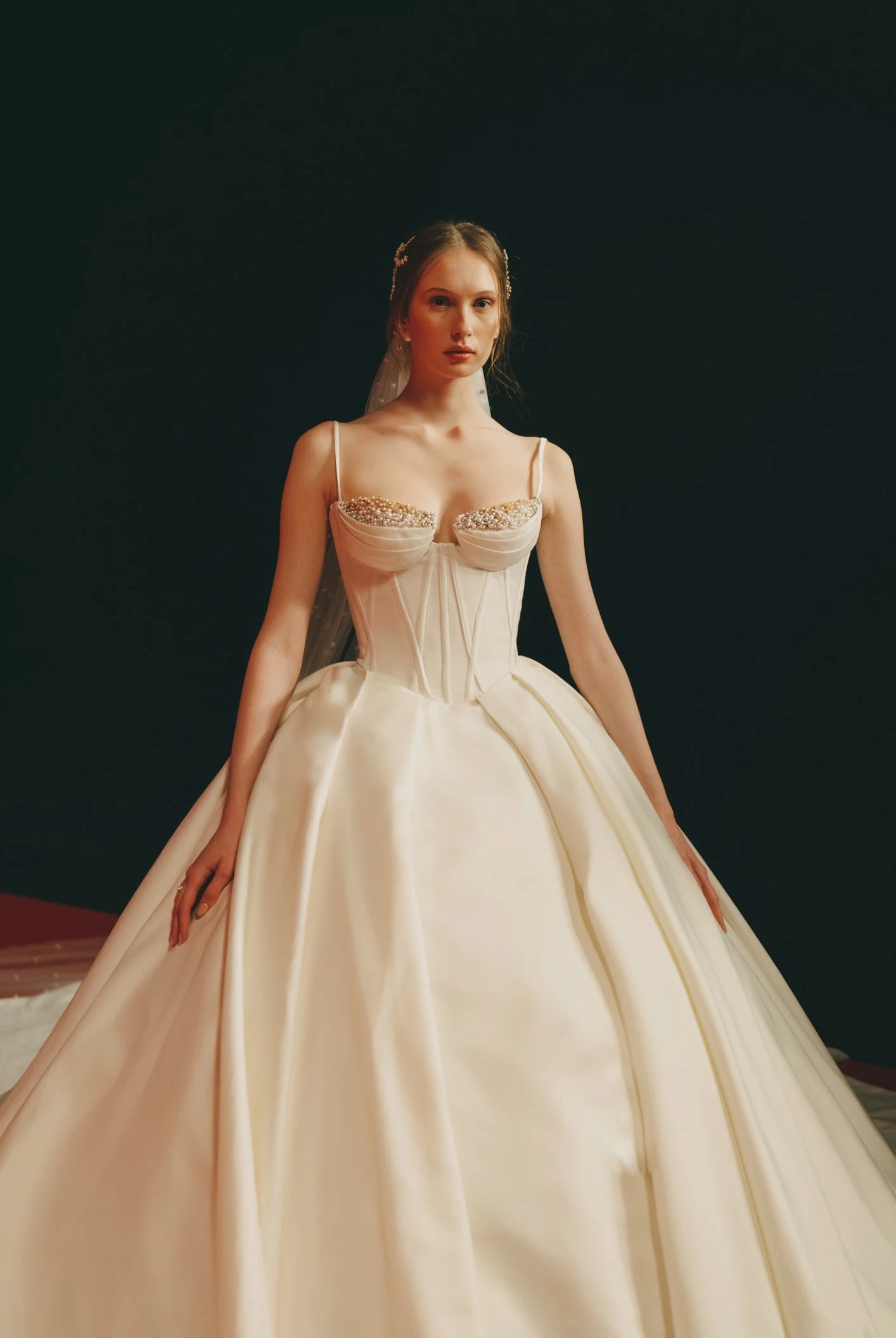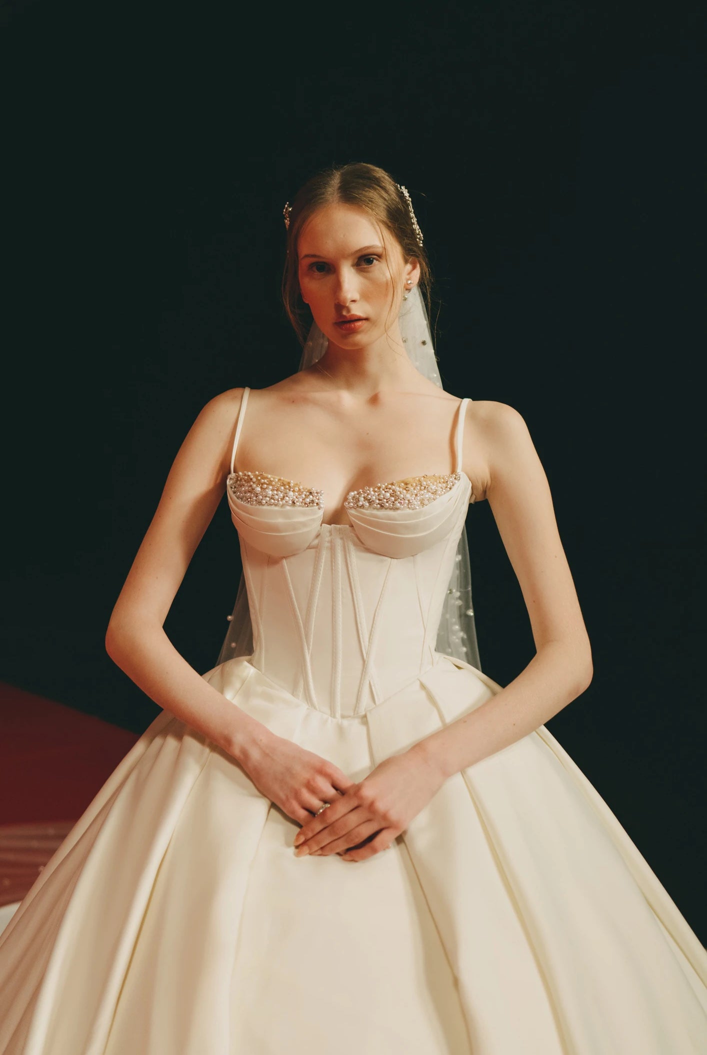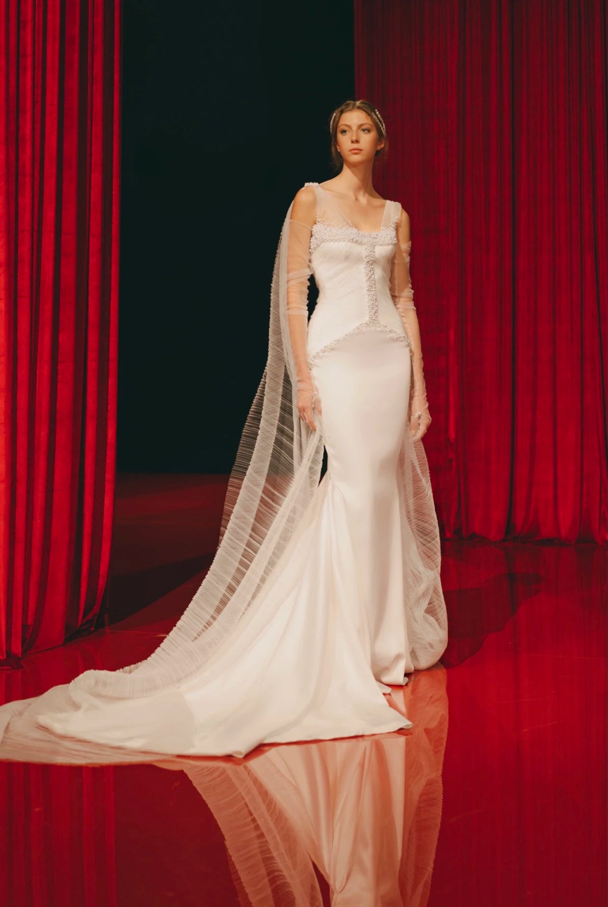 Experience the epitome of bridal elegance with our exclusive collection by Valdrin Sahiti, where every detail is crafted to perfection. Embrace timeless sophistication with off-the-shoulder designs that gracefully accentuate the neckline, or opt for long sleeve dresses that exude refinement and grace. Discover your perfect bridal ensemble and celebrate your wedding day in luxurious style.