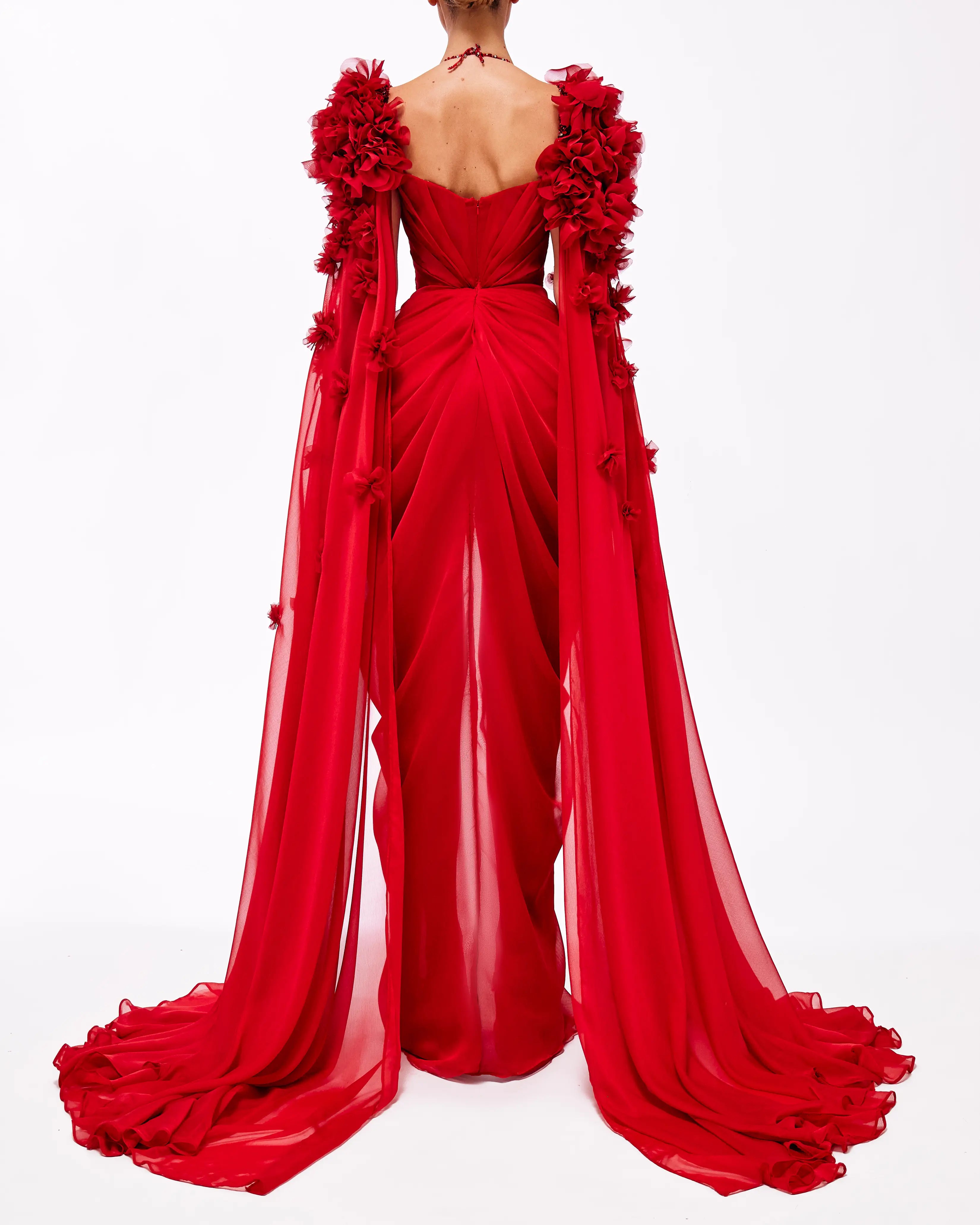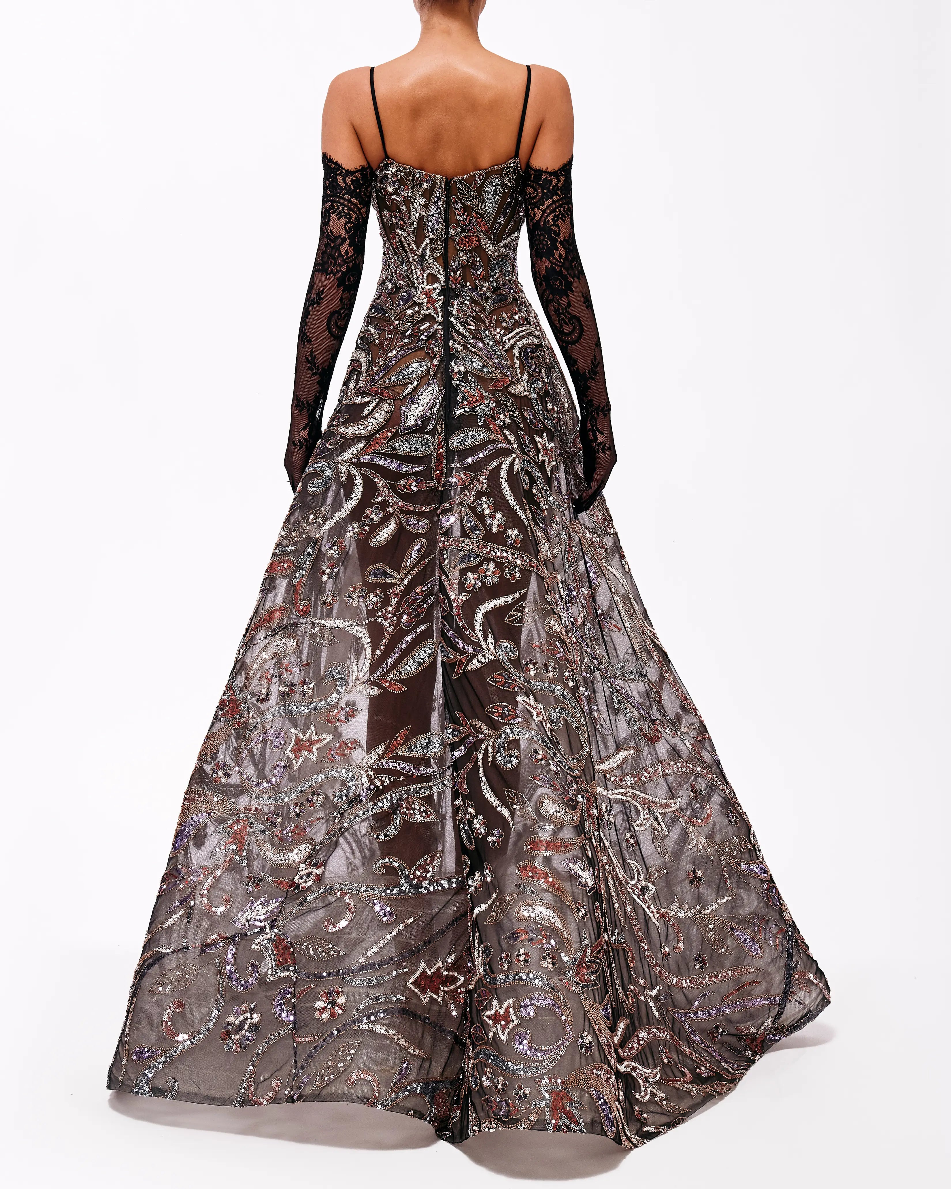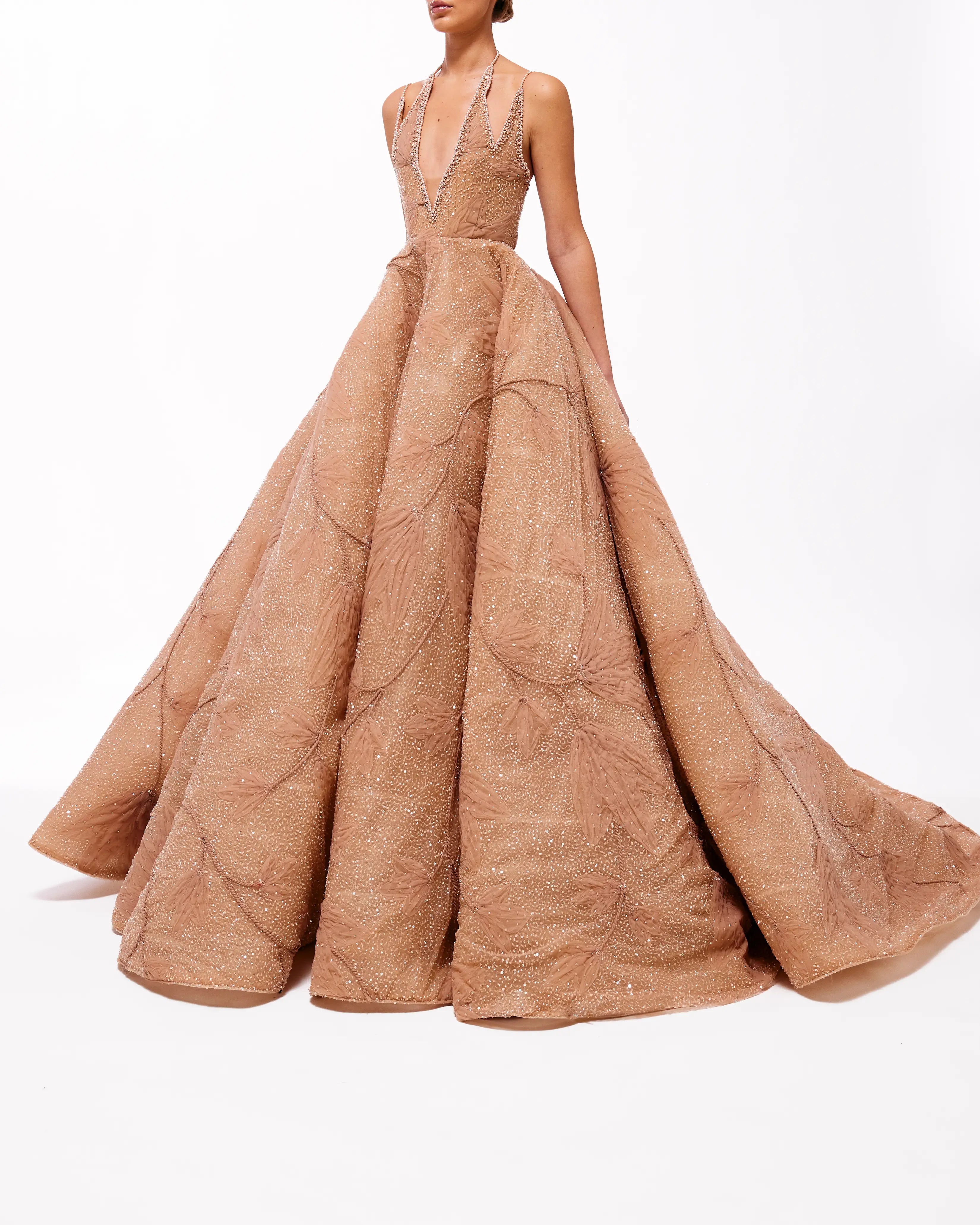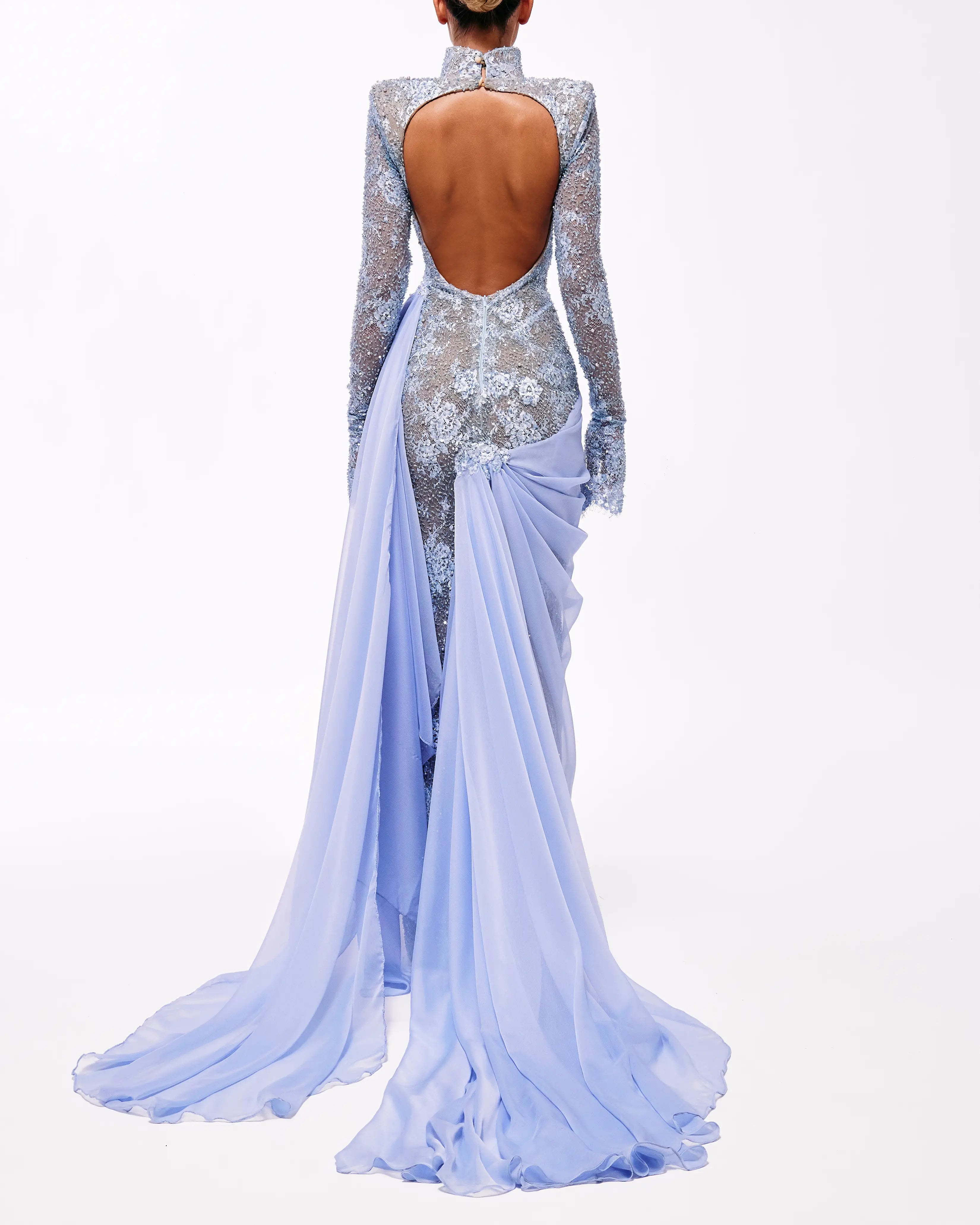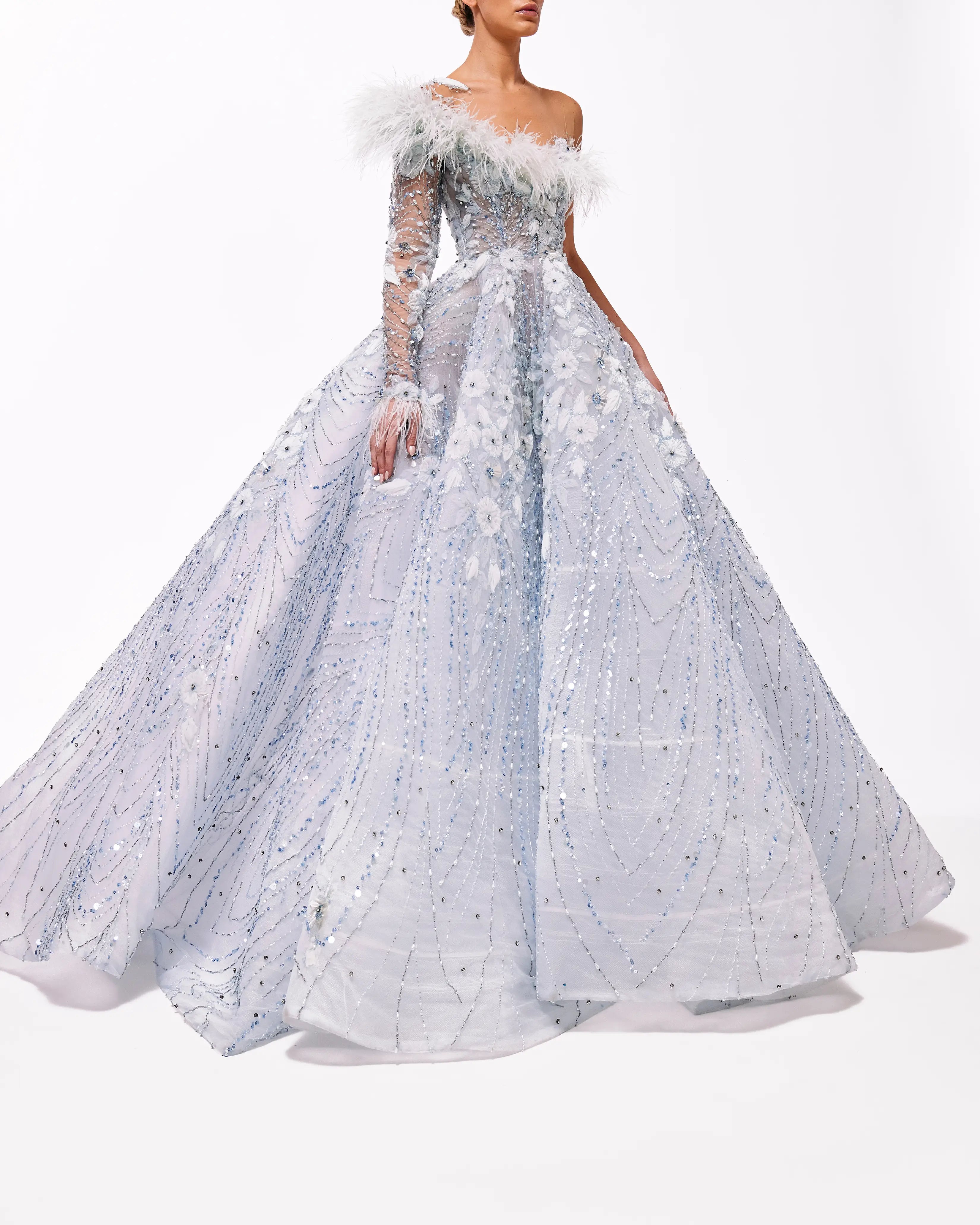 A collection full of life, Haute Allure brings your imagination to reality. With a vast selection in hues, these gowns provide ample options for extravagant events. This collection is elegantly maximalistic, with the floral lace material, cape aspect, and other unique features. Enter a world of colorful drama through Valdrin Sahiti.