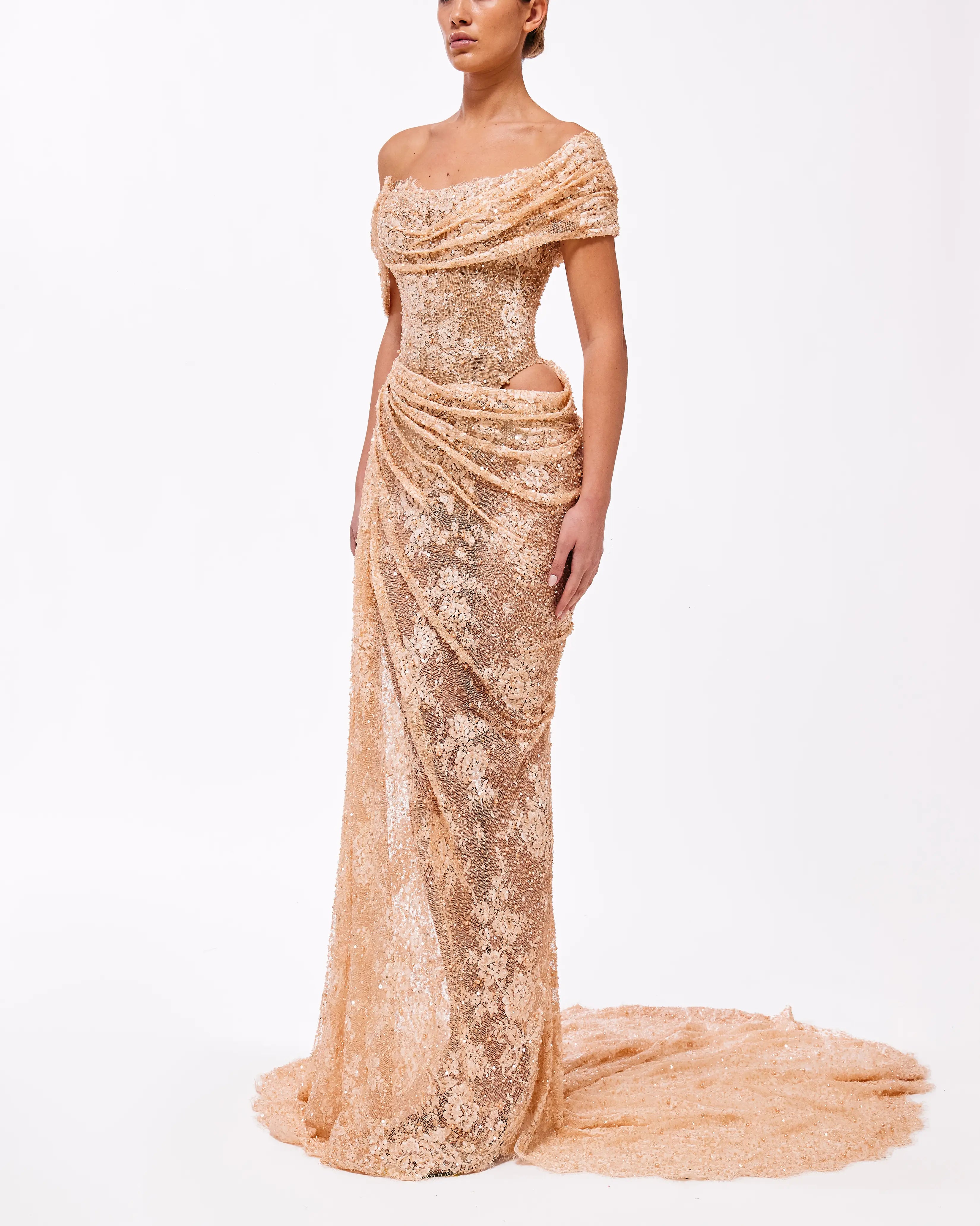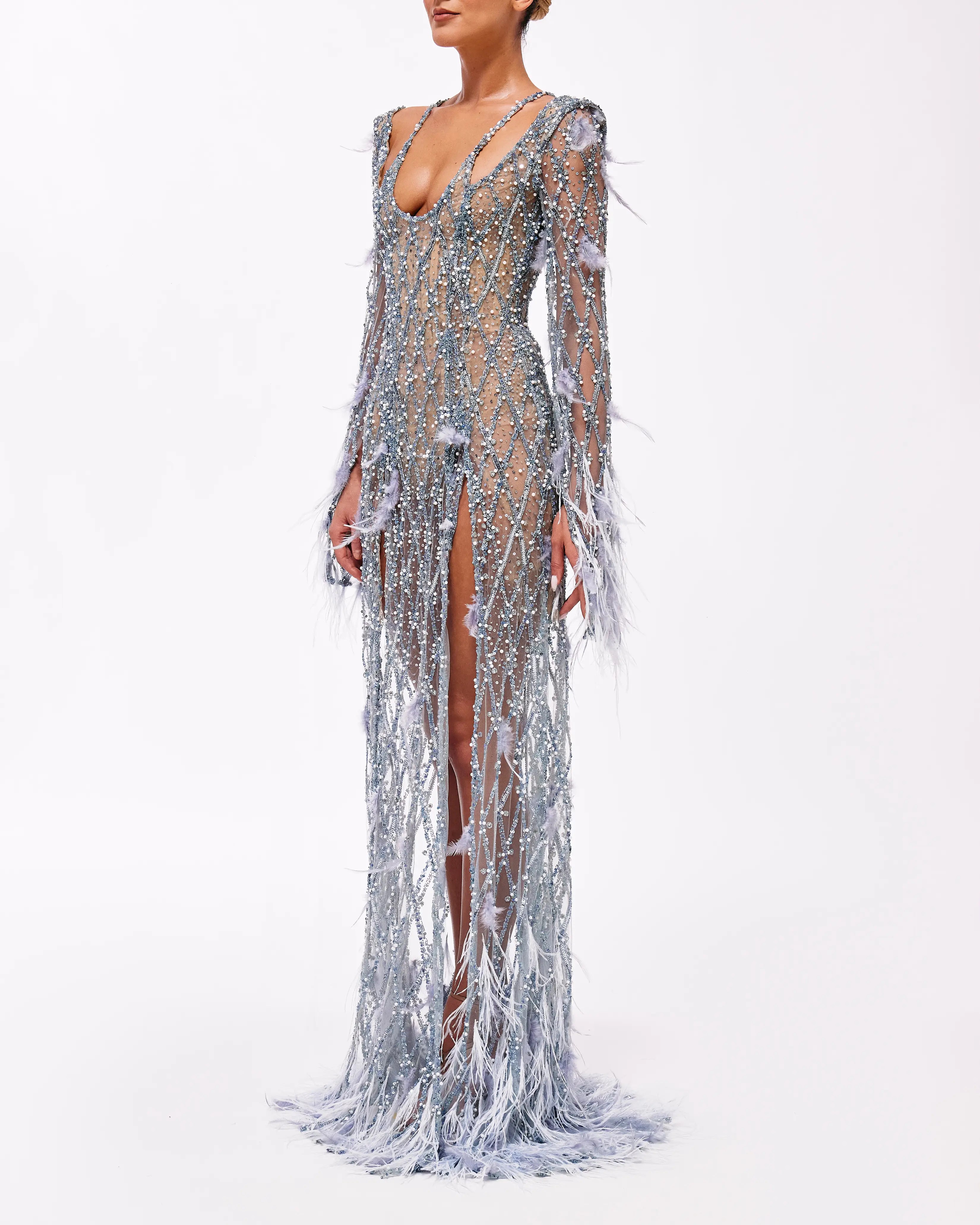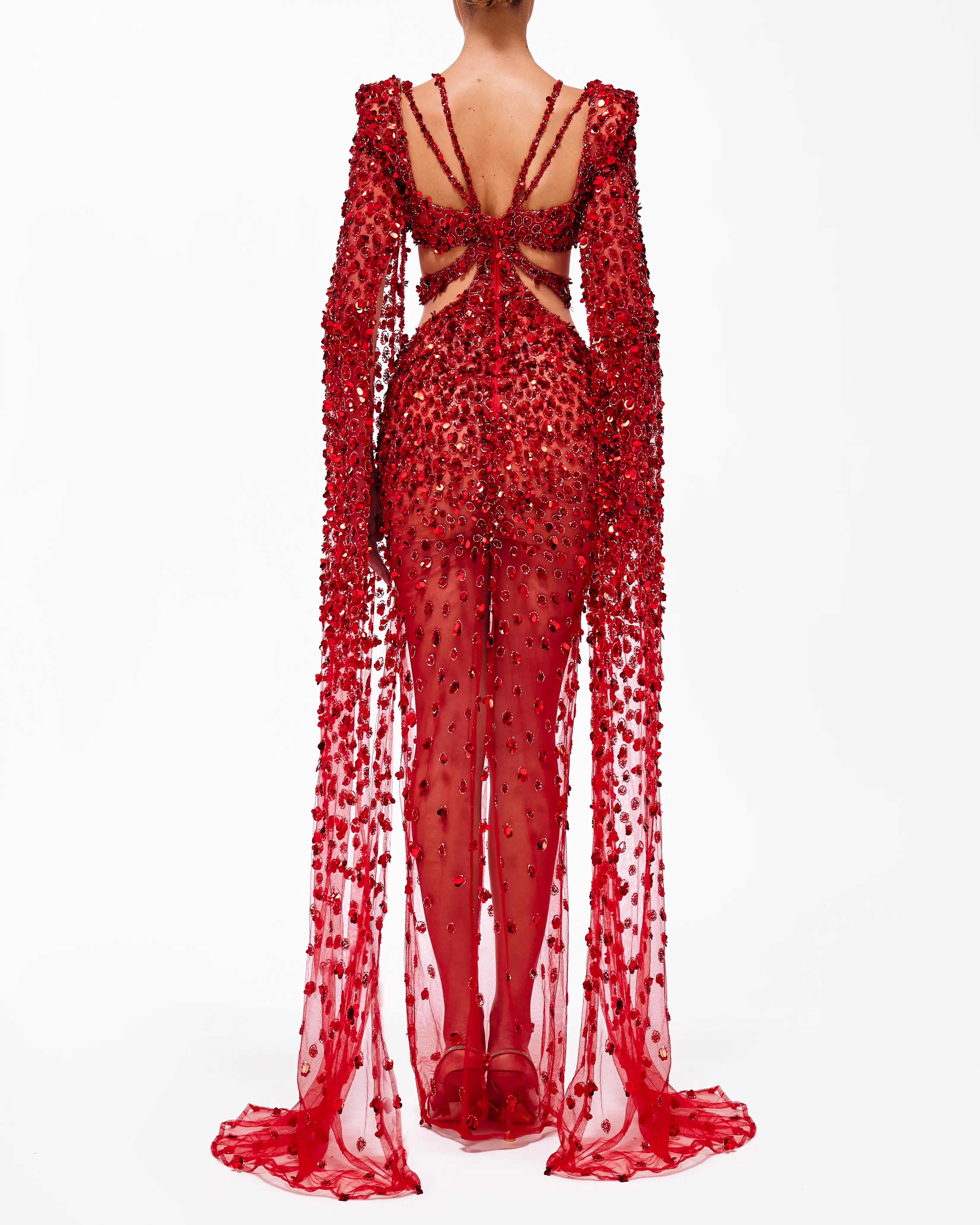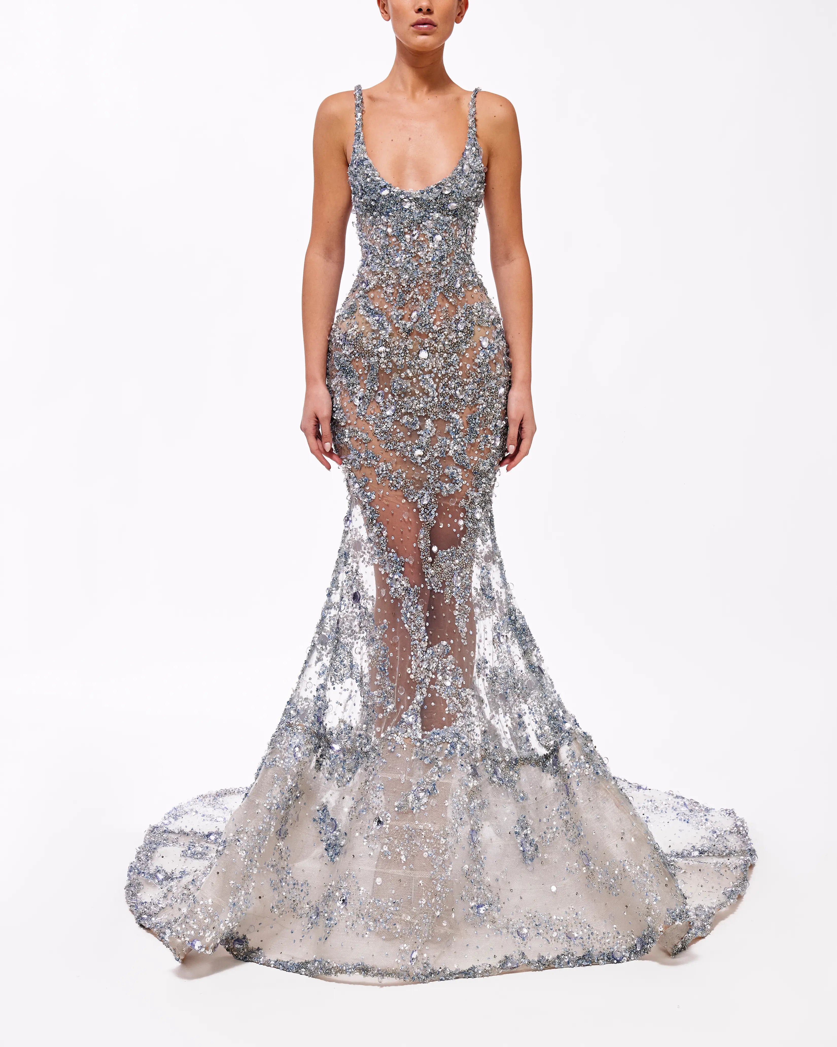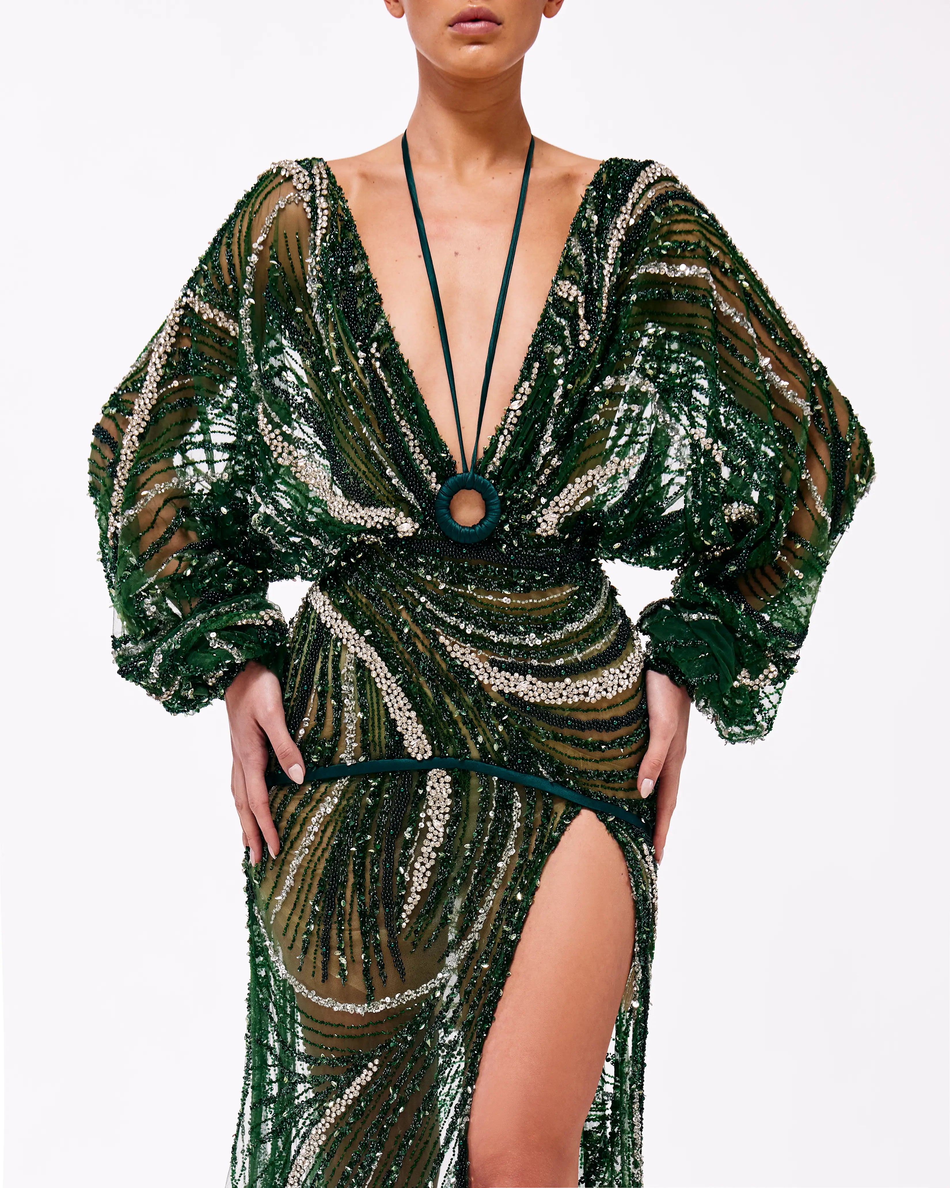 A collection full of life, Haute Allure brings your imagination to reality. With a vast selection in hues, these gowns provide ample options for extravagant events. This collection is elegantly maximalistic, with the floral lace material, cape aspect, and other unique features. Enter a world of colorful drama through Valdrin Sahiti.