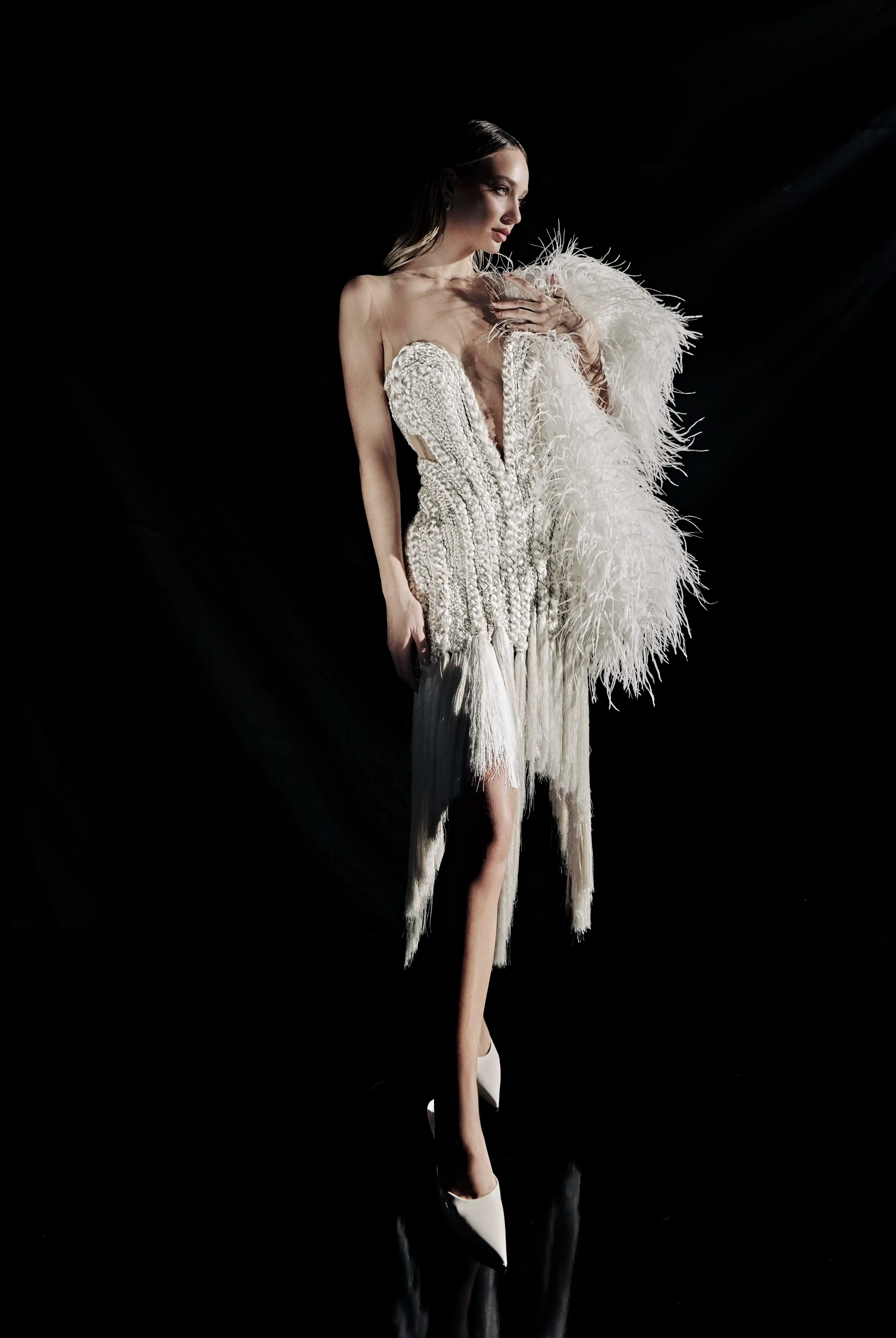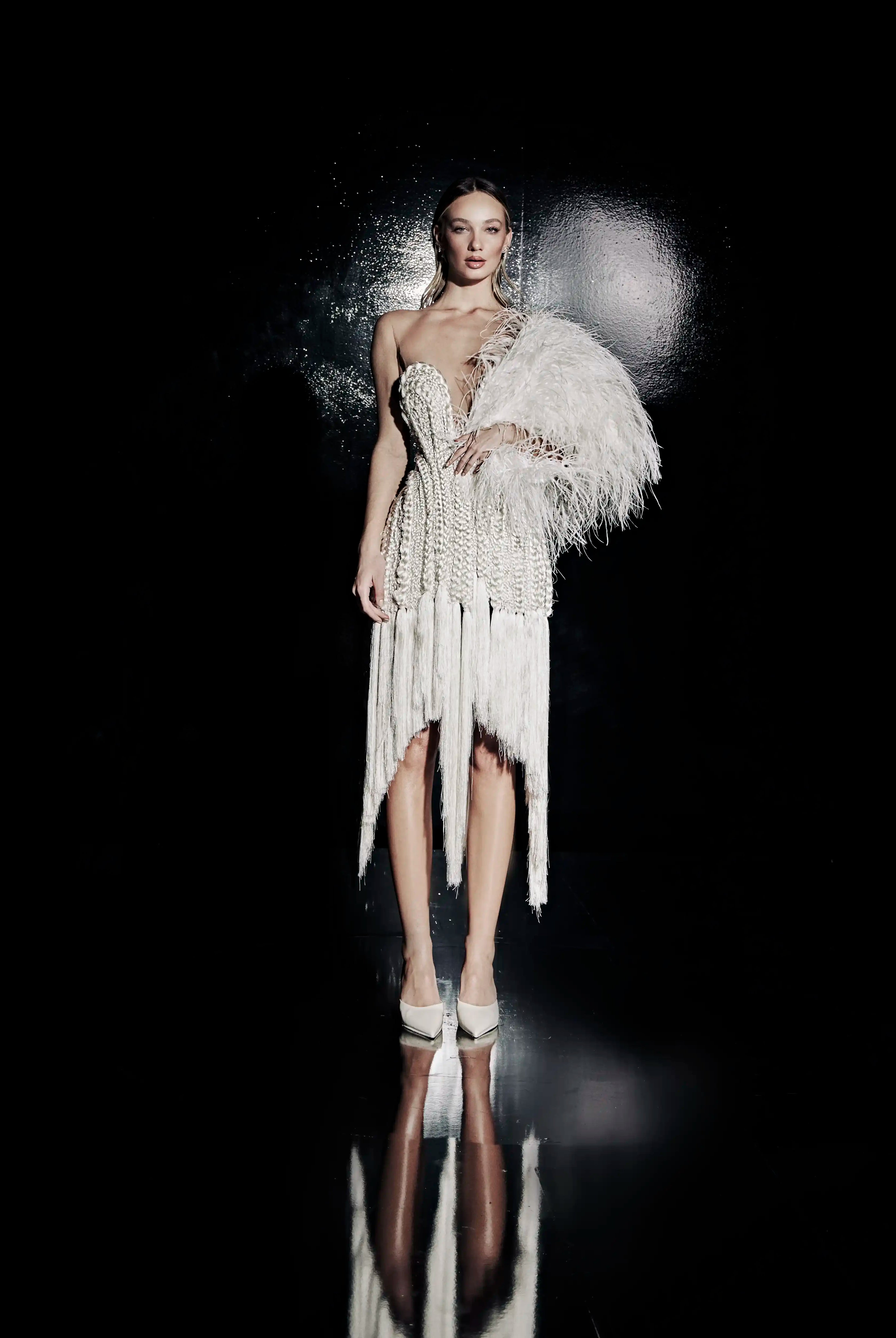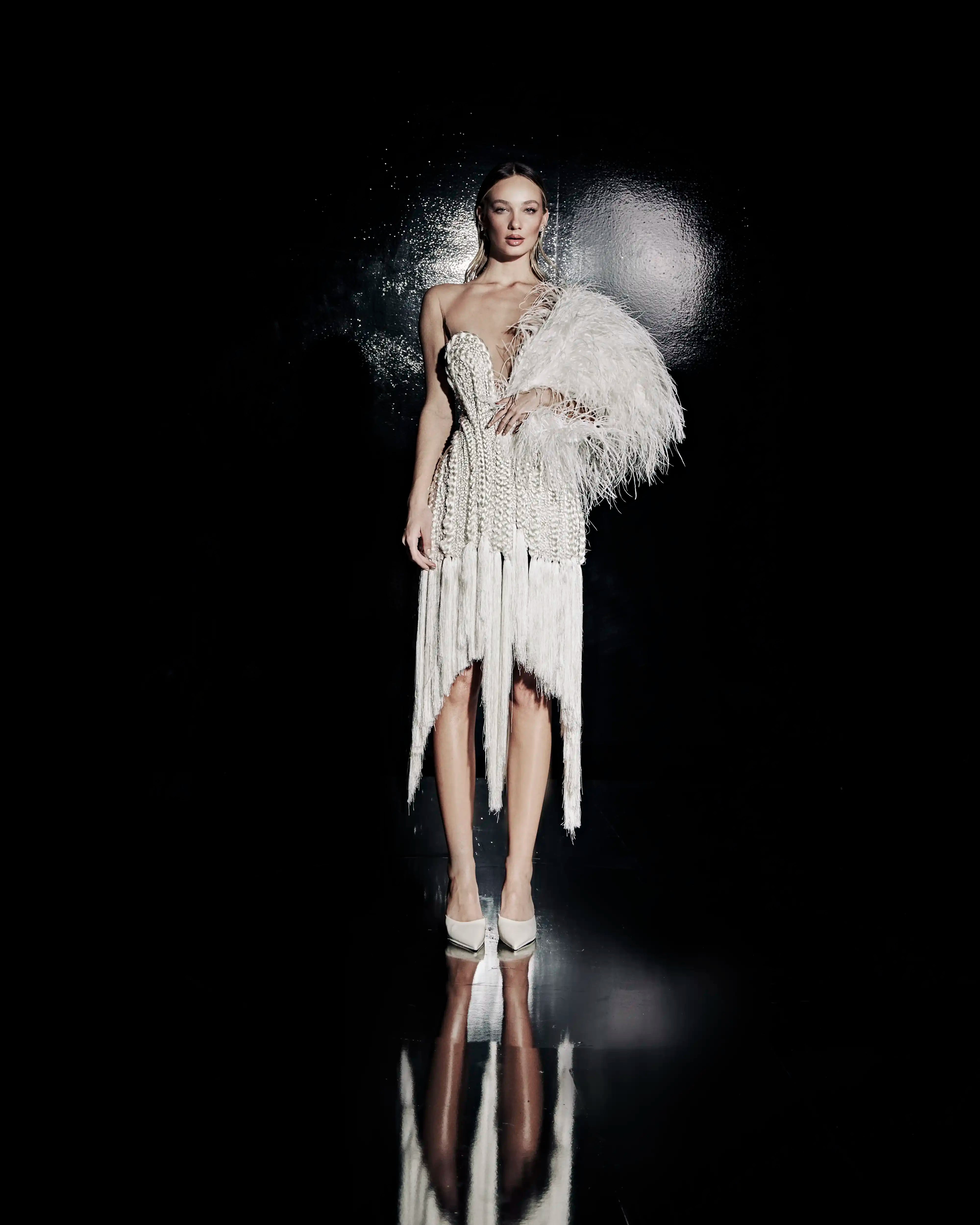 The Vortex Collection introduces the art of mystique. It blends rich, deep hues with timeless sophistication. While the dresses maintain a classic appeal, certain features such as feathers, rhinestones. and accents of fringe, infuse the collection with added drama and appeal. Explore the depths of the Vortex to discover your match.