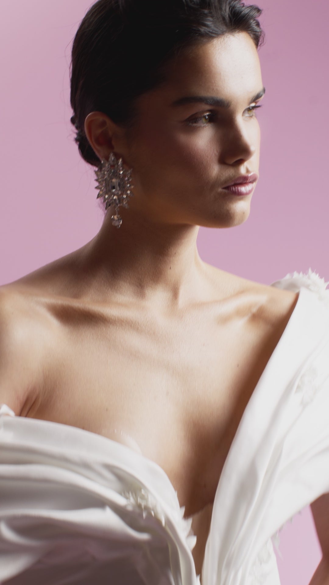 This Bridal RTW '24 - 034 dress features an elegant, form-fitting silhouette crafted from delicate lace fabric. The dress highlights intricate floral lace patterns that extend throughout the bodice and softly cascade down the skirt, creating a romantic and timeless look. With a graceful V-neckline and sheer lace sleeves, the dress balances sophistication with contemporary bridal style. Perfect for the modern bride seeking a blend of classic craftsmanship and refined detail.