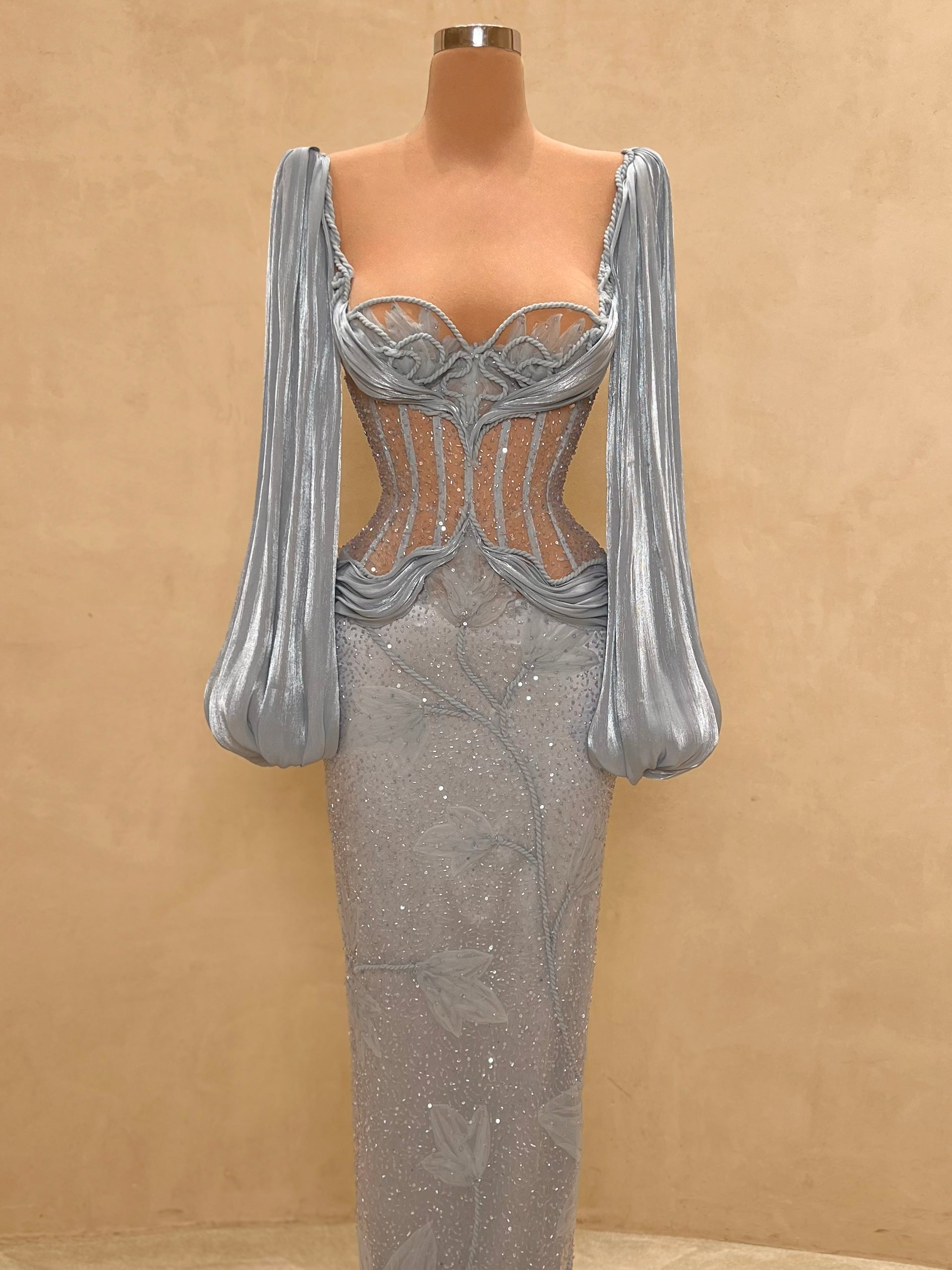 - Dramatic detachable balloon sleeves with gathered cuffs