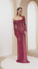 Elegant and sophisticated evening gown. The gown is designed with a striking off-shoulder neckline that adds a bold and dramatic flair.