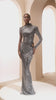 The gown is designed with a striking one-shoulder neckline that adds a bold touch to the silhouette.