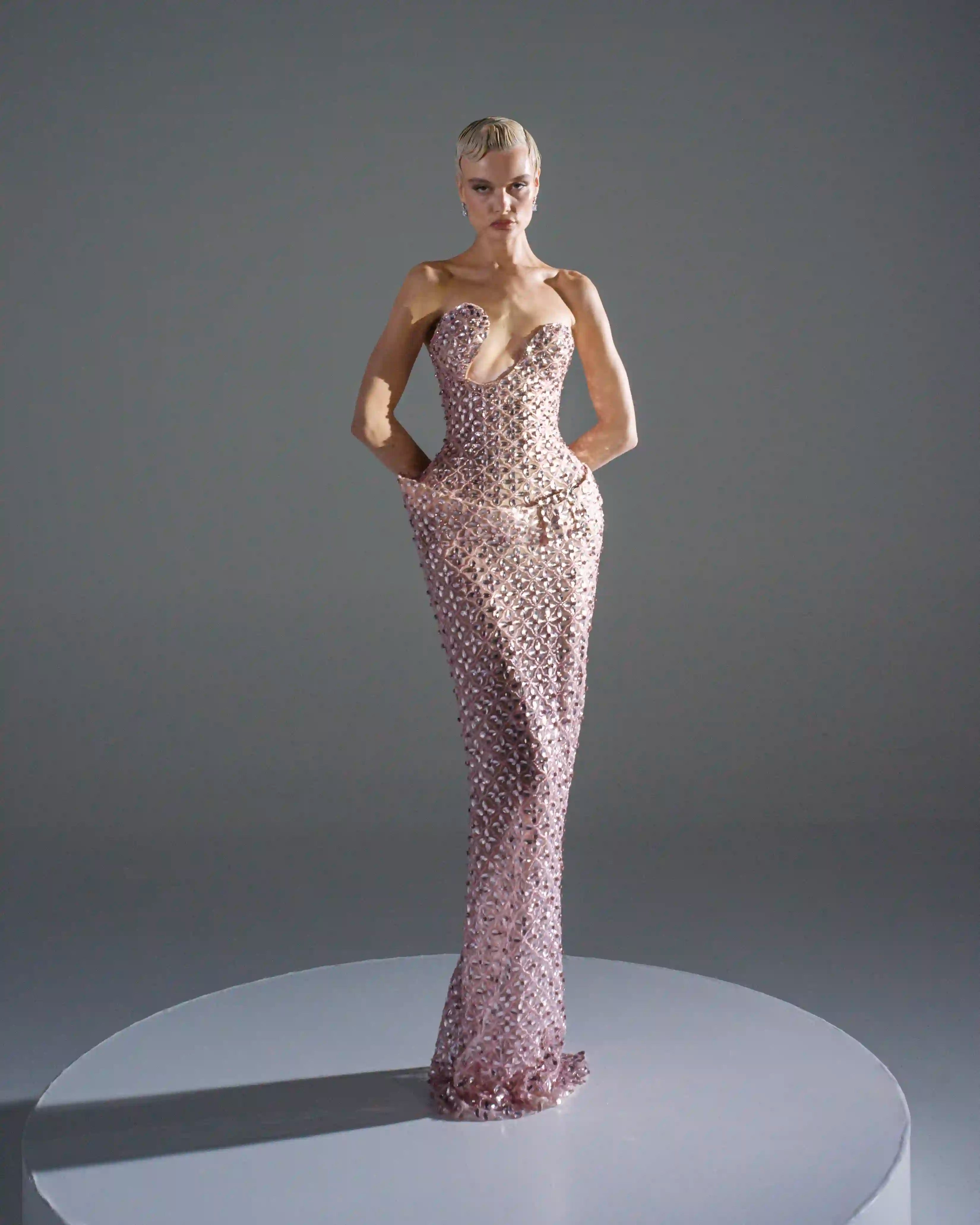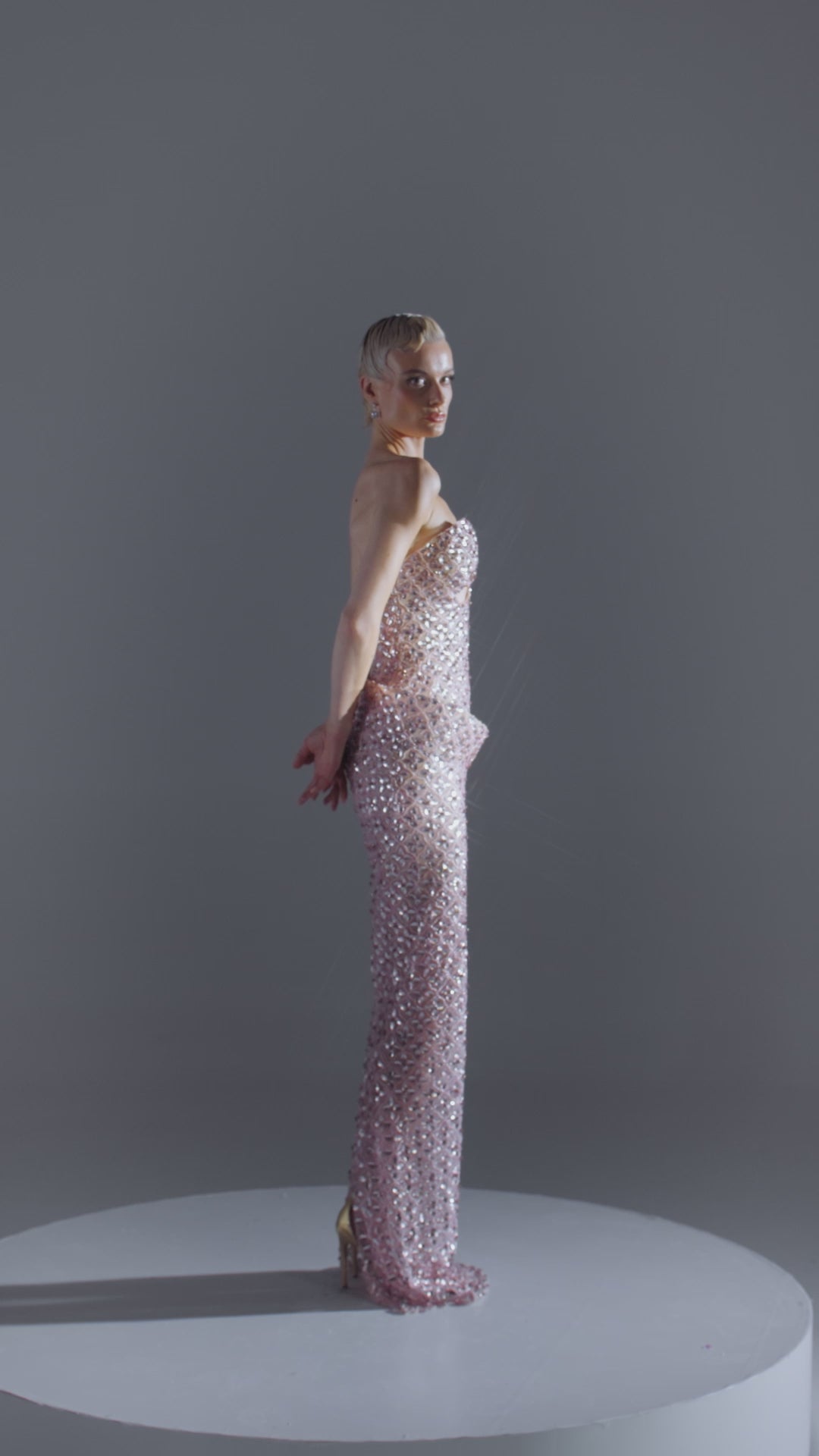 The GLAMRIZE - 10 strapless pink dress features intricate bead and stone detailing, creating a glamorous and elegant look. The fitted waist accentuates your figure, while the straight fitted skirt provides a flattering silhouette. Step into the spotlight and turn heads with this stunning dress.