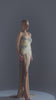 Take your fashion game to the next level with GLAMRIZE-13. This elegant long dress features delicate shoulder straps and is embellished with shimmering silver crystals, creating a stunning look. The draped beige fabric adds a touch of sophistication. Perfect for any special occasion.