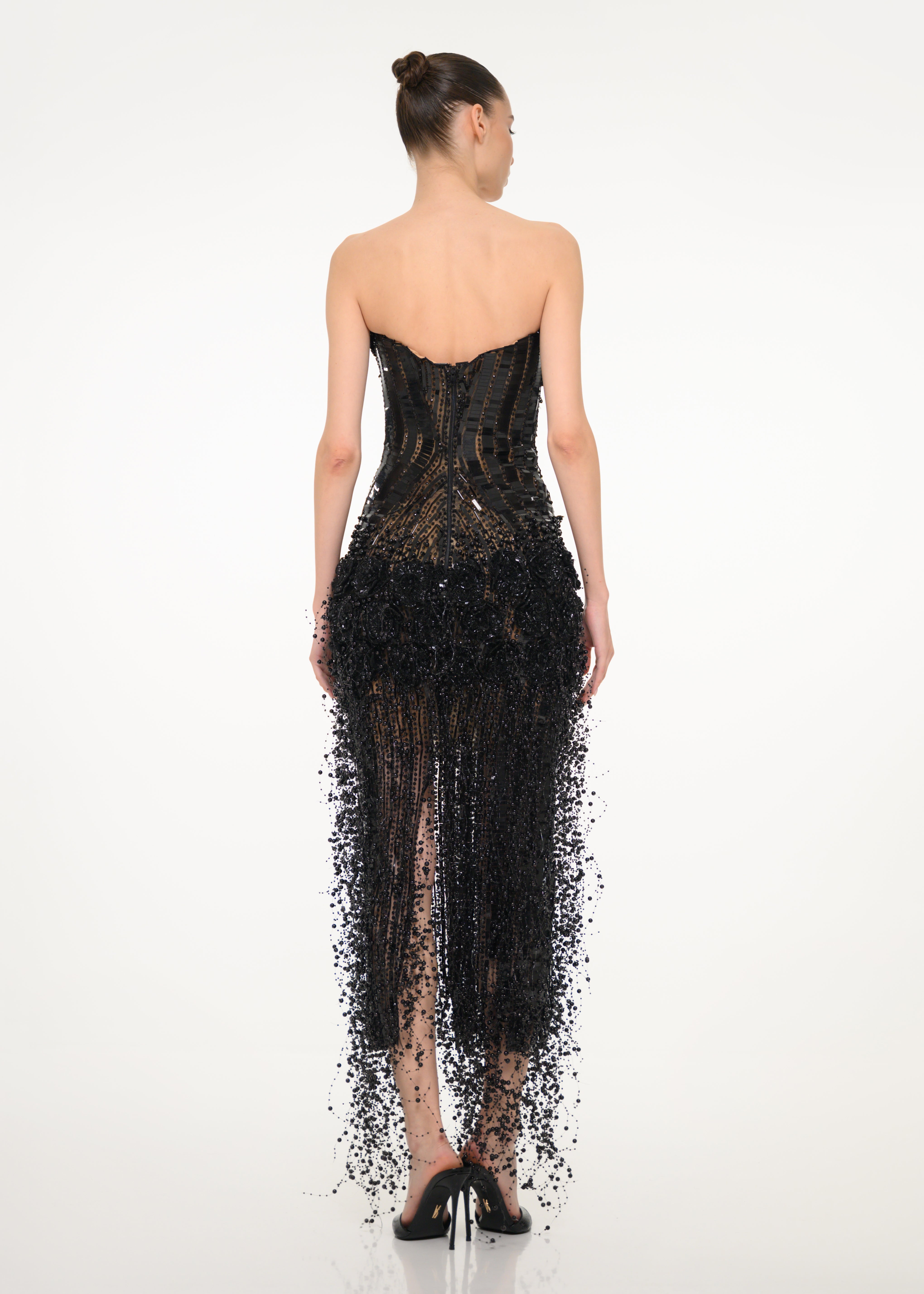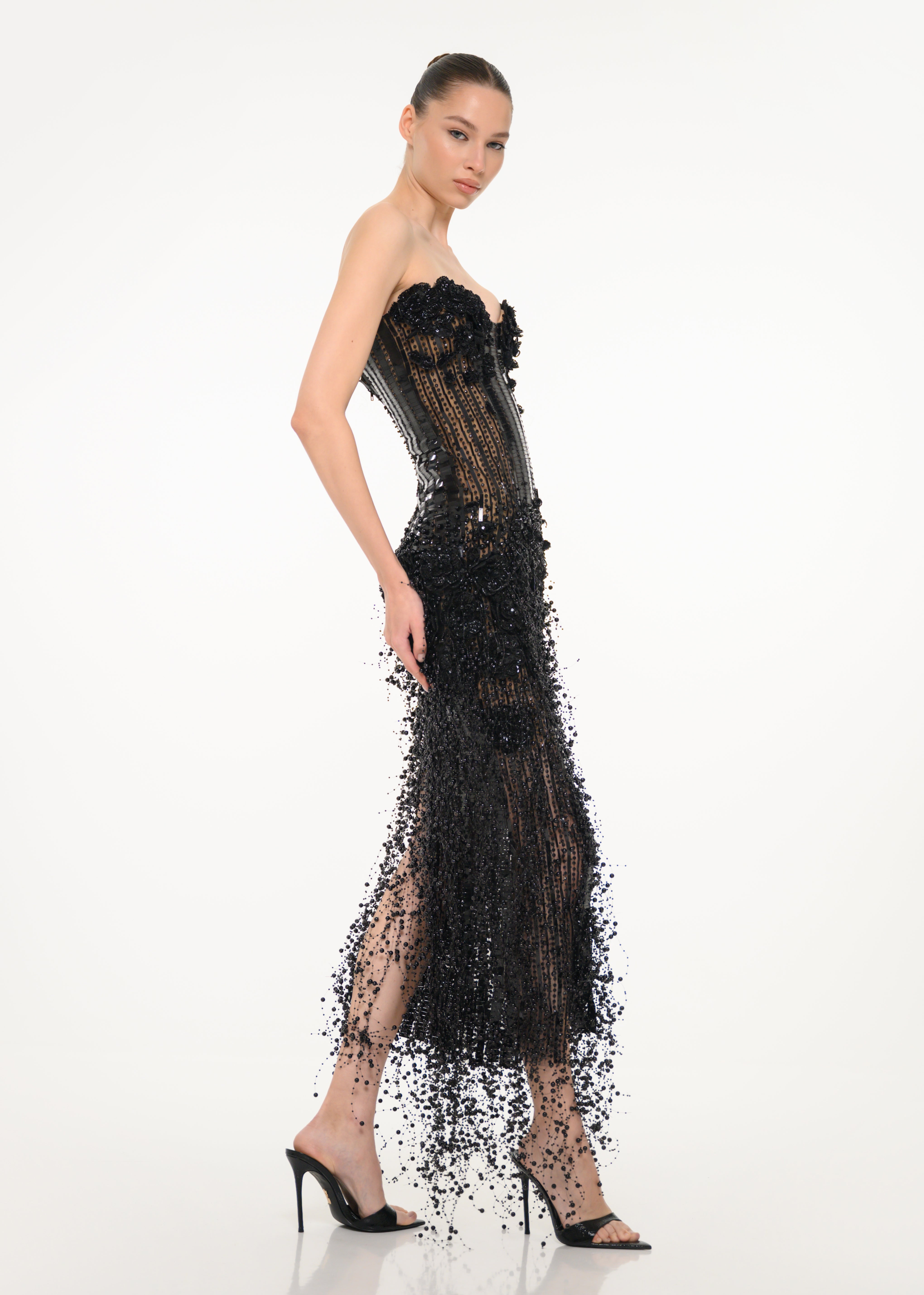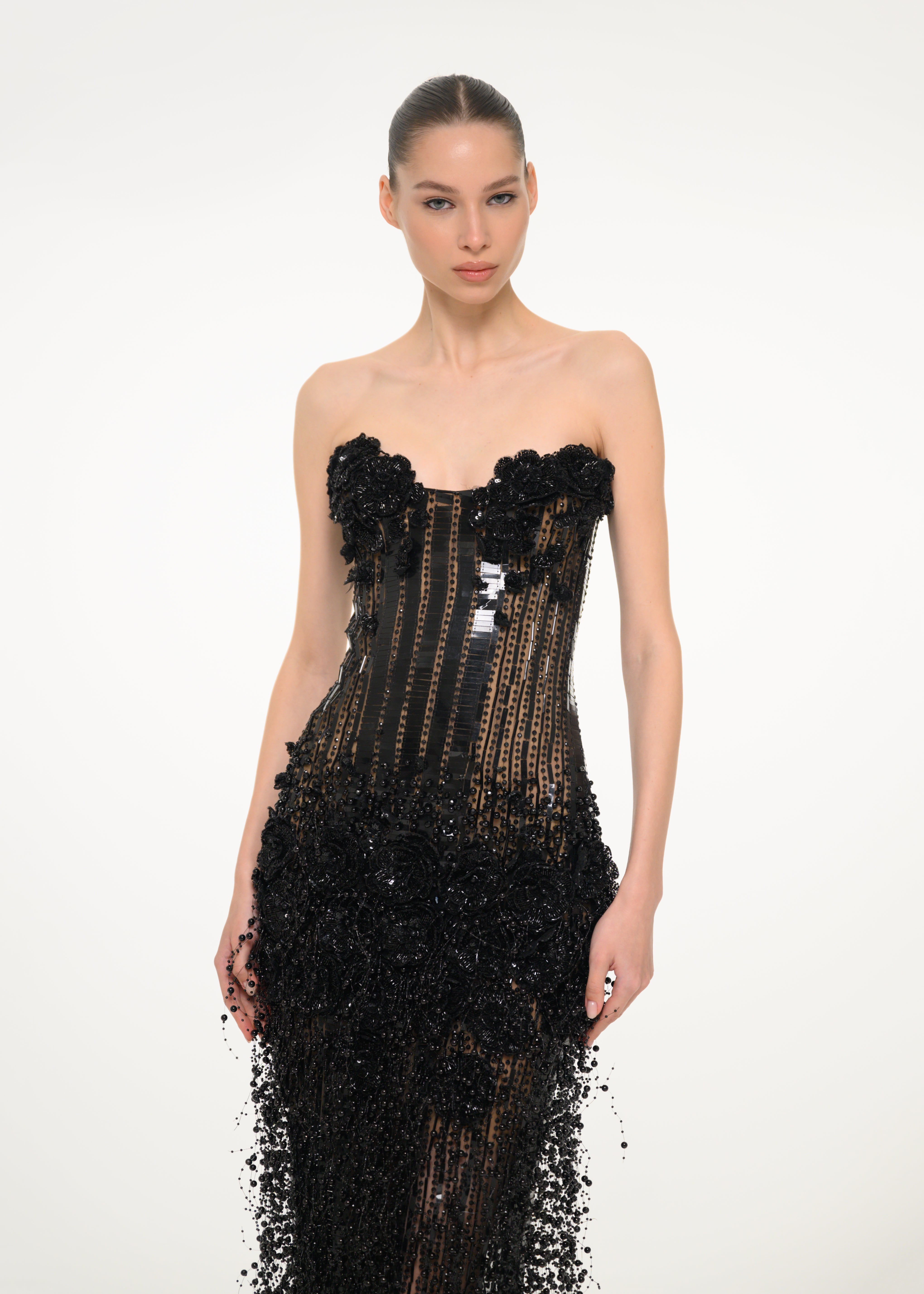A corset carved like a vertebra of light - rigid, sovereign, untouchable.